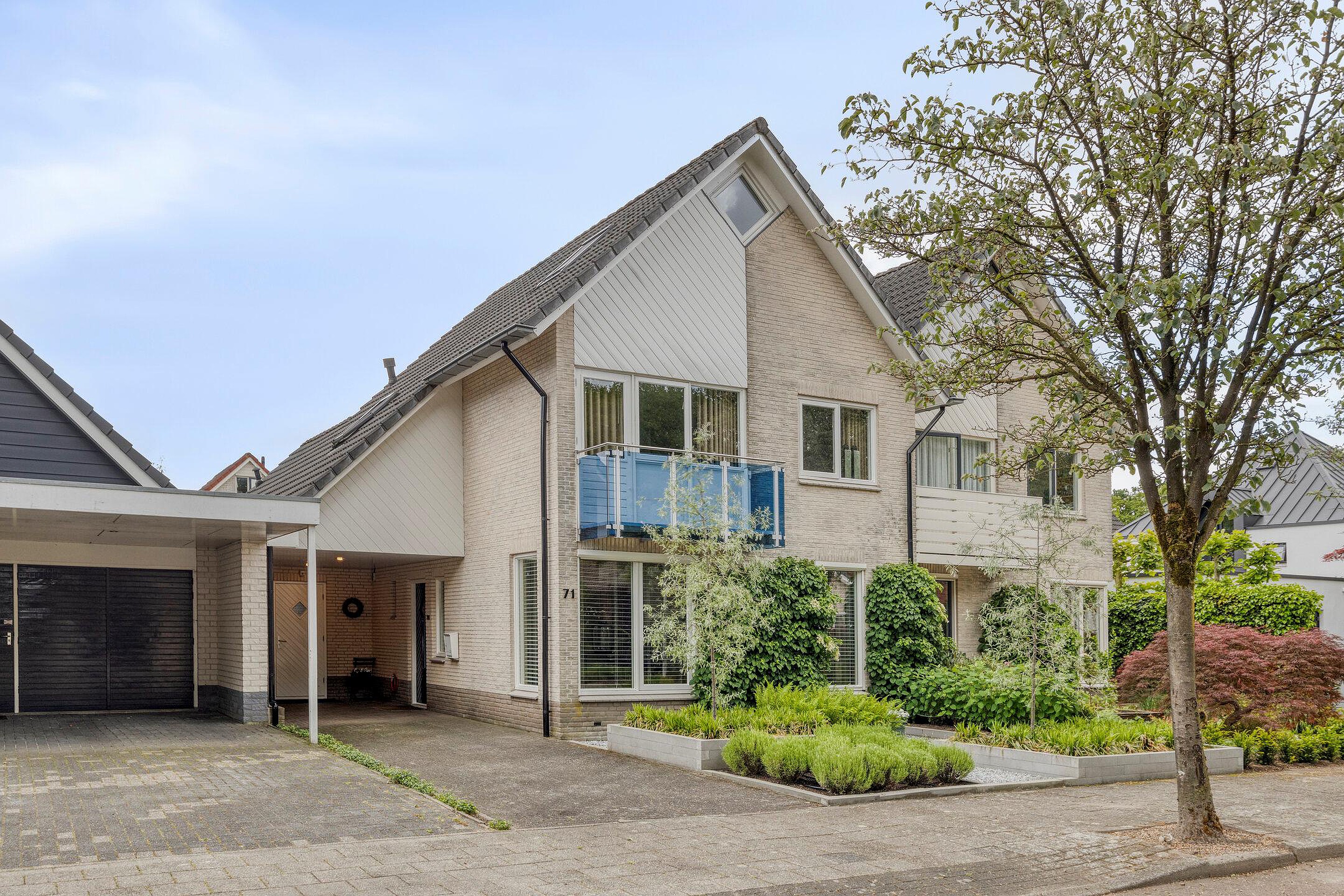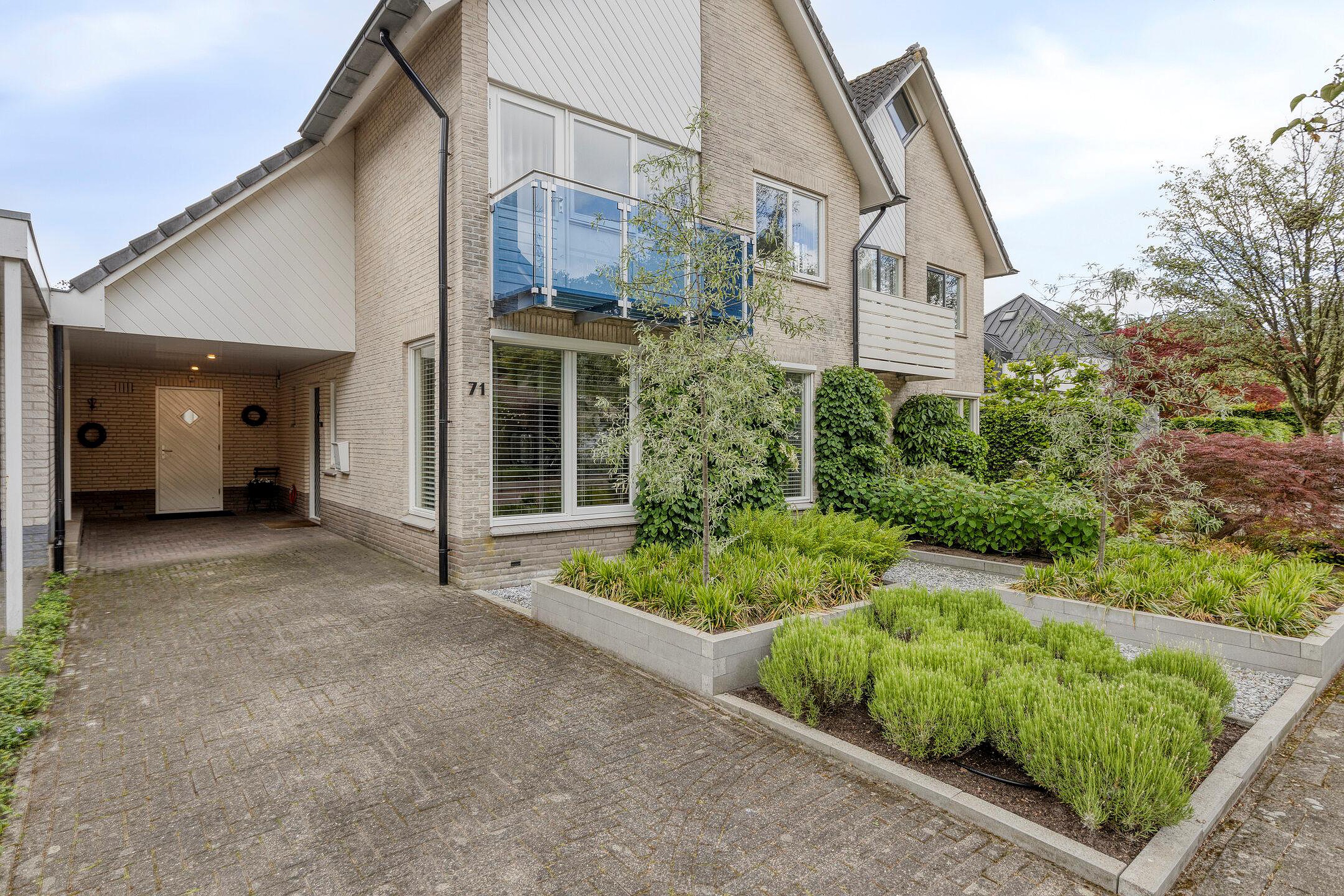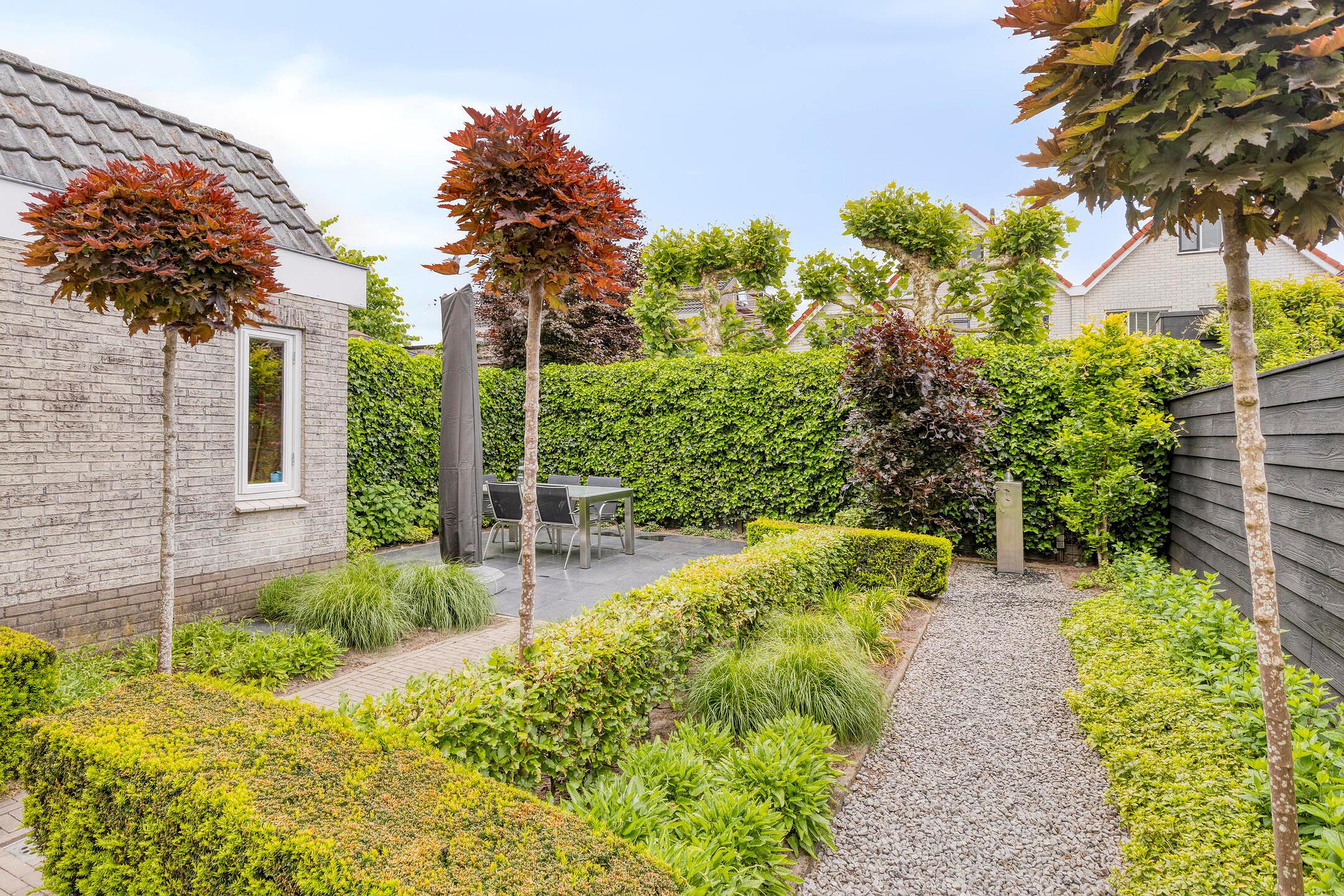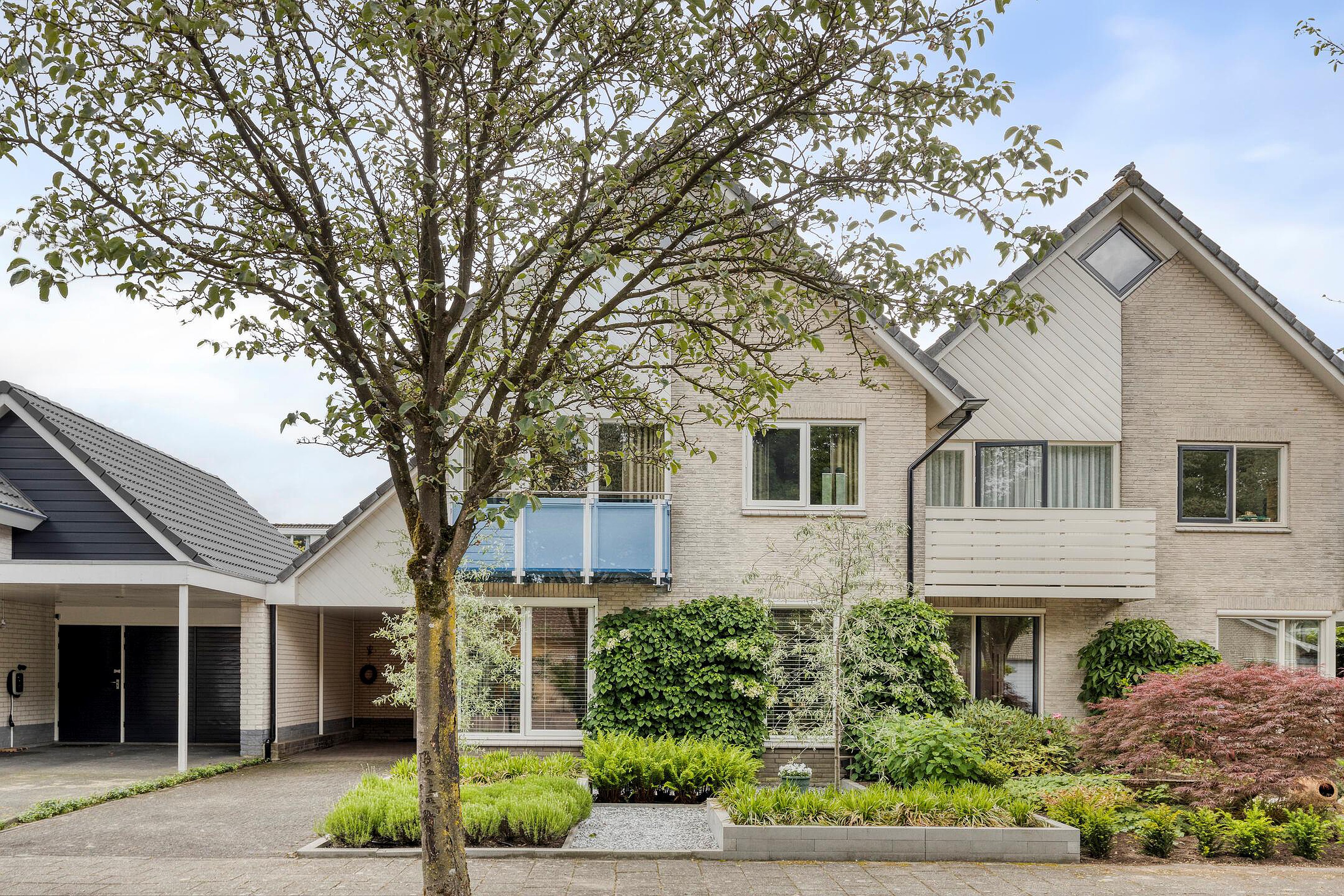 De fraaie en goed onderhouden achtertuin is gesitueerd op het zuidoosten, beschikt over twee verharde terrassen en voldoende privacy mede door het vele groen. De handige berging is ideaal voor het stallen van tuingereedschappen en diversen. Daarnaast beschikt de woning over een eigen oprit mét carport welk plek biedt voor twee auto's.