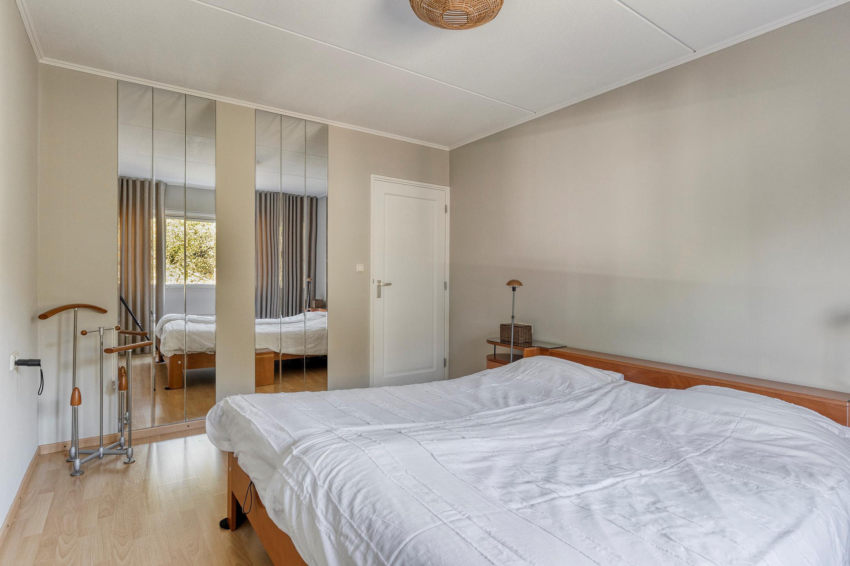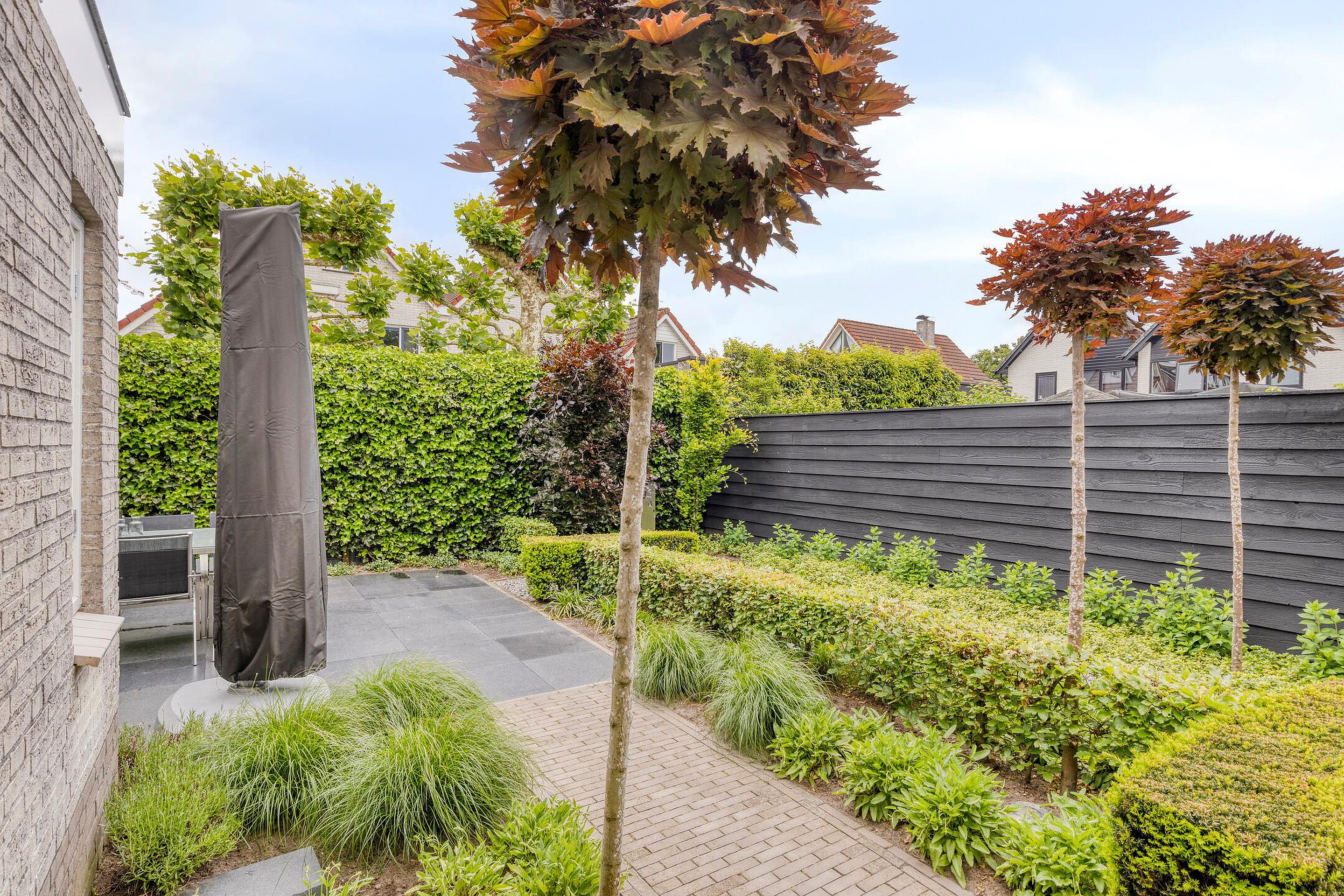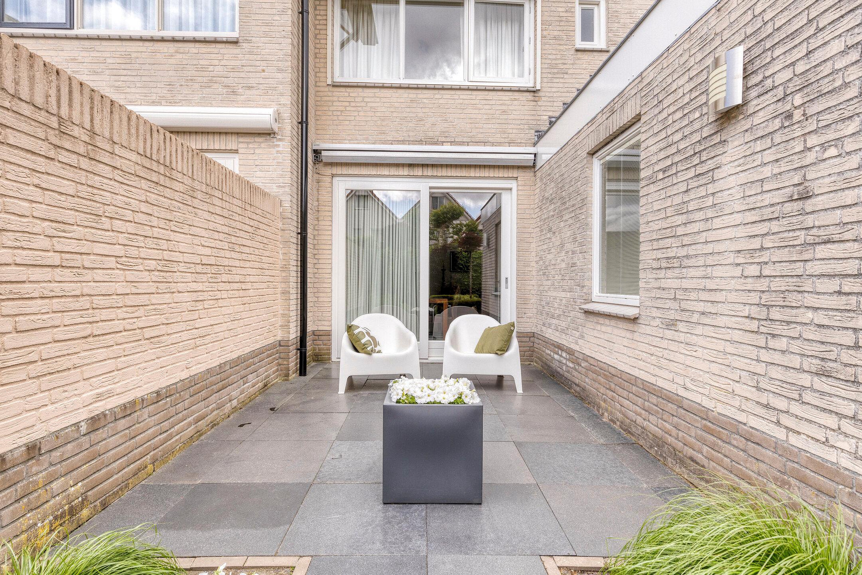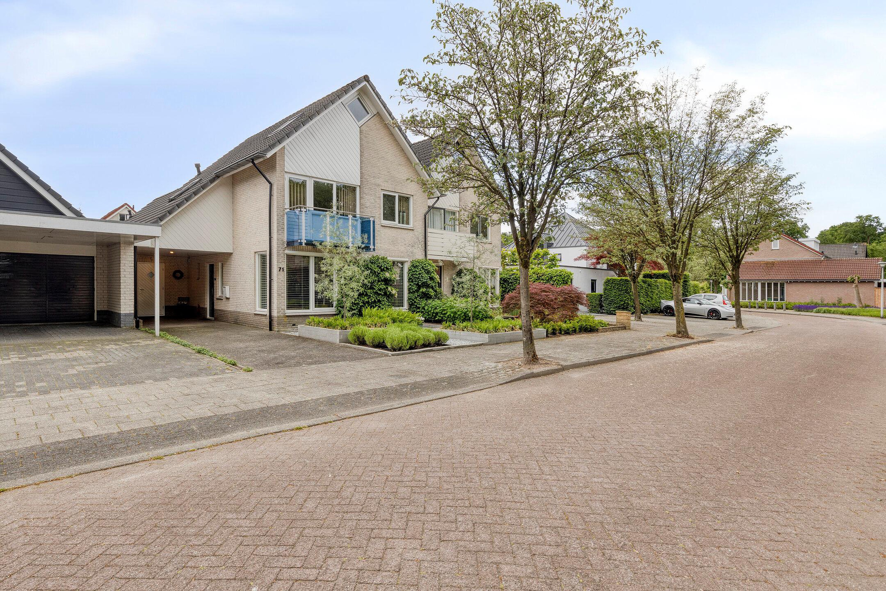 De fraaie en goed onderhouden achtertuin is gesitueerd op het zuidoosten, beschikt over twee verharde terrassen en voldoende privacy mede door het vele groen. De handige berging is ideaal voor het stallen van tuingereedschappen en diversen. Daarnaast beschikt de woning over een eigen oprit mét carport welk plek biedt voor twee auto's.