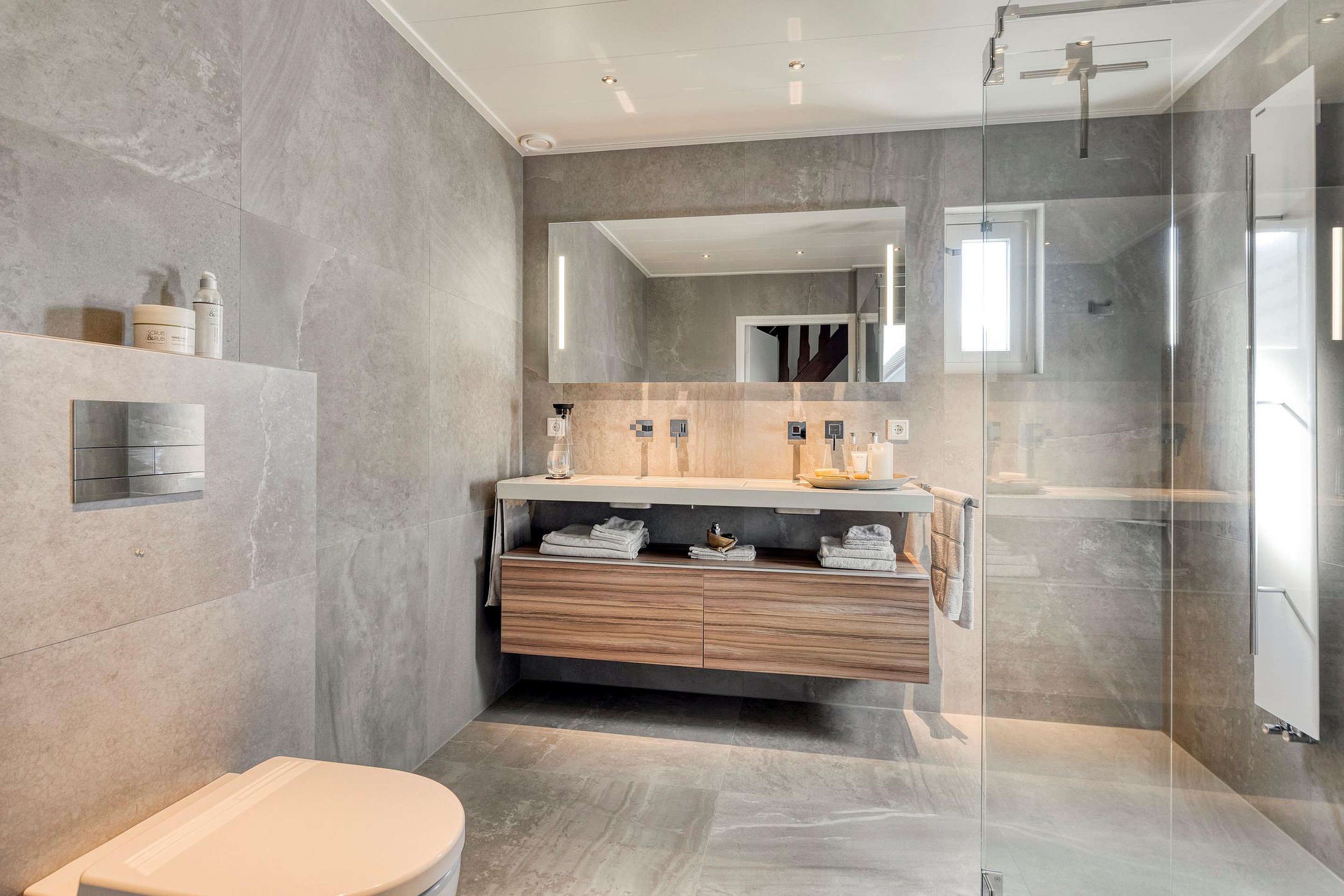Overloop van waaruit je toegang hebt tot drie slaapkamers, elk met voldoende lichtinval en een praktische indeling. Eén van de slaapkamers biedt toegang tot het balkon aan de voorzijde. De moderne badkamer is royaal van formaat en beschikt over o.a. een inloopdouche, vrijdragend toilet, dubbele wastafel, designradiator én vloerverwarming. Ook is er vanuit de overloop toegang tot de bergruimte boven de bijkeuken, hier bevinden zich de Remeha CV ketel (2017, eigendom) en de witgoedaansluitingen.