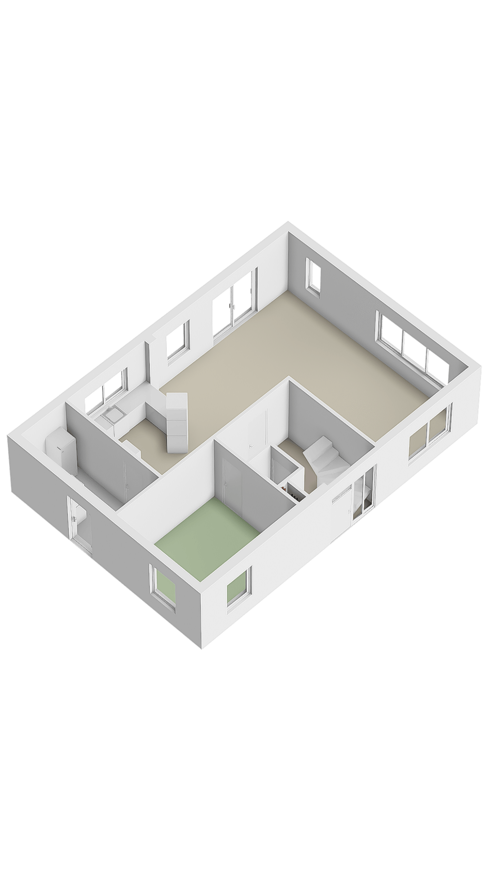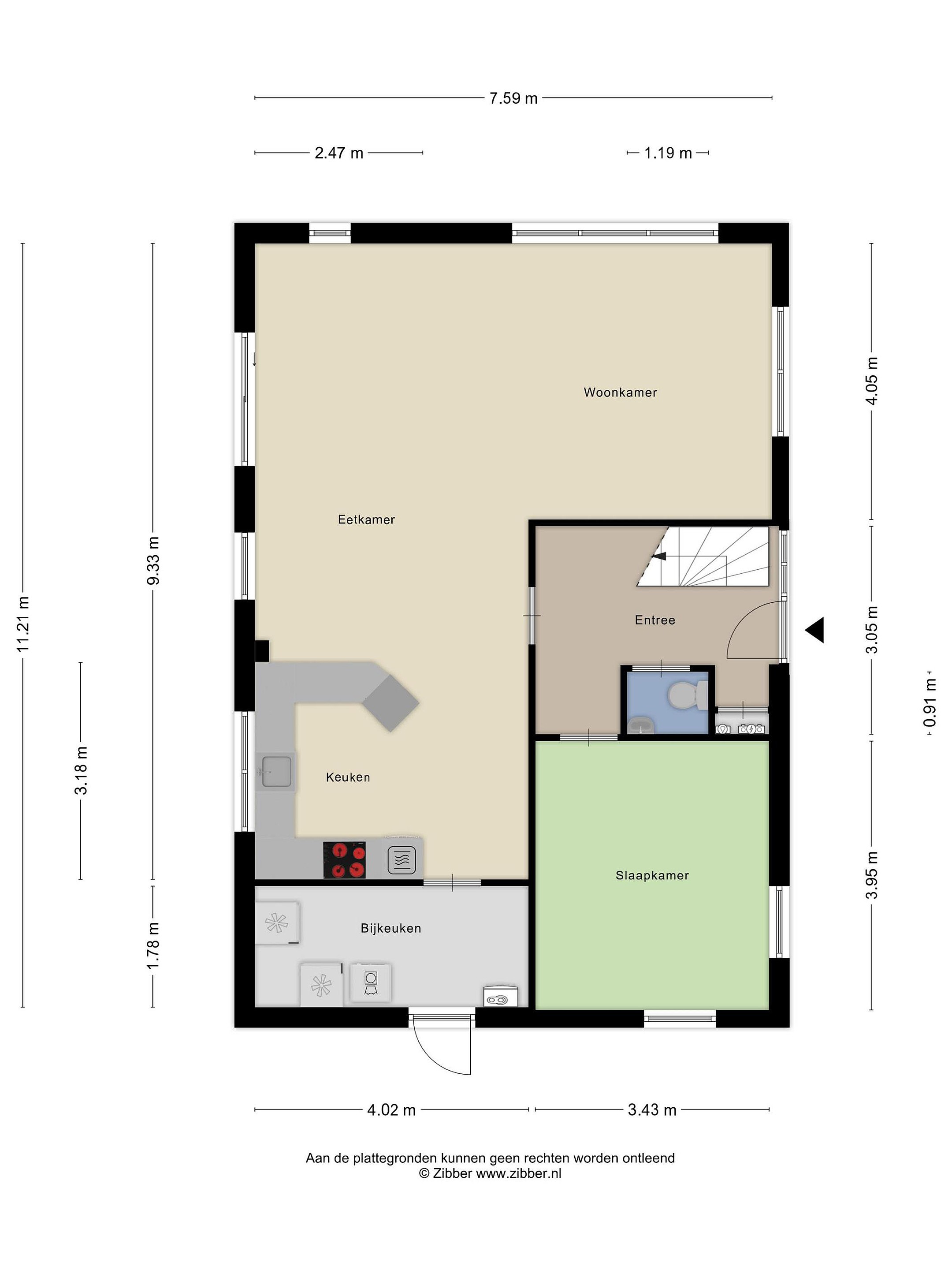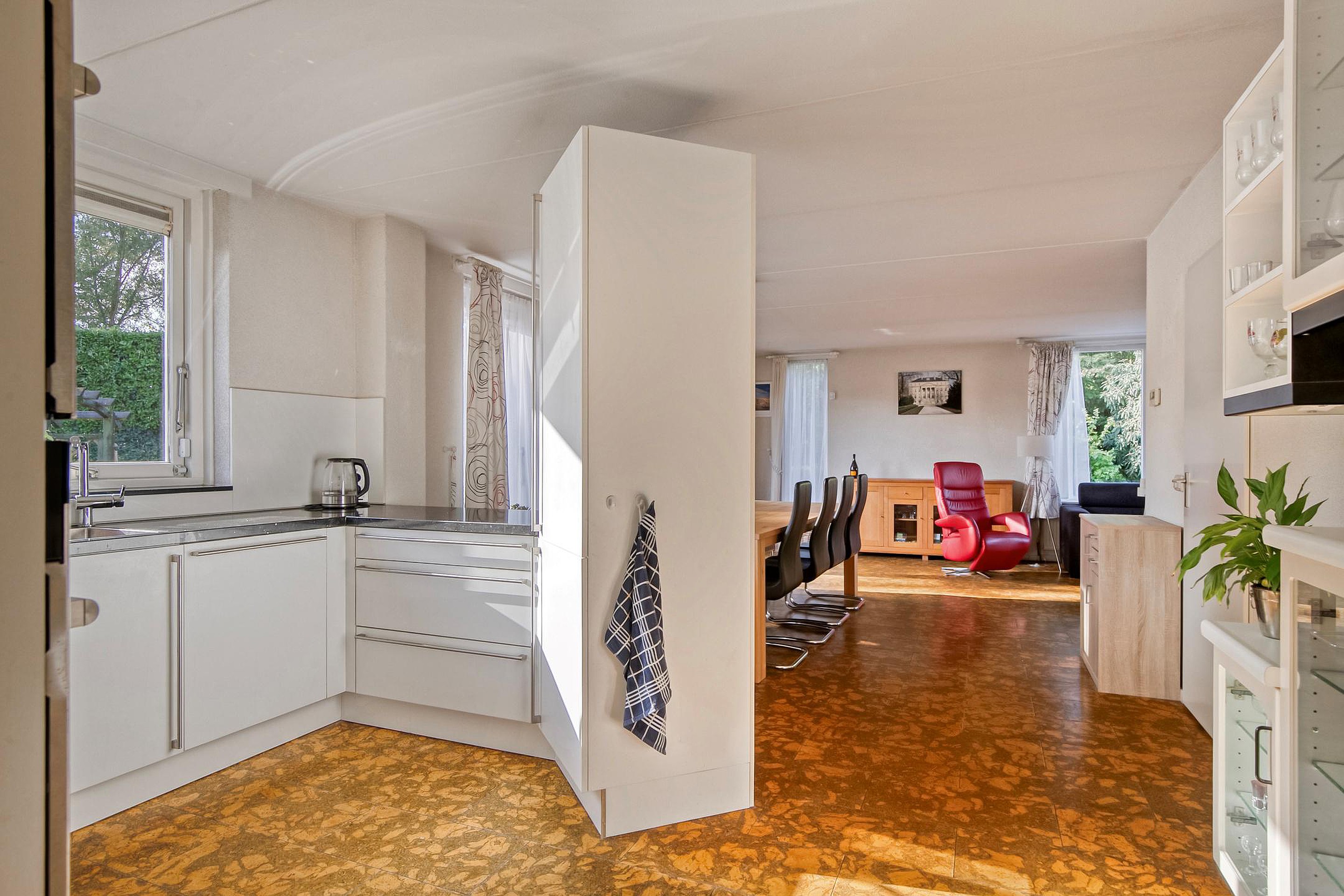 Ruime hal met toilet en trapopgang. Lichte woonkamer en eetkamer met veel ruimte voor gezellige avonden. De keuken is praktisch ingericht en grenst aan de bijkeuken. Daarnaast is er een royale slaapkamer op de begane grond – perfect voor levensloopbestendig wonen of als werk-/speelkamer.