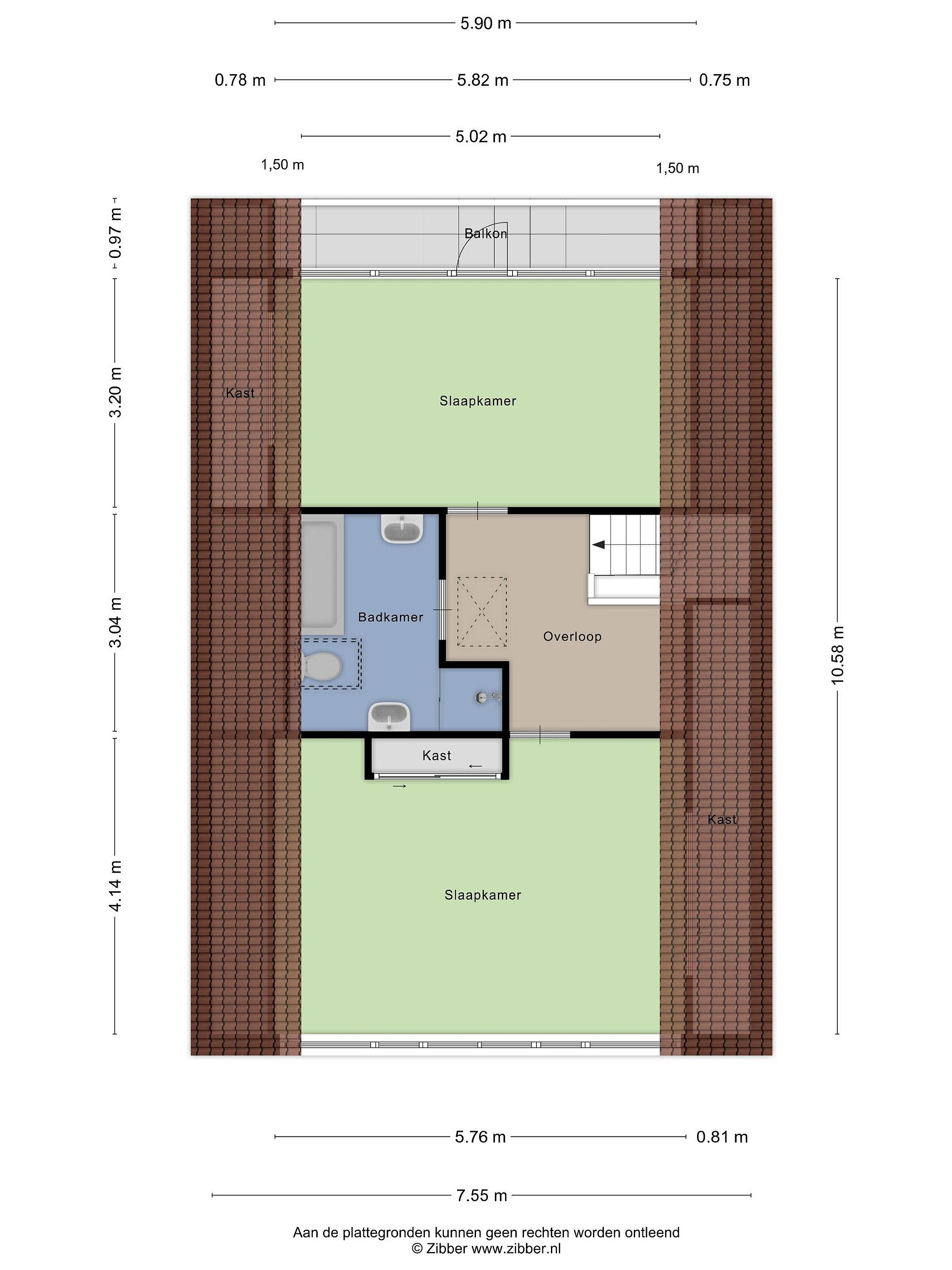Overloop, twee ruime slaapkamers met veel licht en opbergruimte. De badkamer is uitgerust met ligbad, douche, wastafel en toilet. Eén slaapkamer heeft toegang tot een balkon.