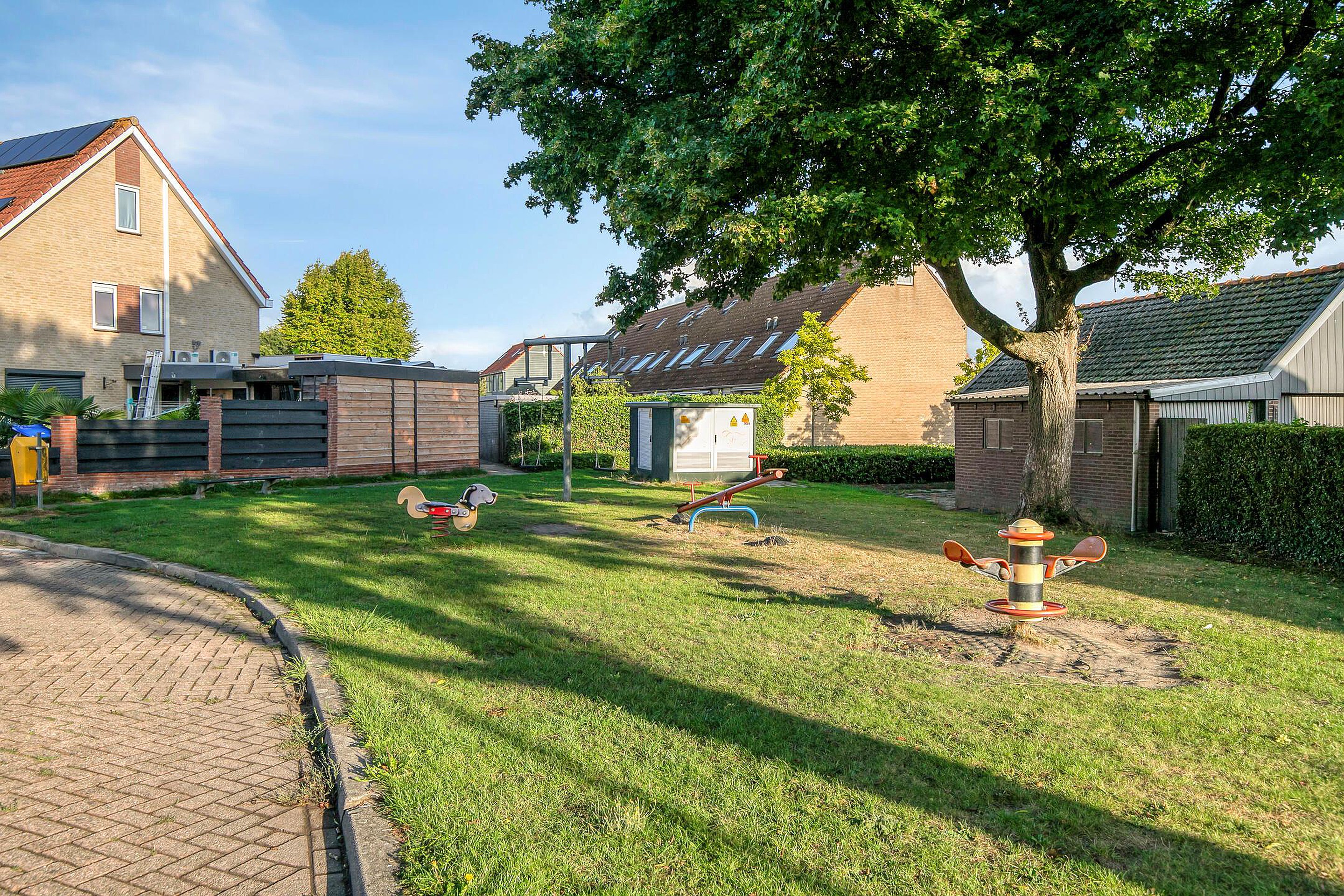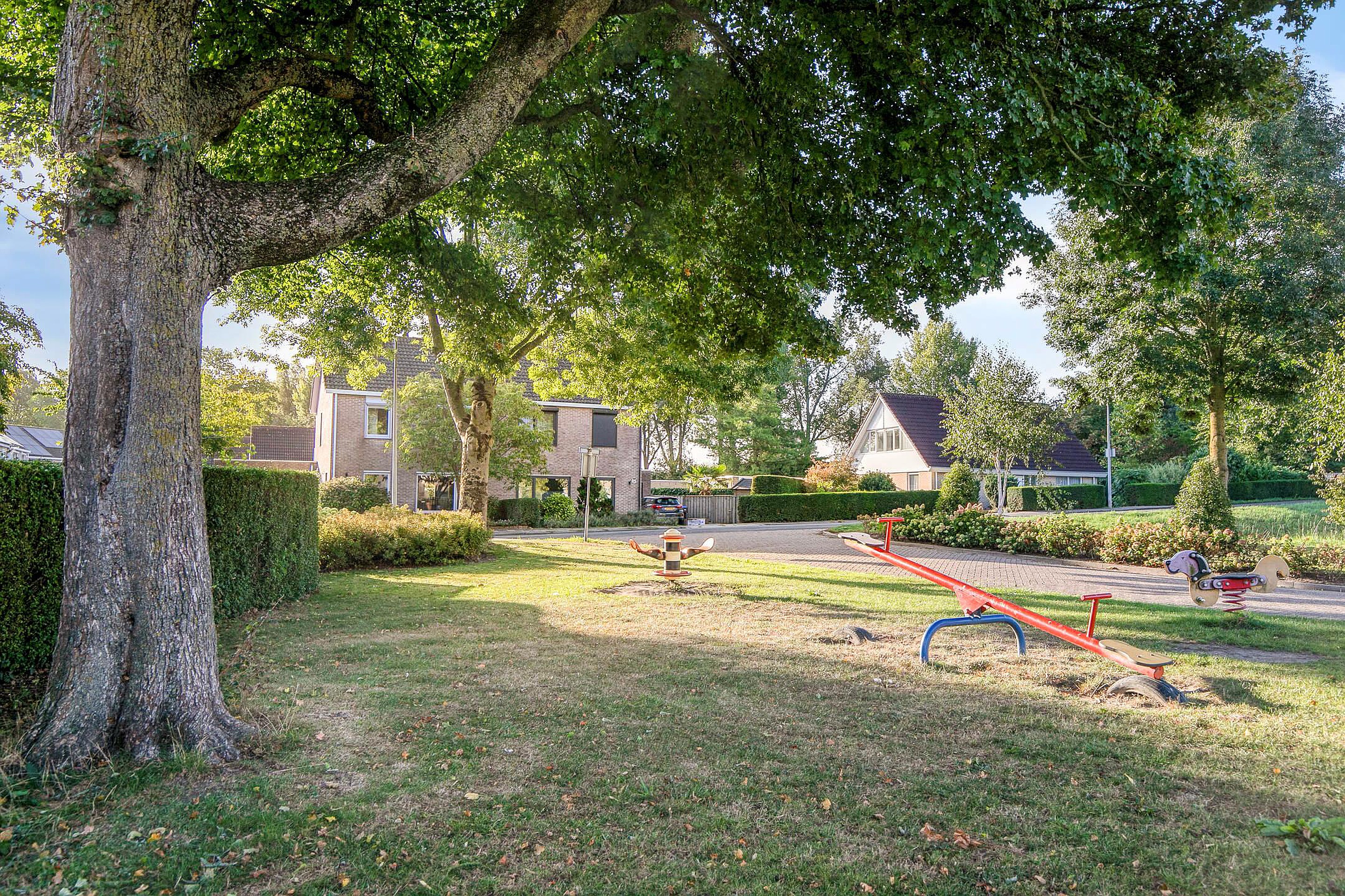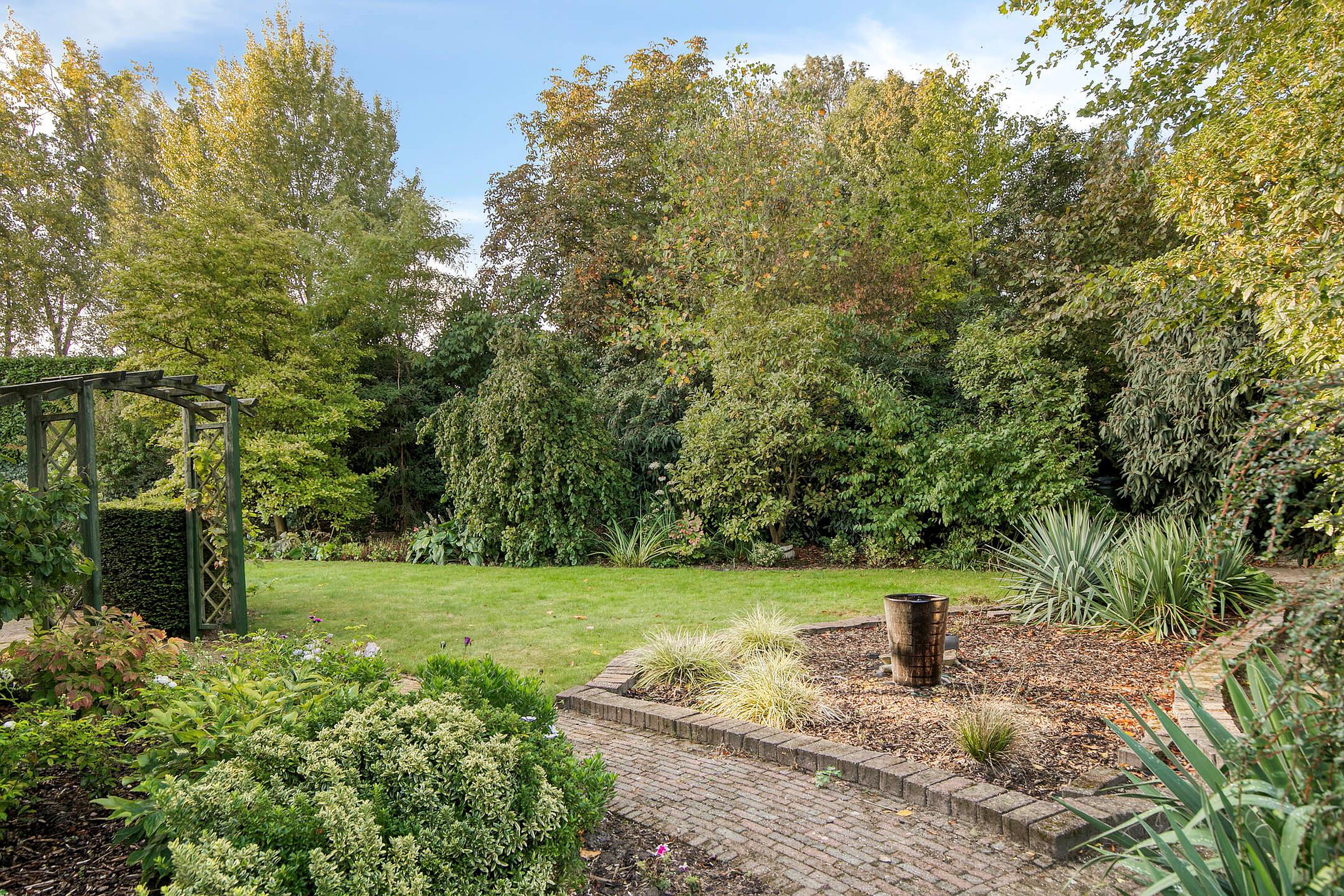 Een royaal perceel met verzorgde tuin rondom. Er is ruimte voor meerdere terrassen, speelplekken of een moestuin. De vrijstaande dubbele garage met berging biedt volop plek voor auto, fietsen en extra opslag.