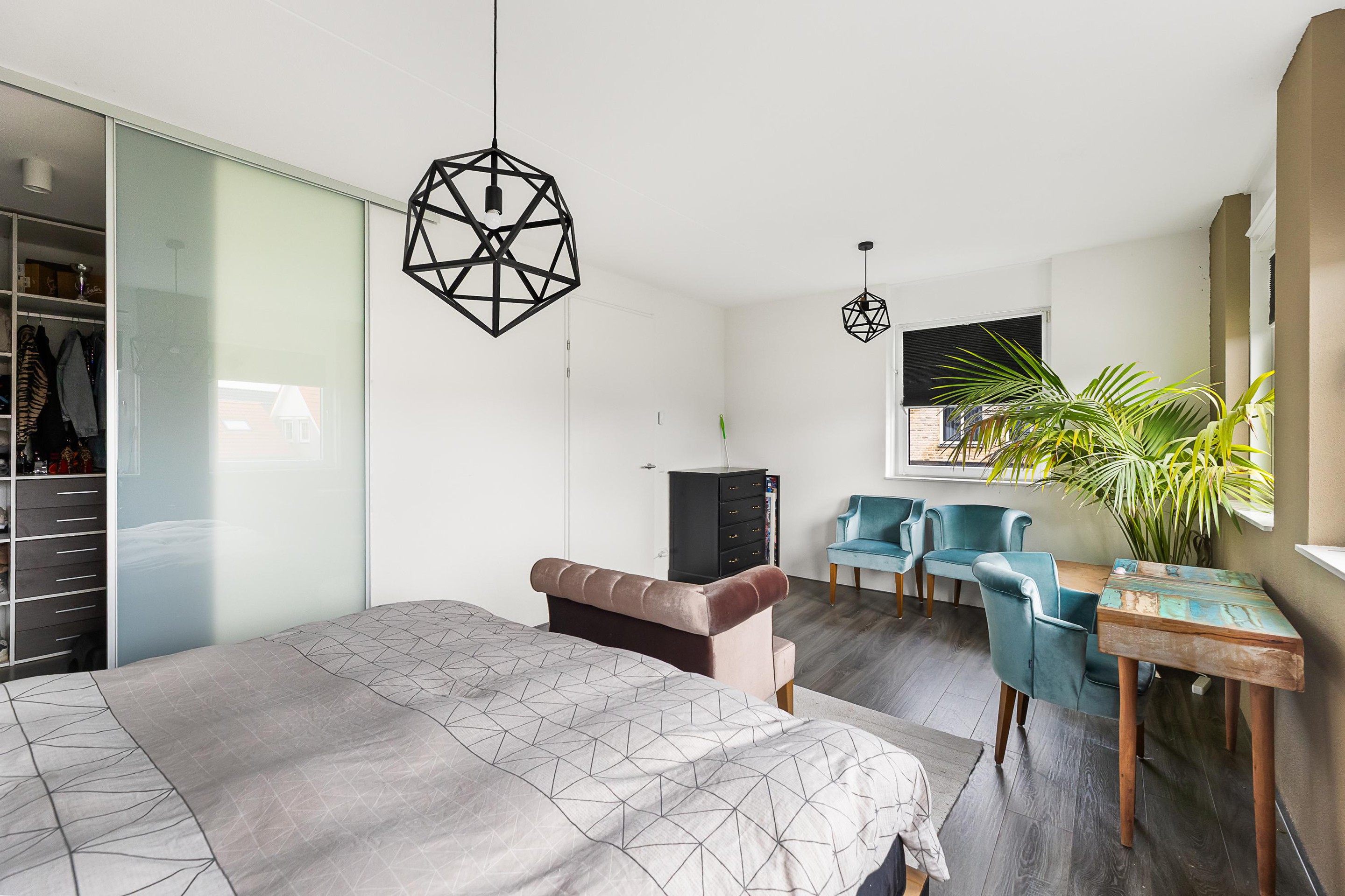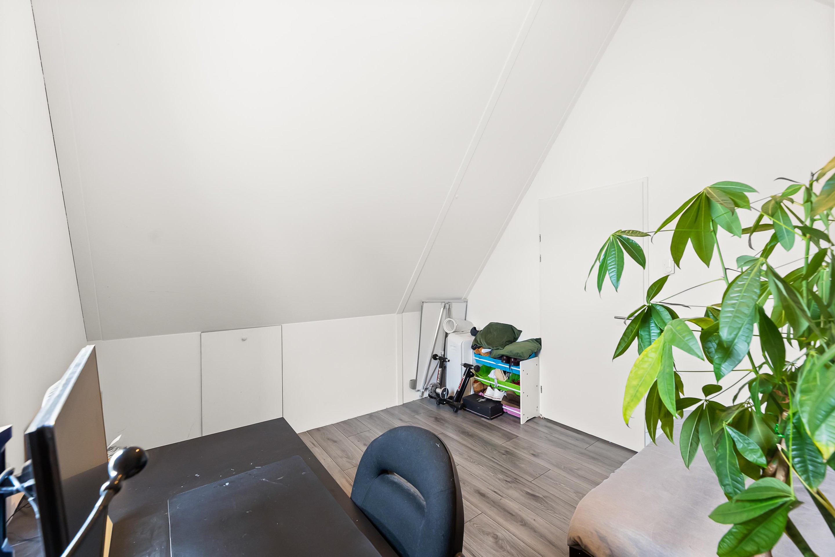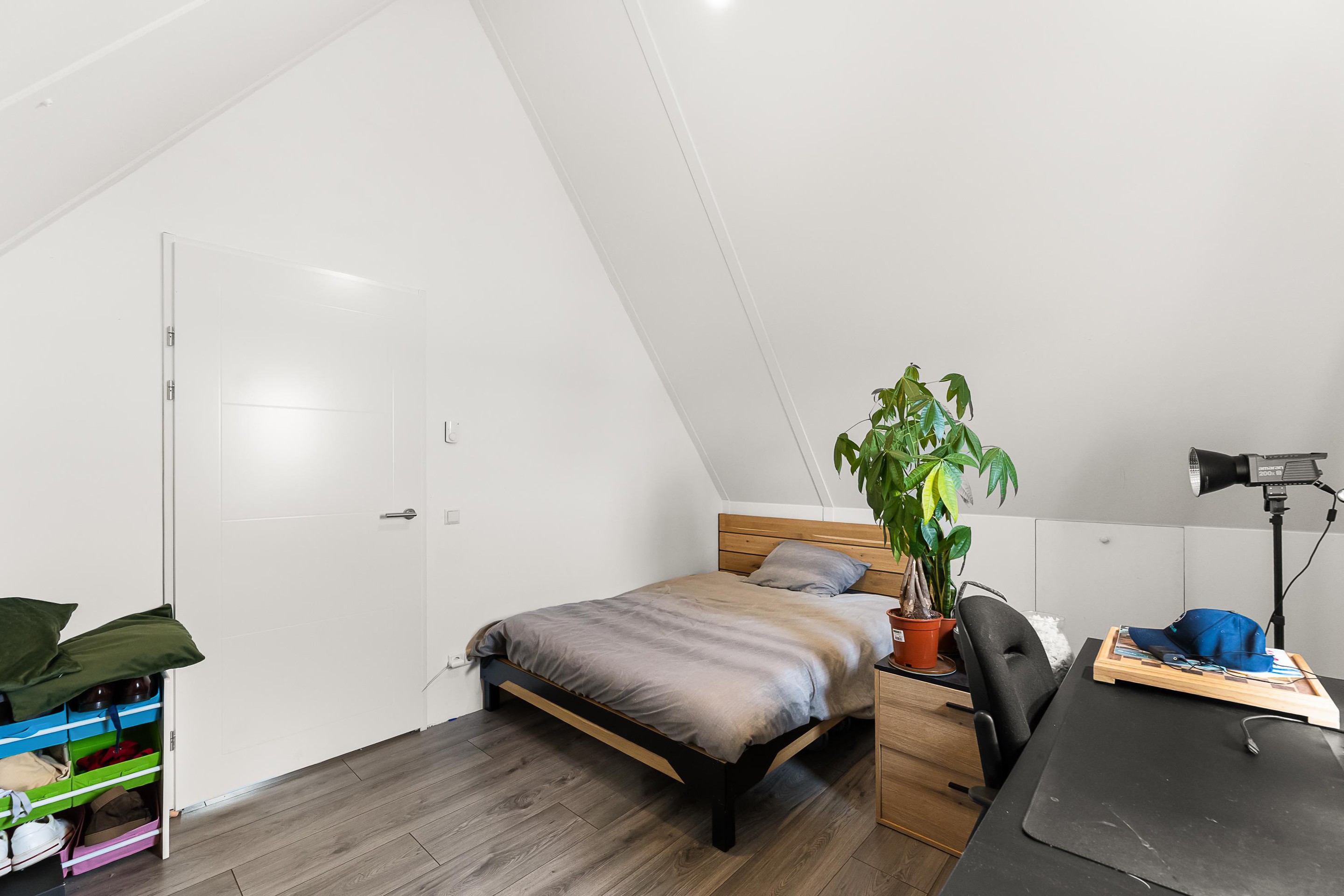 Tweede verdieping De ruime zolderverdieping is praktisch én comfortabel ingedeeld. Hier bevinden zich twee royale slaapkamers, die beide profiteren van extra bergruimte achter de knieschotten. Ideaal voor het netjes opbergen van seizoensspullen, koffers of extra linnengoed, zonder in te leveren op leefruimte. Op de overloop is daarnaast plaats voor het witgoed en de opstelling van de cv-installatie, waardoor deze verdieping niet alleen ruim maar ook uiterst functioneel is.