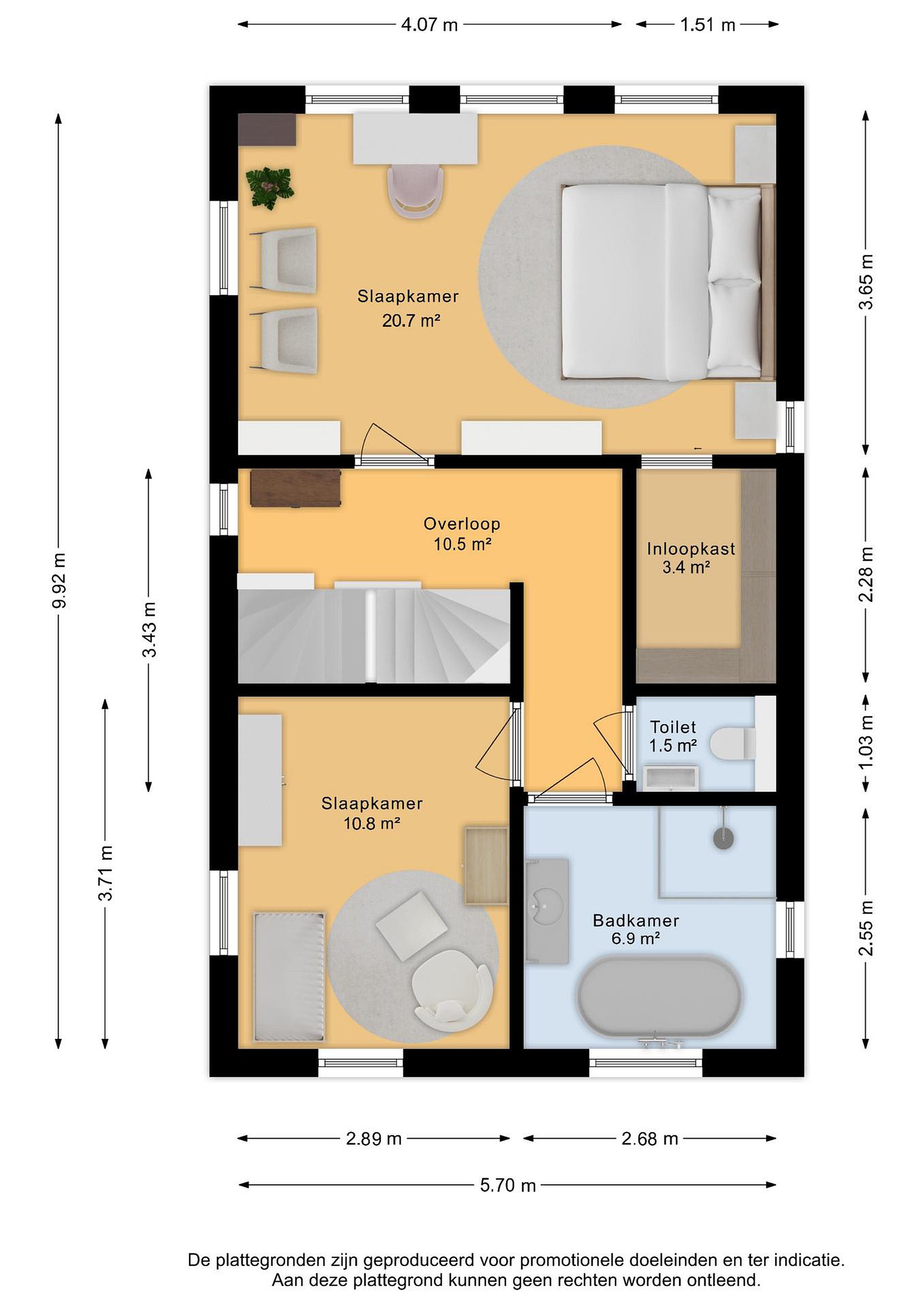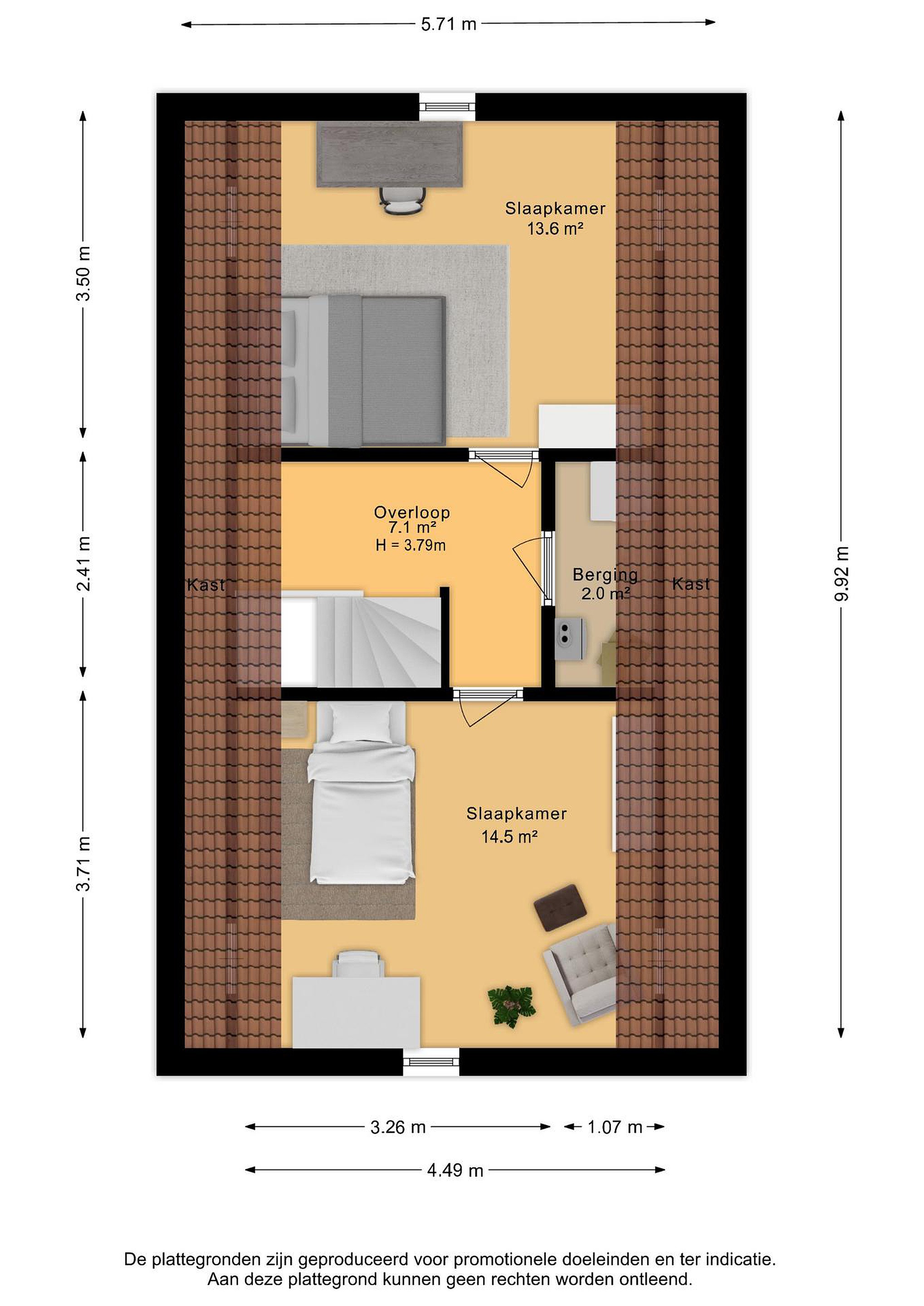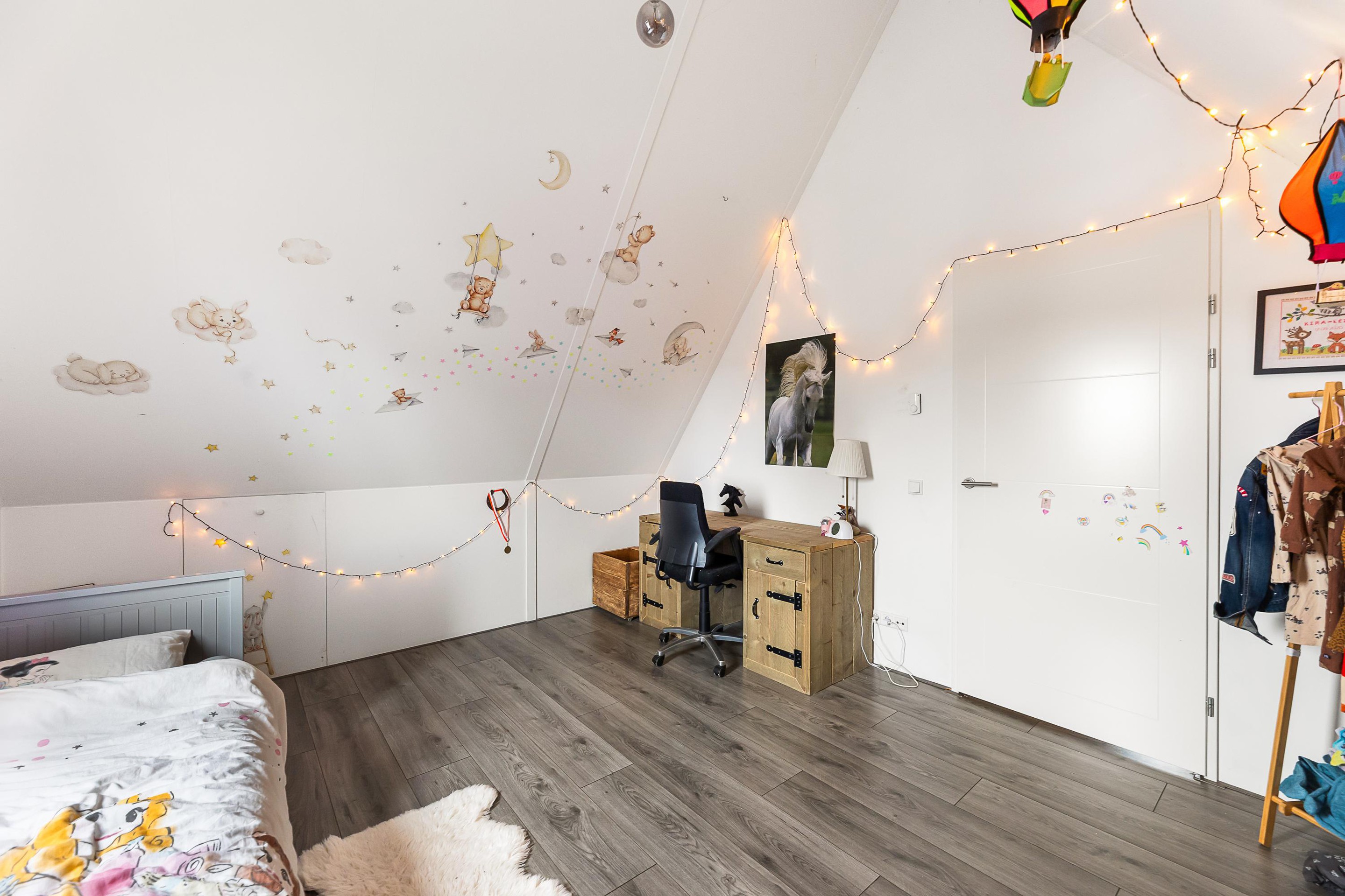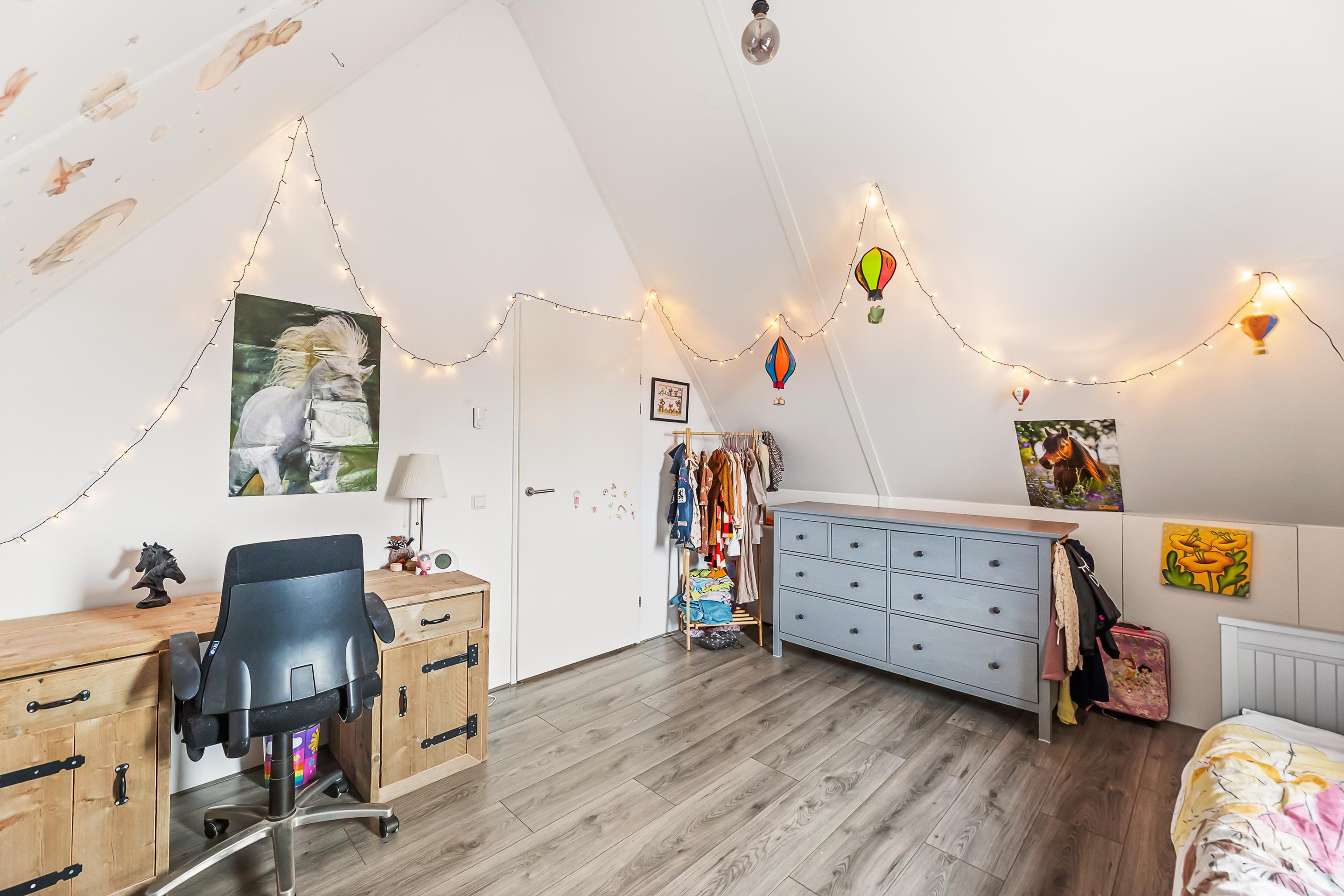 Tweede verdieping De ruime zolderverdieping is praktisch én comfortabel ingedeeld. Hier bevinden zich twee royale slaapkamers, die beide profiteren van extra bergruimte achter de knieschotten. Ideaal voor het netjes opbergen van seizoensspullen, koffers of extra linnengoed, zonder in te leveren op leefruimte. Op de overloop is daarnaast plaats voor het witgoed en de opstelling van de cv-installatie, waardoor deze verdieping niet alleen ruim maar ook uiterst functioneel is.