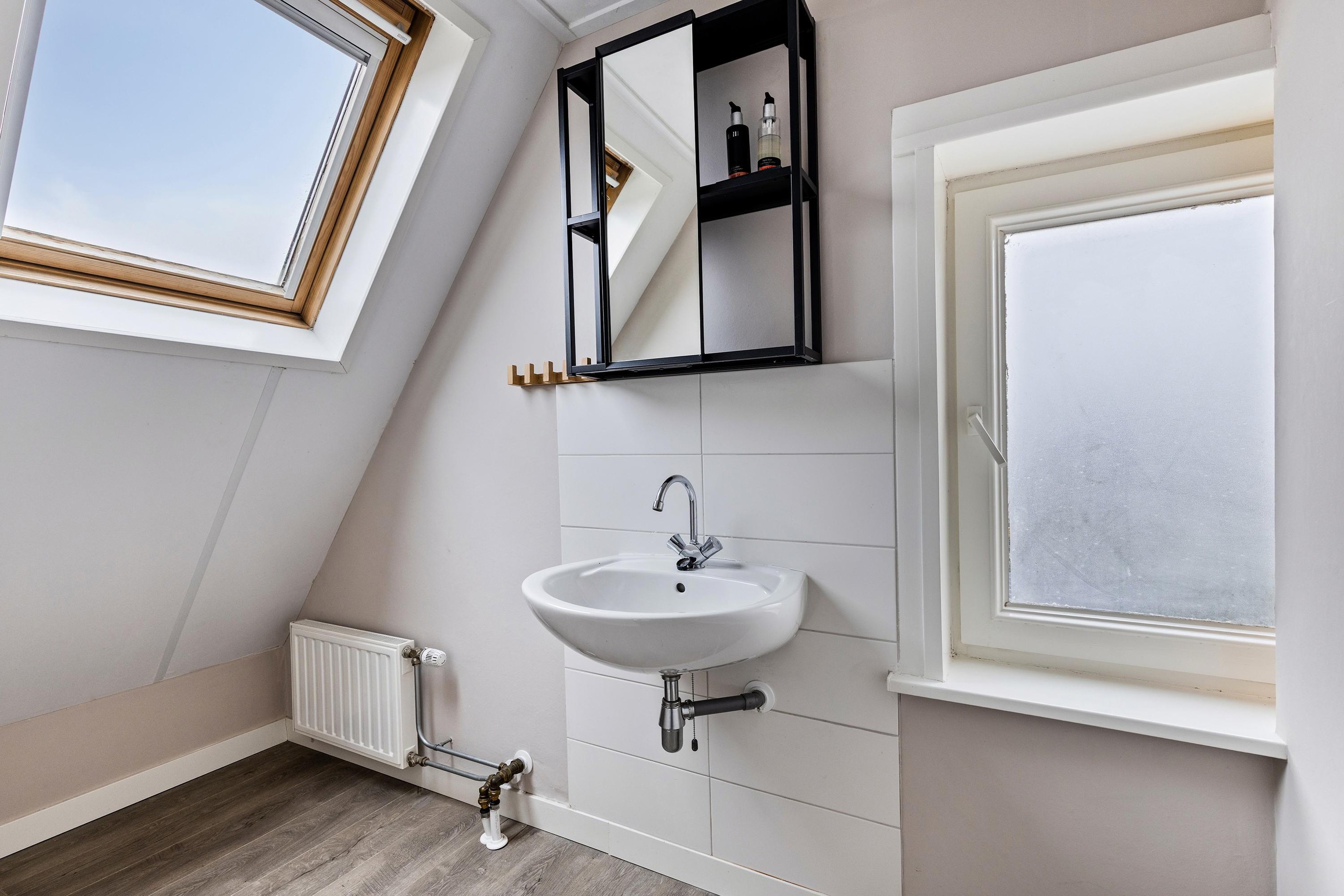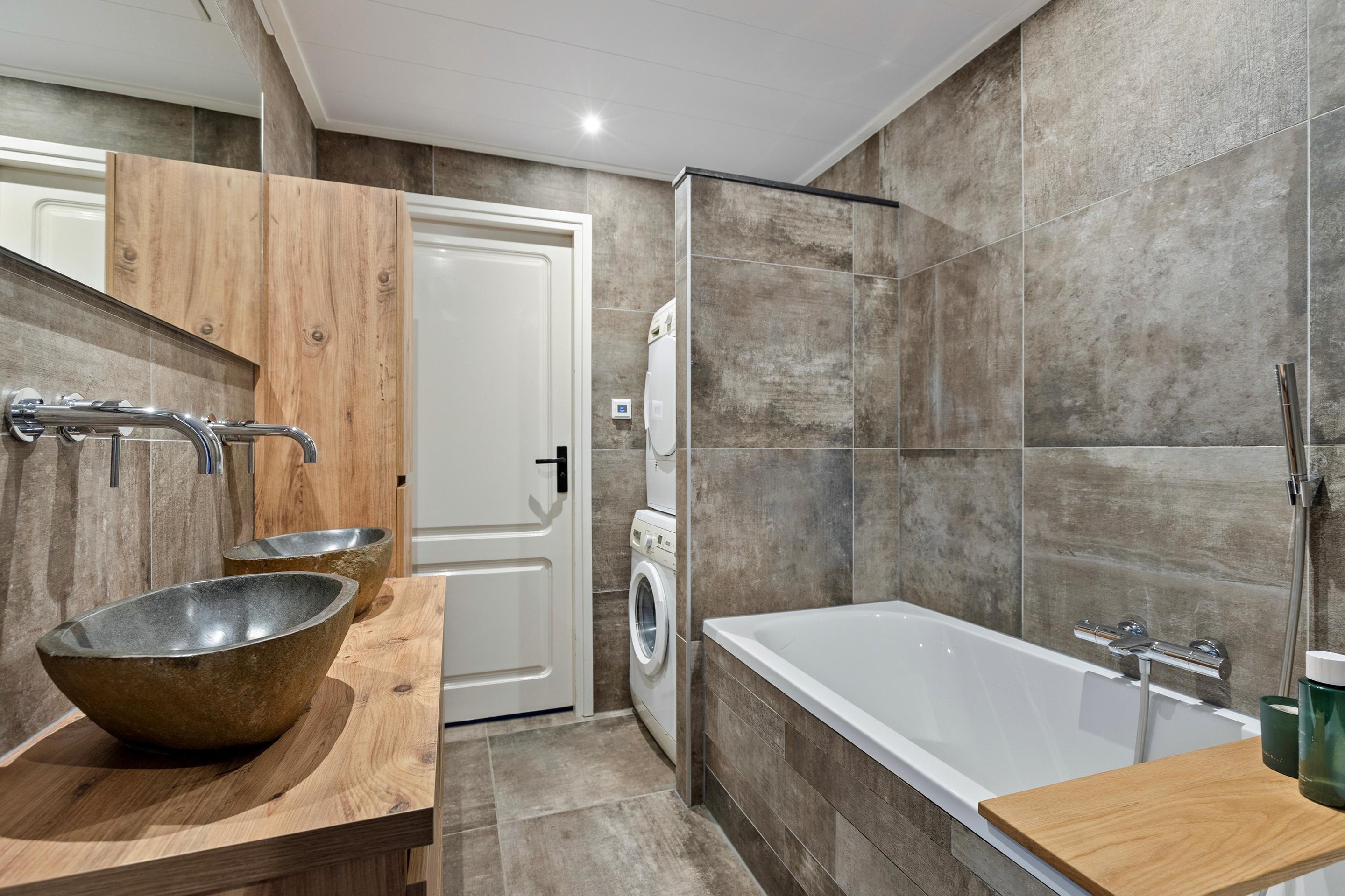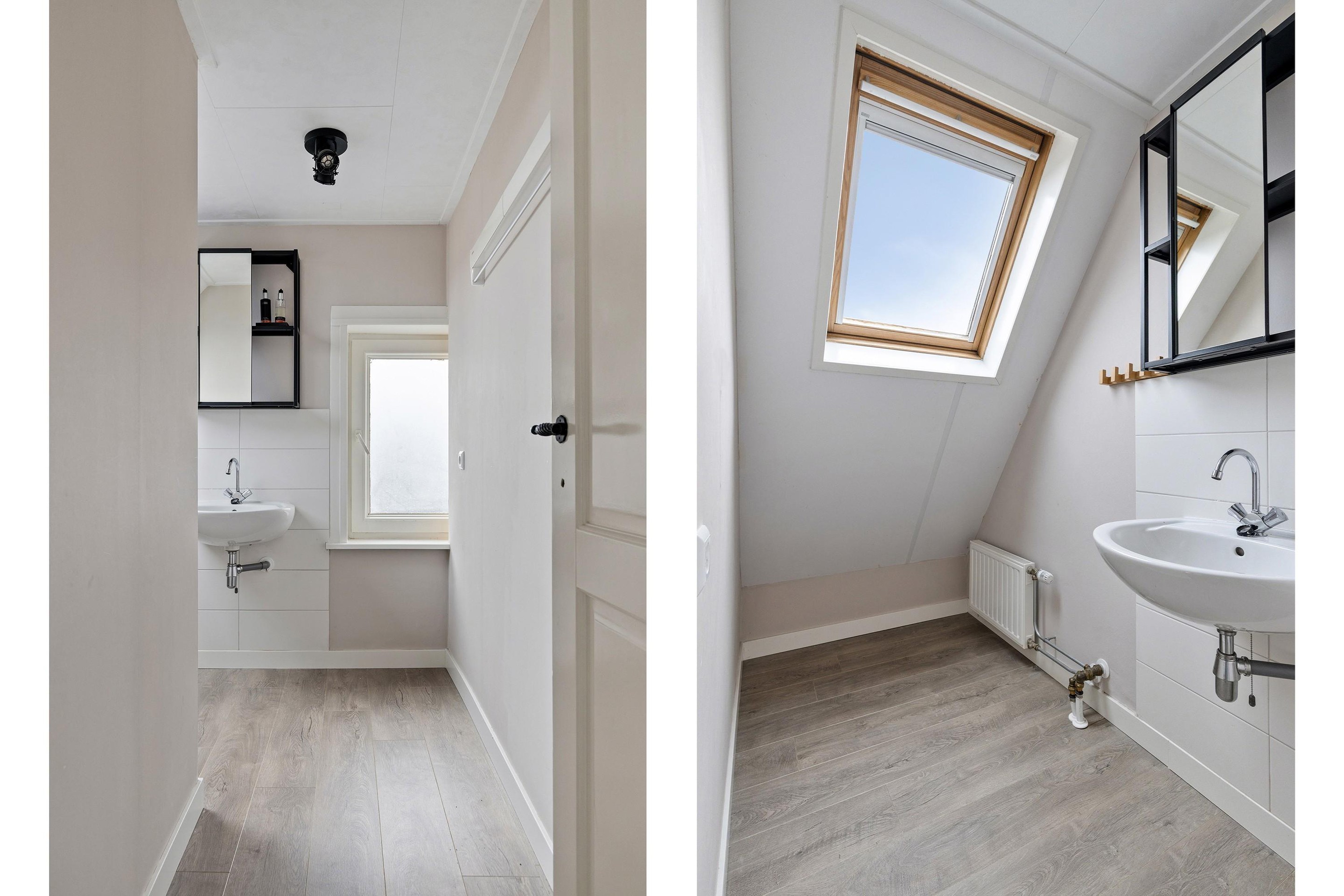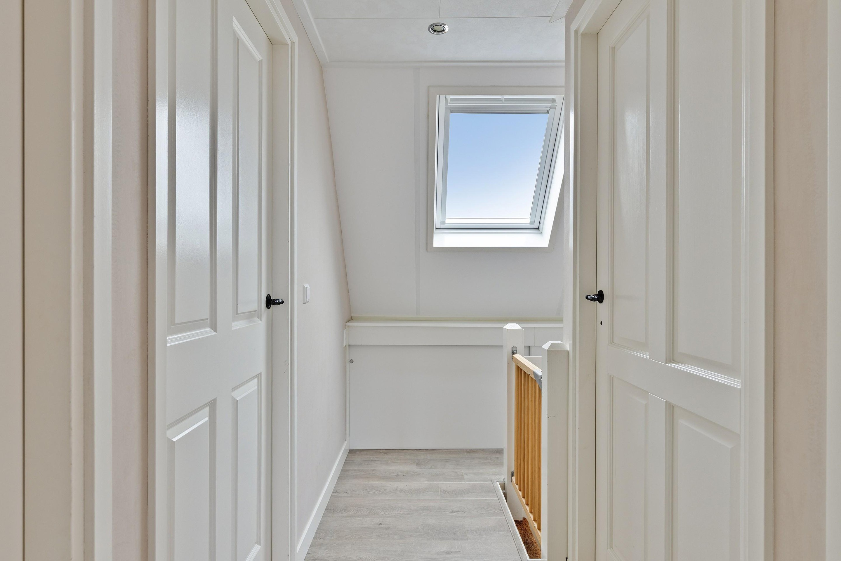 Eerste verdieping De overloop biedt extra bergruimte achter de knieschotten. Er zijn drie slaapkamers, elk met een brede dakkapel en draai-/kiepramen. Twee kamers zijn voorzien van een ingebouwde kast. Daarnaast is er een aparte wasruimte met vaste wastafel, die ook ideaal is als werk- of speelruimte. De airco hangt in het trapgat, waardoor zowel de verdieping als de begane grond prettig koel blijven.