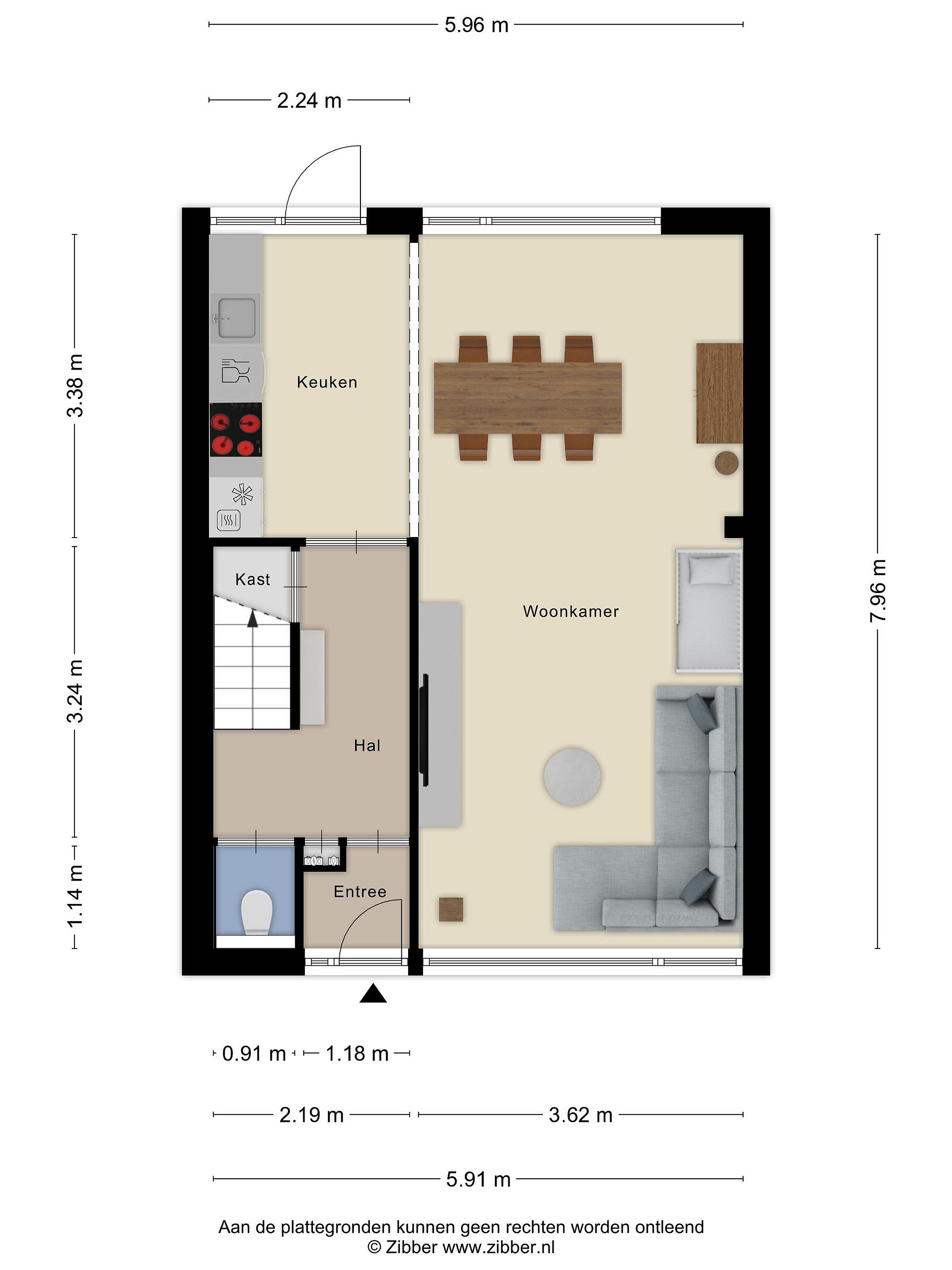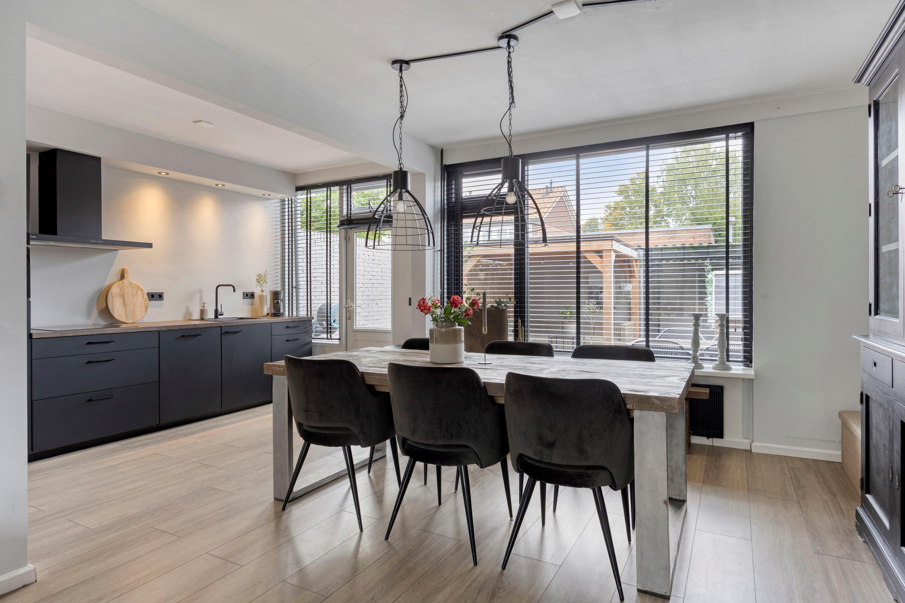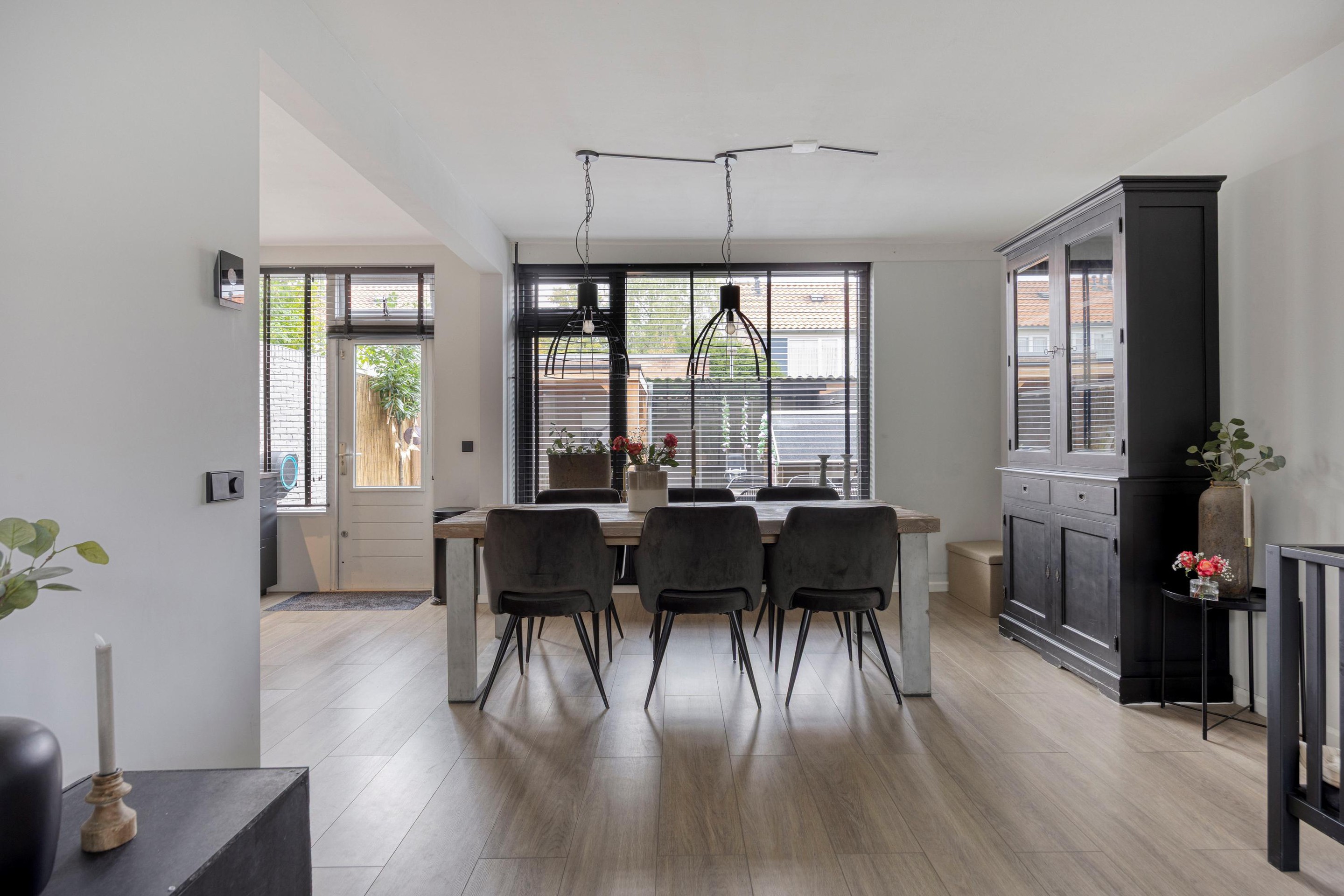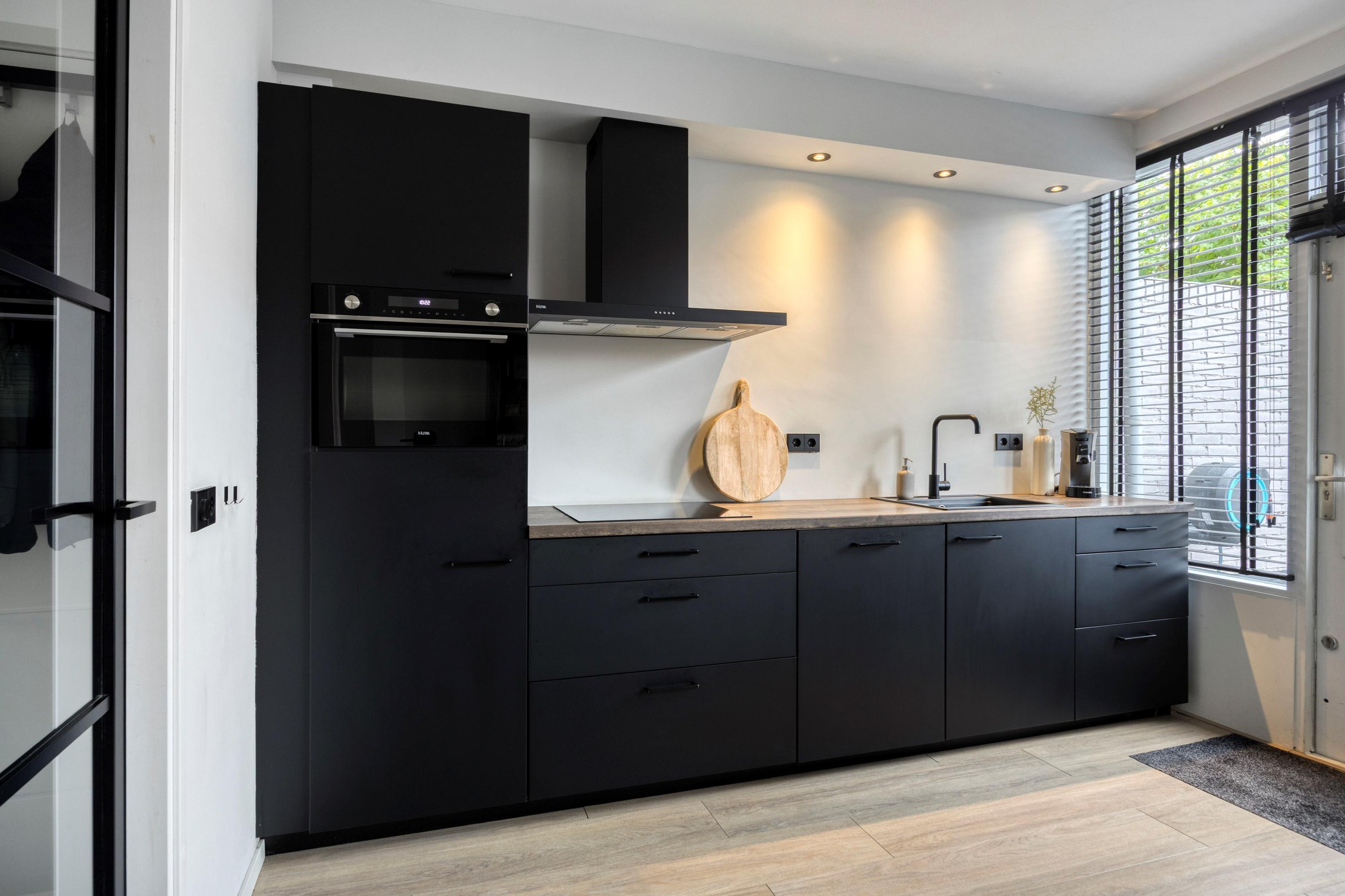 Begane grond Via de entree met portaal stap je de hal in, waar je de meterkast, trapkast en toiletruimte met zwevend toilet vindt. De woonkamer is ruim en strak afgewerkt met glad gestucte wanden en plafond. Aan de straatzijde bevindt zich het zitgedeelte met prettig lichtinval; aan de tuinzijde is ruimte voor een grote eettafel. De open keuken is in 2022 vernieuwd en voorzien van een moderne inbouwkeuken met apparatuur. Dankzij de doorbraak naar de woonkamer is er een mooie open ruimte ontstaan, waardoor de begane grond licht en ruimtelijk aanvoelt.