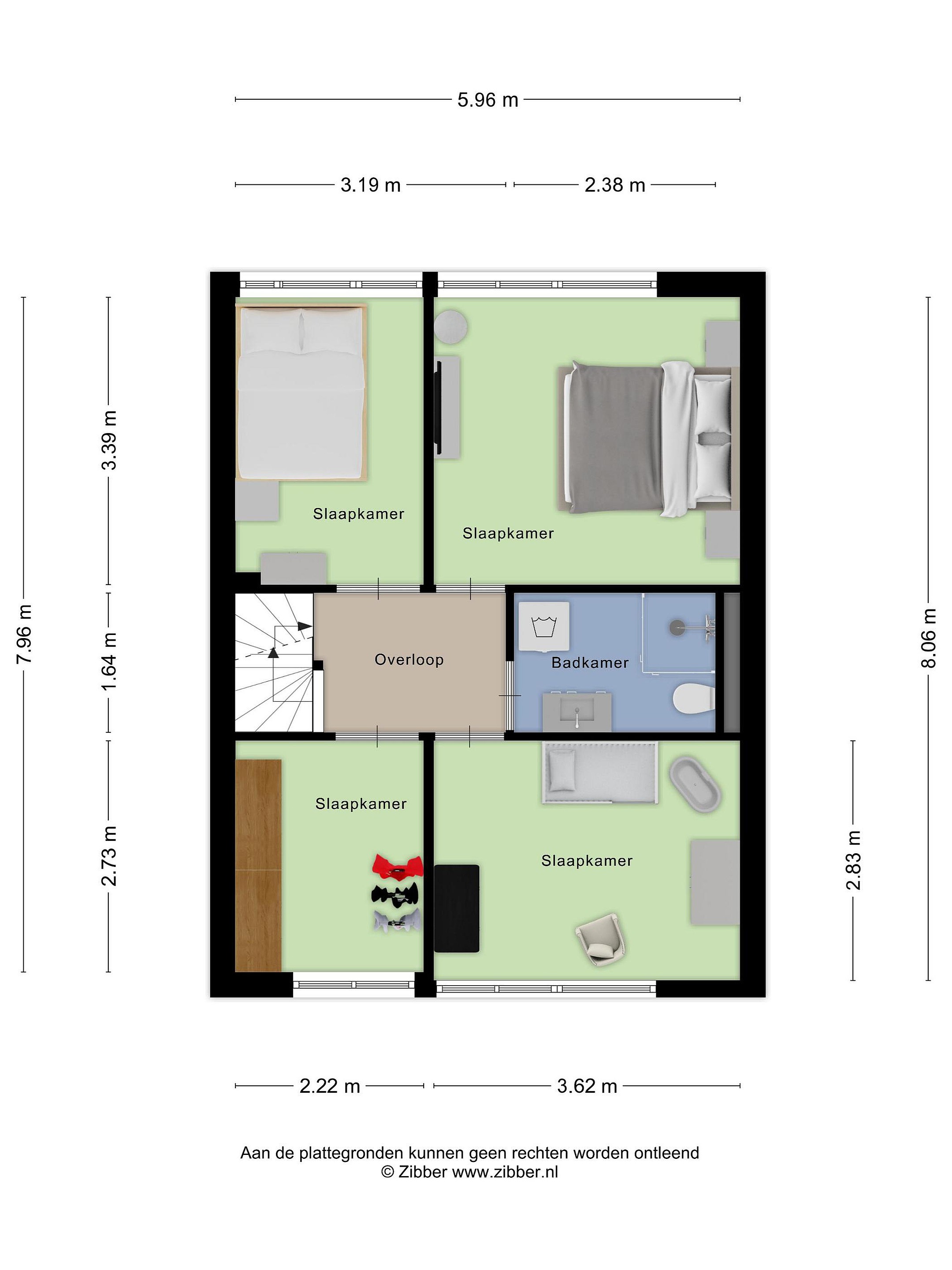 Eerste verdieping Vanaf de overloop bereik je vier volwaardige slaapkamers. Doordat zowel de voor- als achtergevel recht zijn opgetrokken, zijn alle kamers praktisch in te delen. De badkamer (ook vernieuwd in 2022) is modern uitgevoerd met een douche, wastafelmeubel, zwevend toilet en aansluiting voor de wasmachine.
