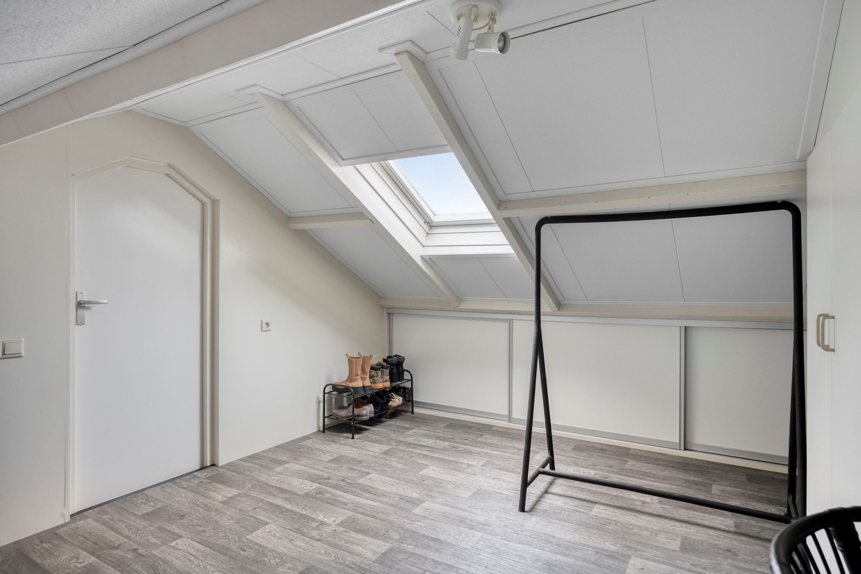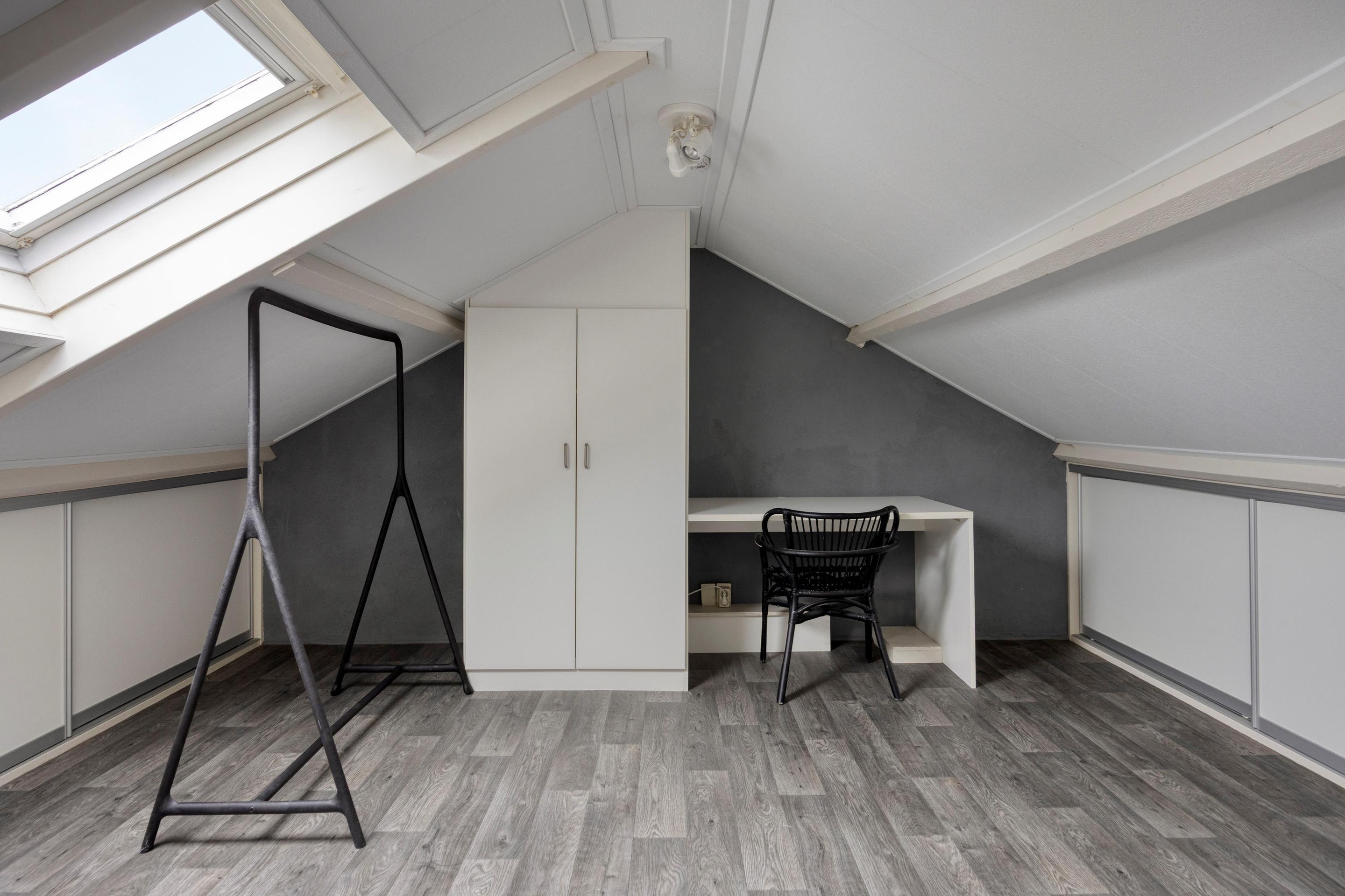 Tweede verdieping De vaste trap brengt je naar de zolderverdieping. Hier vind je een overloop met bergruimte aan beide zijden, de in 2018 vernieuwde cv-ketel en de airconditioning die ook op de eerste verdieping zorgt voor een prettig klimaat. De zolderkamer is functioneel, met extra bergruimte achter de knieschotten en een vaste kast, ideaal als werk-, hobby- of logeerkamer.
