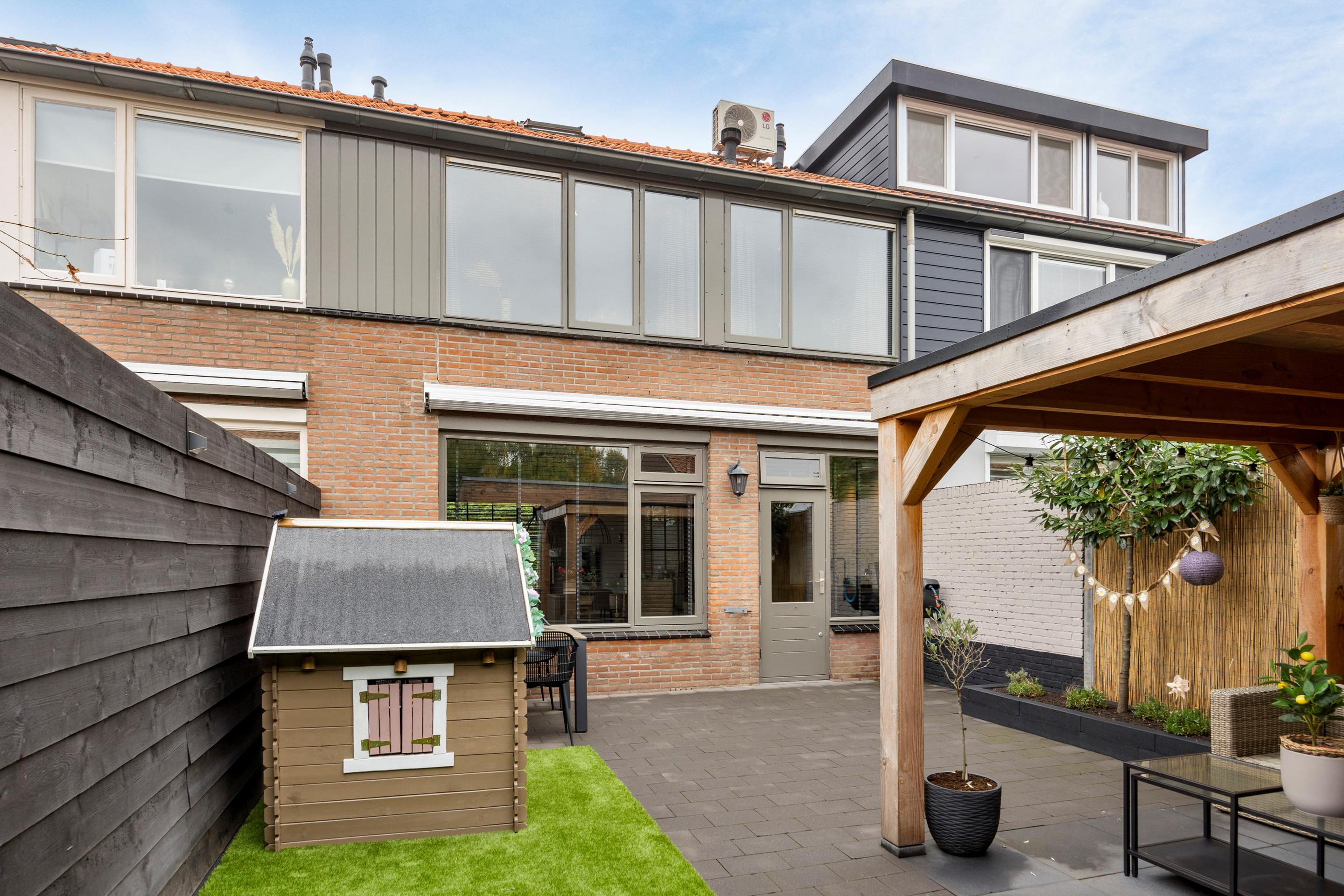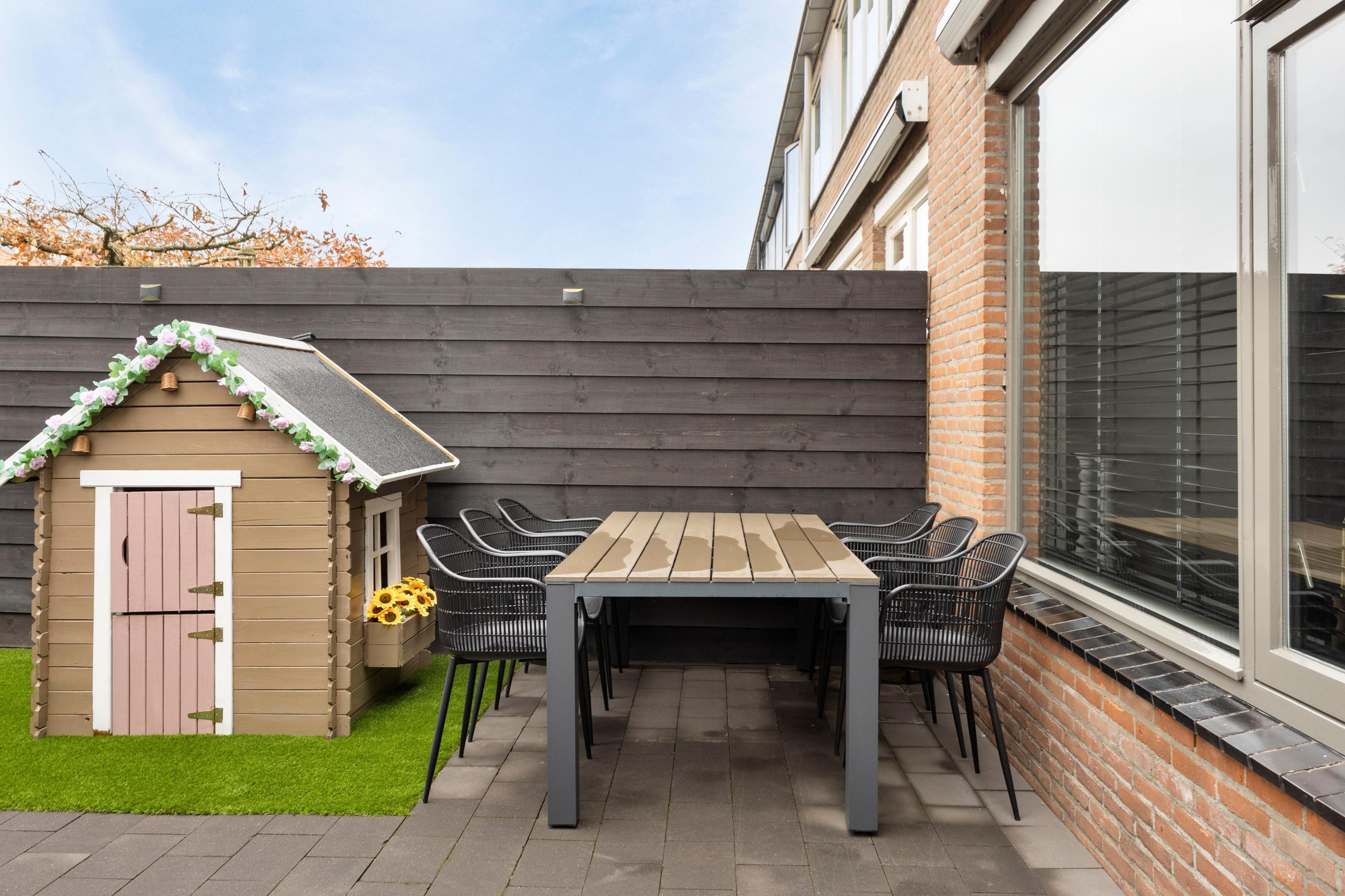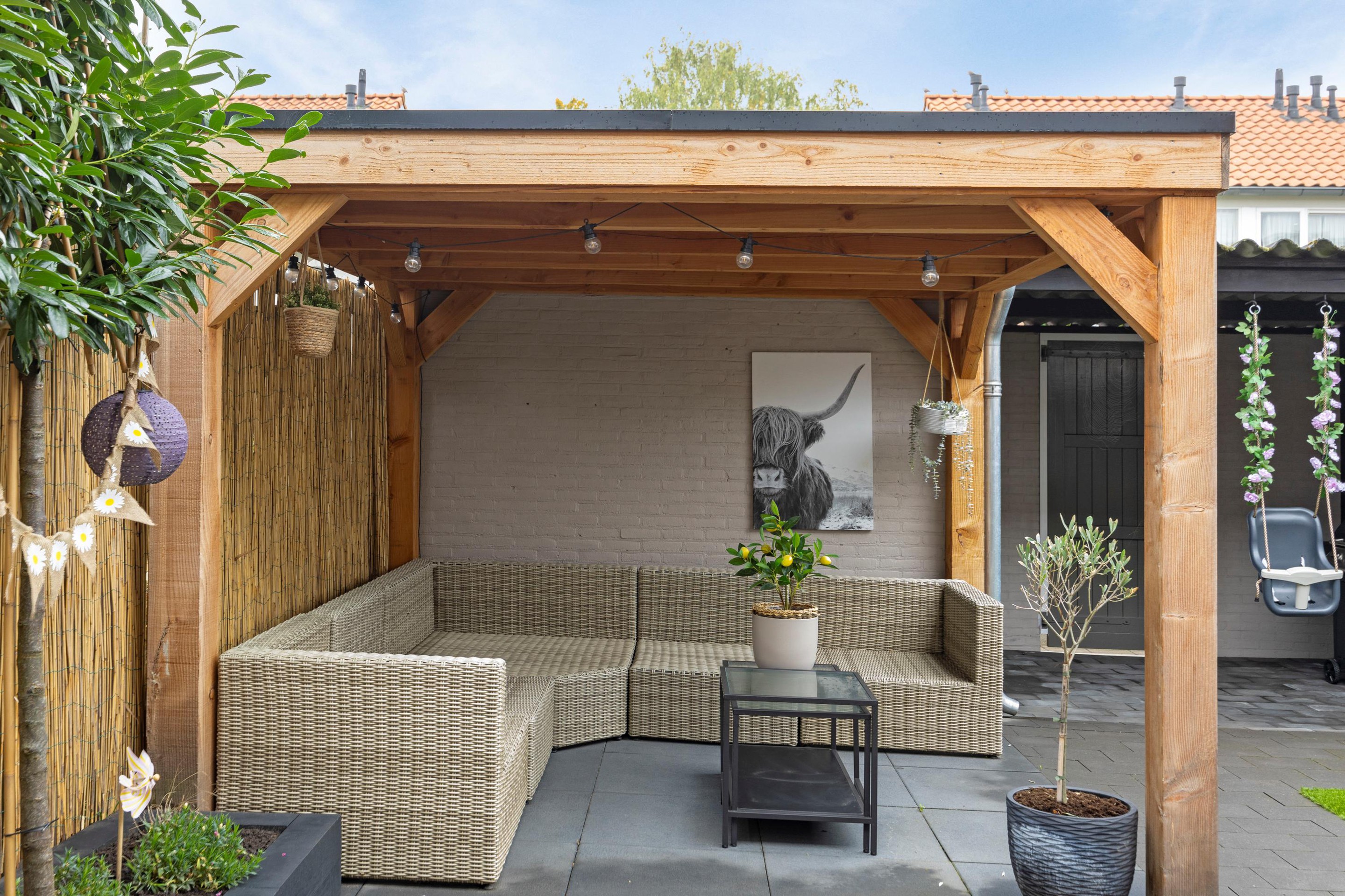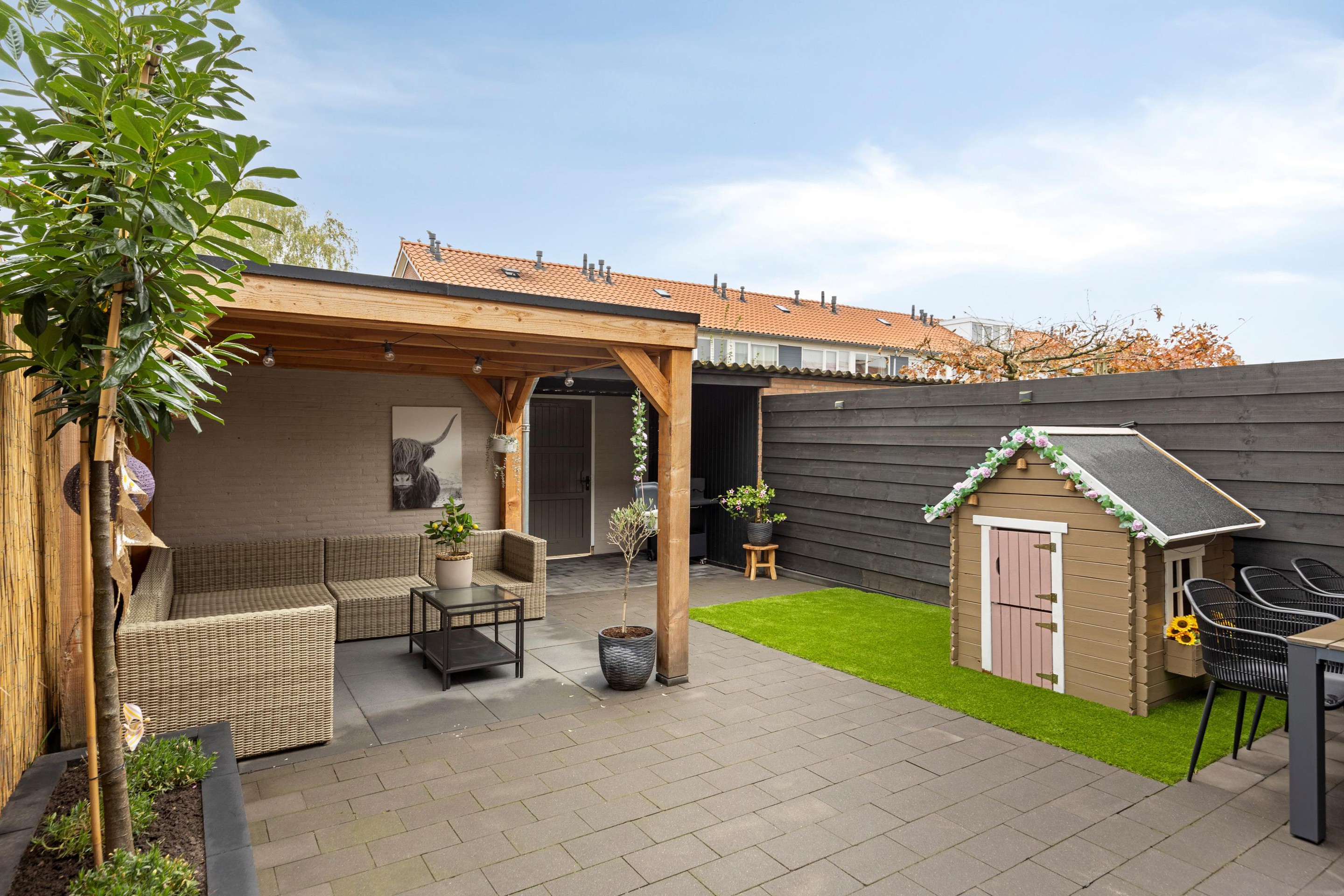 Tuin De achtertuin is keurig aangelegd en heerlijk besloten, met een fijn terras, een overdekte veranda en een stenen berging met daarvóór nog een extra overkapping. Een ideale plek om van het buitenleven te genieten. De woning ligt in een rustige straat met scholen, speeltuin, kerken en verenigingen in de directe omgeving.