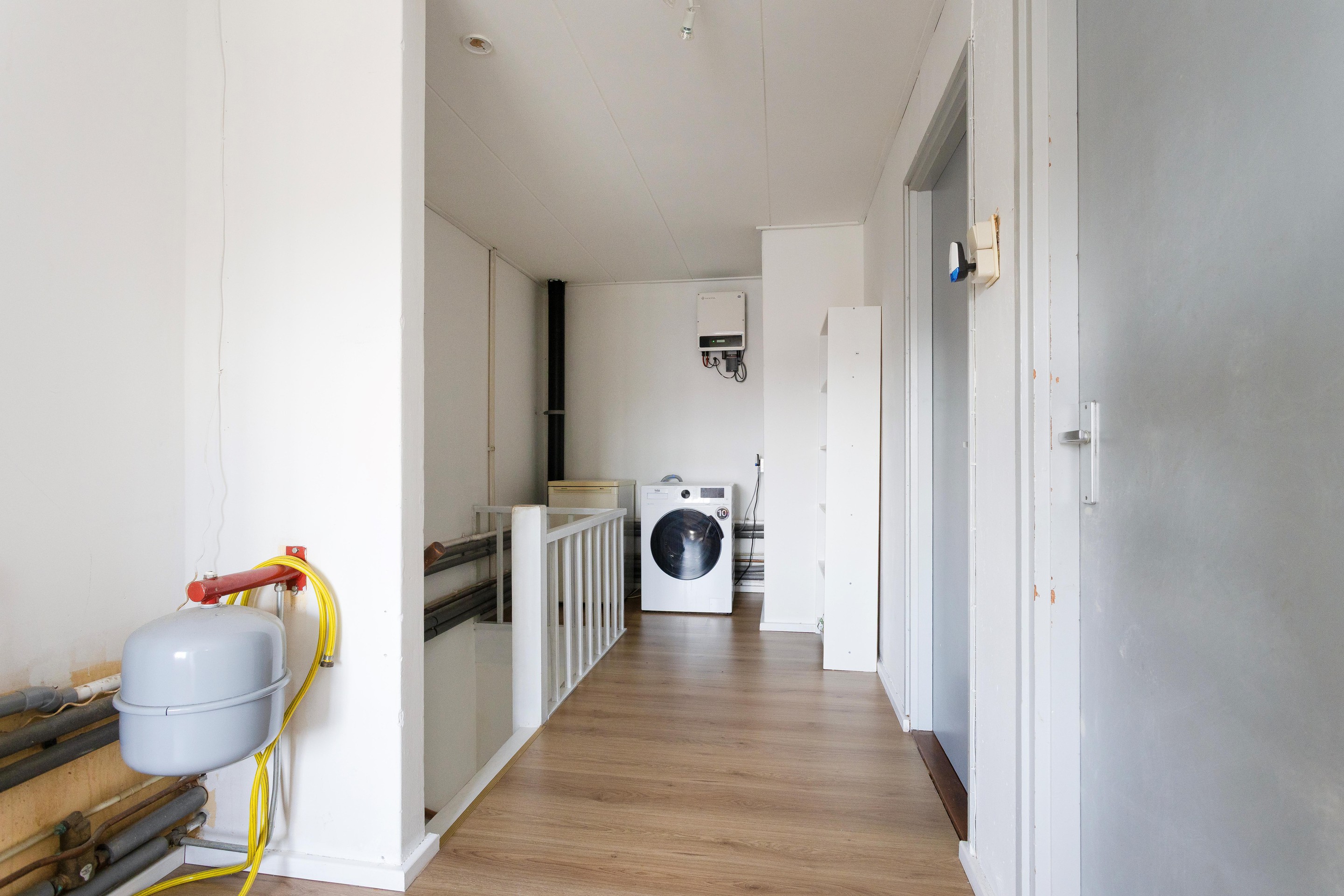 Met een vaste trap bereikbare overloop met opstelplaats witgoed en cv-ketel (Nefit HR combi 2020 gehuurd incl. onderhoudscontract voor €32,65 per maand). Op deze verdieping ook 2 slaapkamers welke eveneens v.v. zijn van vaste inbouwkasten. De vloer op deze verdieping is afgewerkt met laminaat, de plafonds zijn afgewerkt met gipsplaten de muren zijn gestuct.