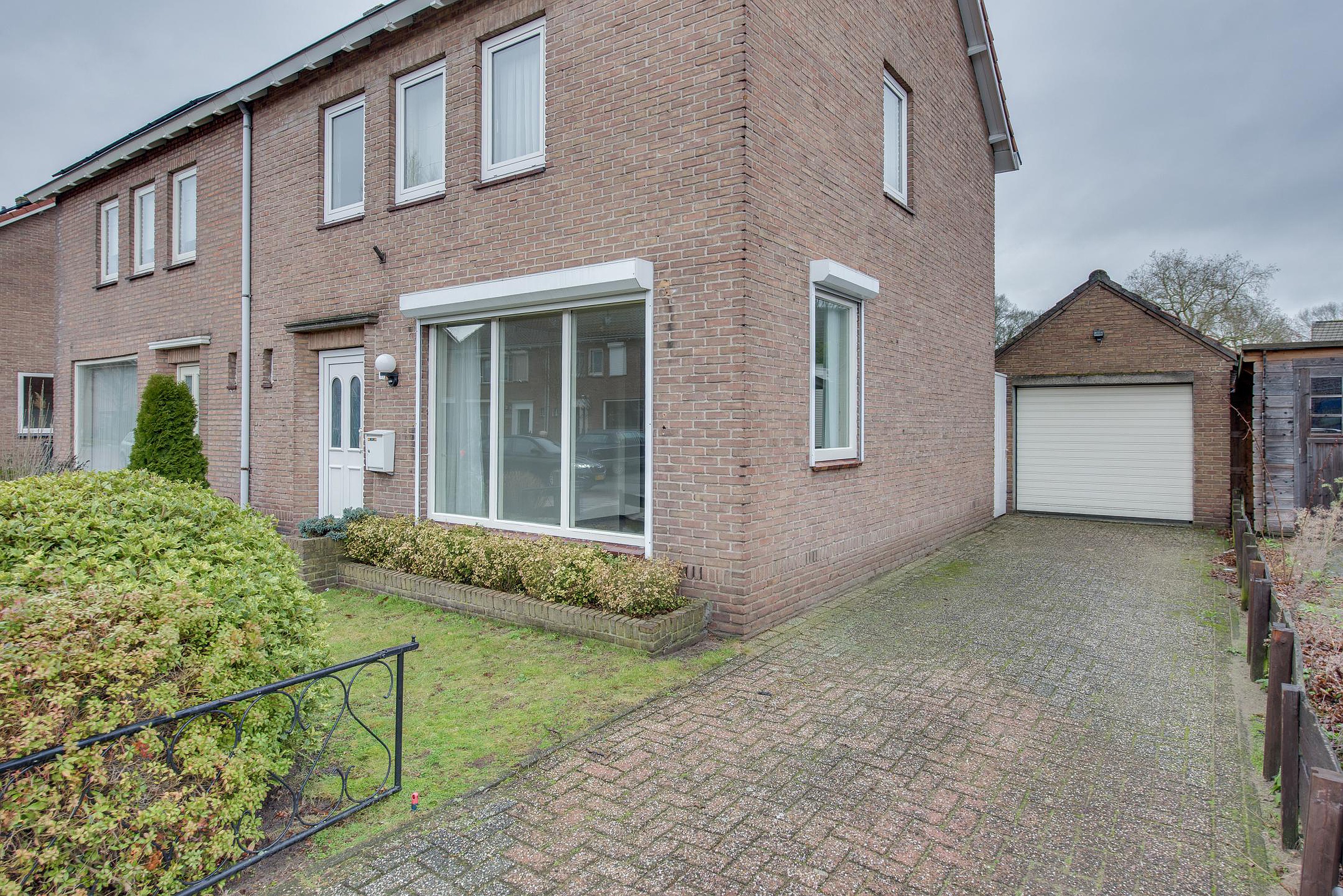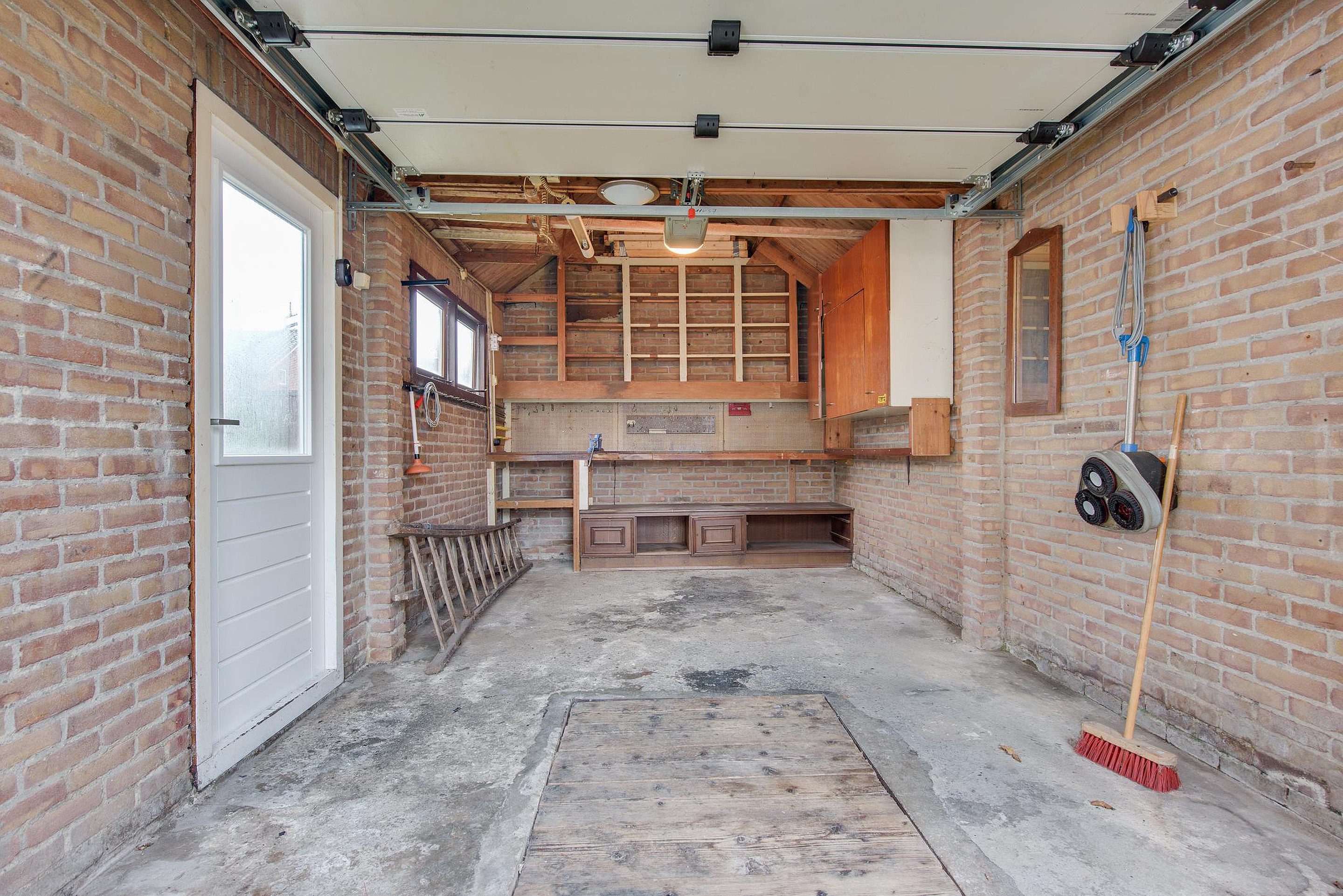 De in kap gerealiseerde stenen garage is pannen gedekt, is voorzien van een elektrisch bedienbare sectionaaldeur en separate loopdeur, heeft een breedte van circa 3m¹ en een lengte van circa 5,40m¹, waardoor zij een oppervlakte heeft van zo’n 16m2. Het aangebouwde houten schuurtje heeft een oppervlakte van ca. 6m2.