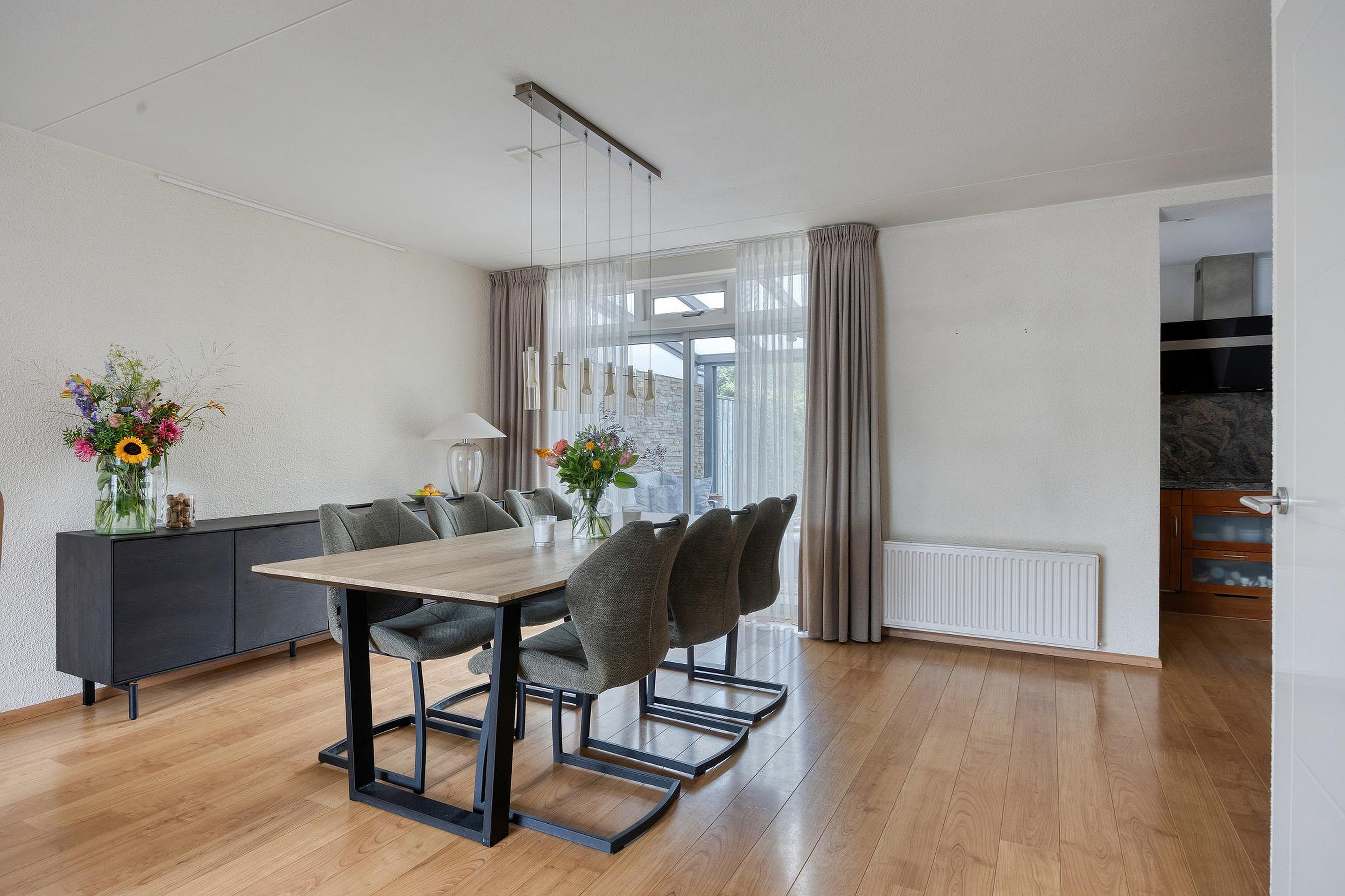 Bij binnenkomst in deze keurig afgewerkte woning wordt u verwelkomt in een nette hal met meterkast, trapopgang en een modern afgewerkte toiletruimte voorzien van wandcloset en fontein. De woning heeft een lichte, sfeervolle doorzon woonkamer met een gezellige zithoek en ruimte voor een royale eettafel. De strakke laminaatvloer en spackspuitwerk op wanden en plafond zorgen voor een frisse en verzorgde uitstraling. Aan de achterzijde nodigt een schuifpui u uit naar de aangename tuinkamer/serre, een heerlijke extra leefruimte met glazen schuifwand en elektrisch bedienbare screen. Dankzij de grote raampartijen baadt deze ruimte in het daglicht, perfect om het hele jaar door van te genieten.