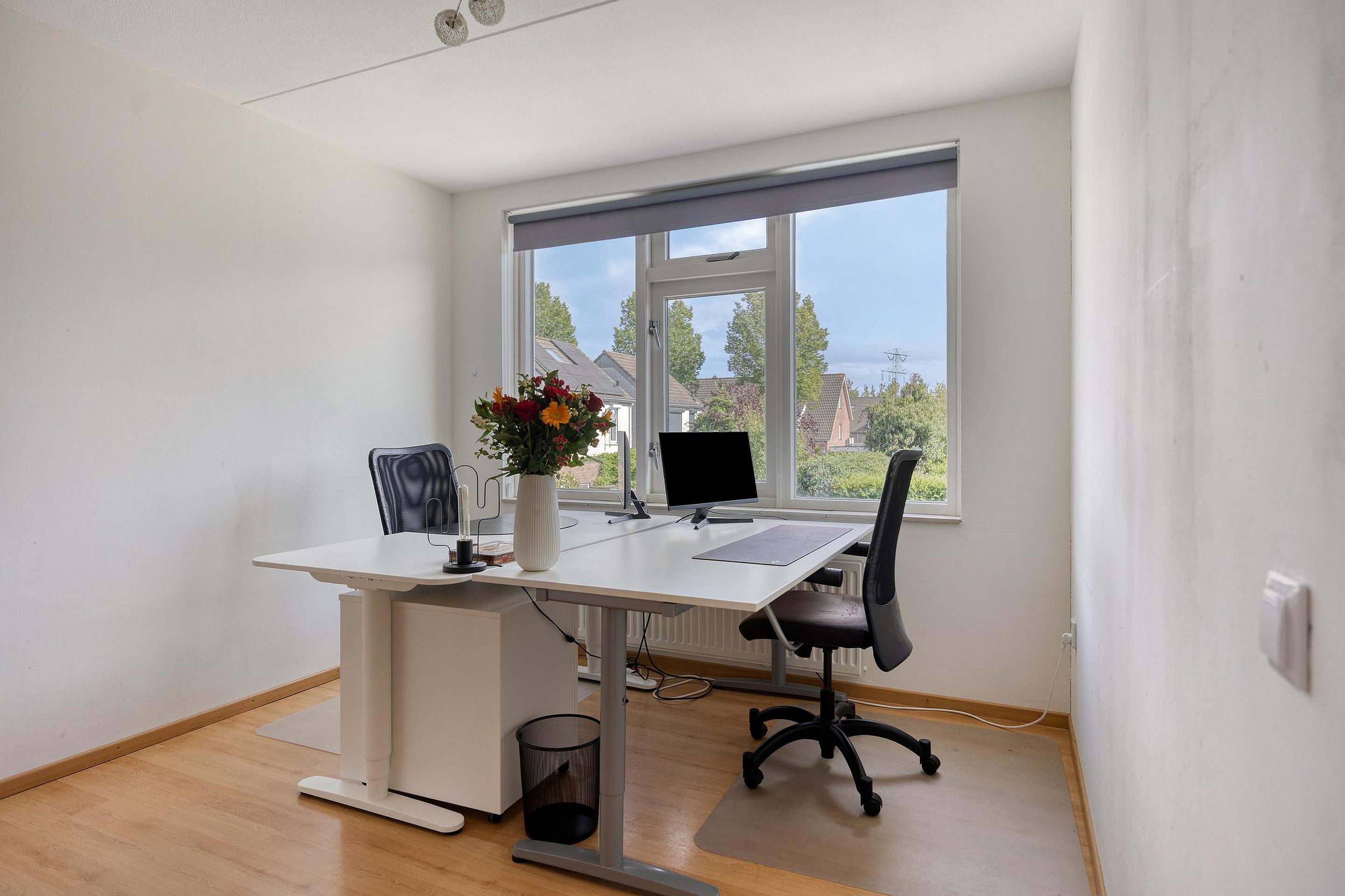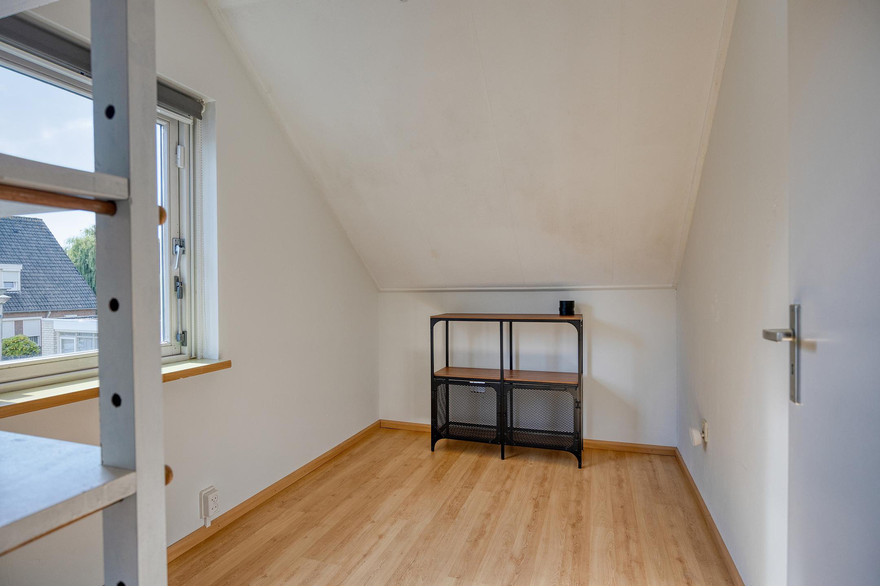 Tweede verdieping Via een vaste trap bereikt u de ruime zolderverdieping. Hier bevindt zich een vierde (slaap)kamer van circa 15m2, met extra bergruimte achter de knieschotten en een groot Velux dakraam voor een prettige lichtinval. Deze ruimte is uitermate geschikt als slaapkamer, thuiswerkplek of hobbykamer.