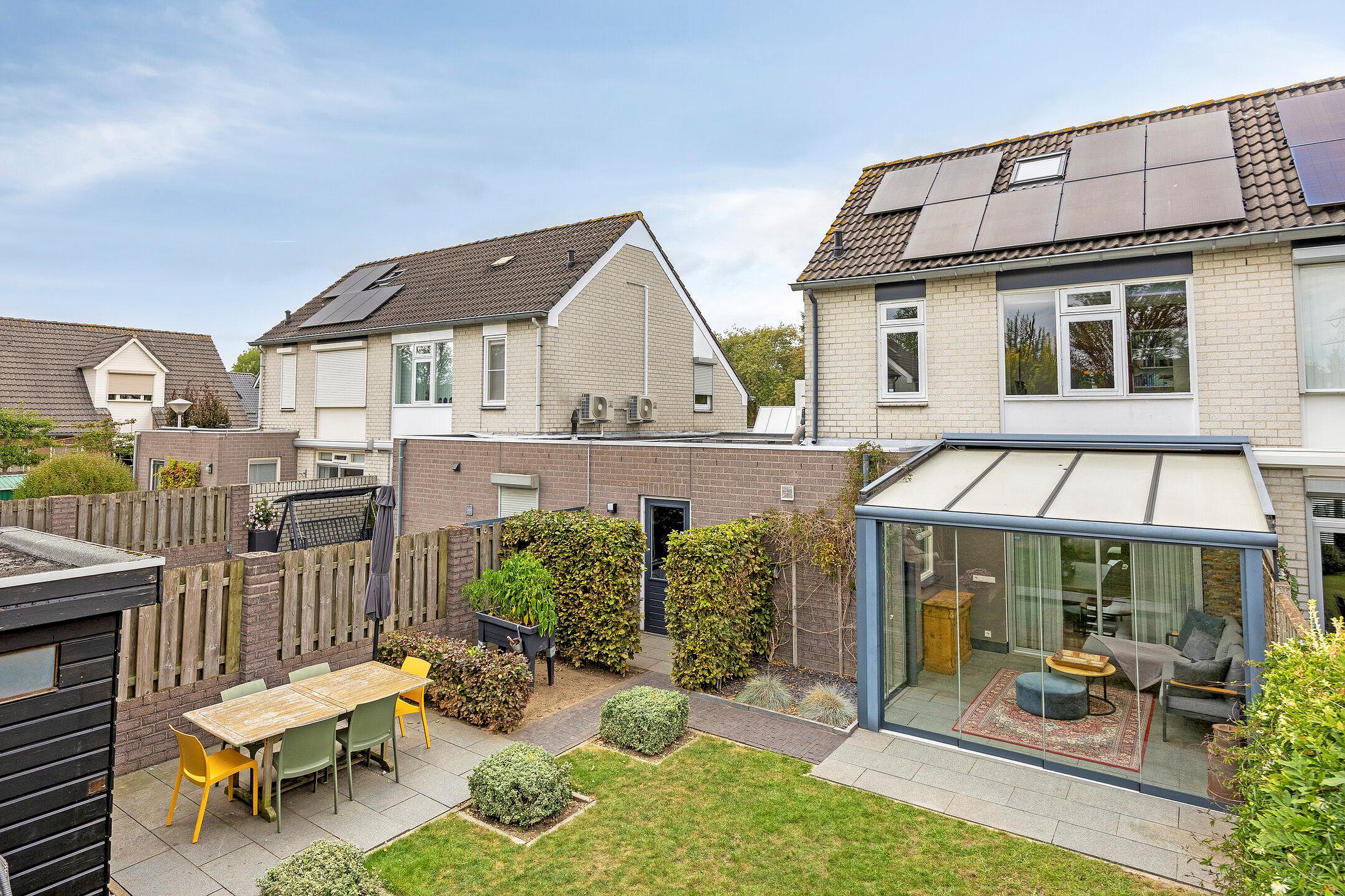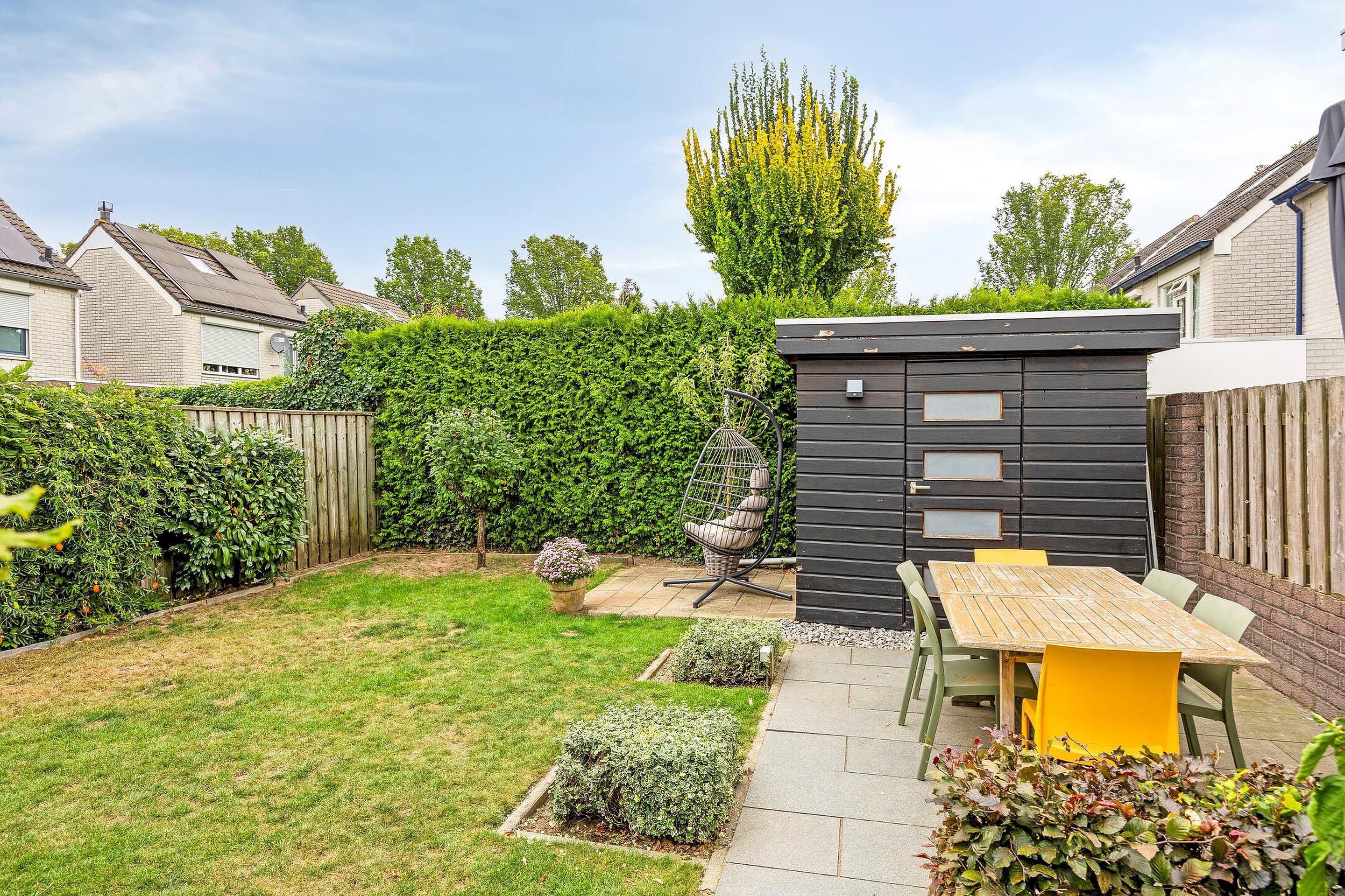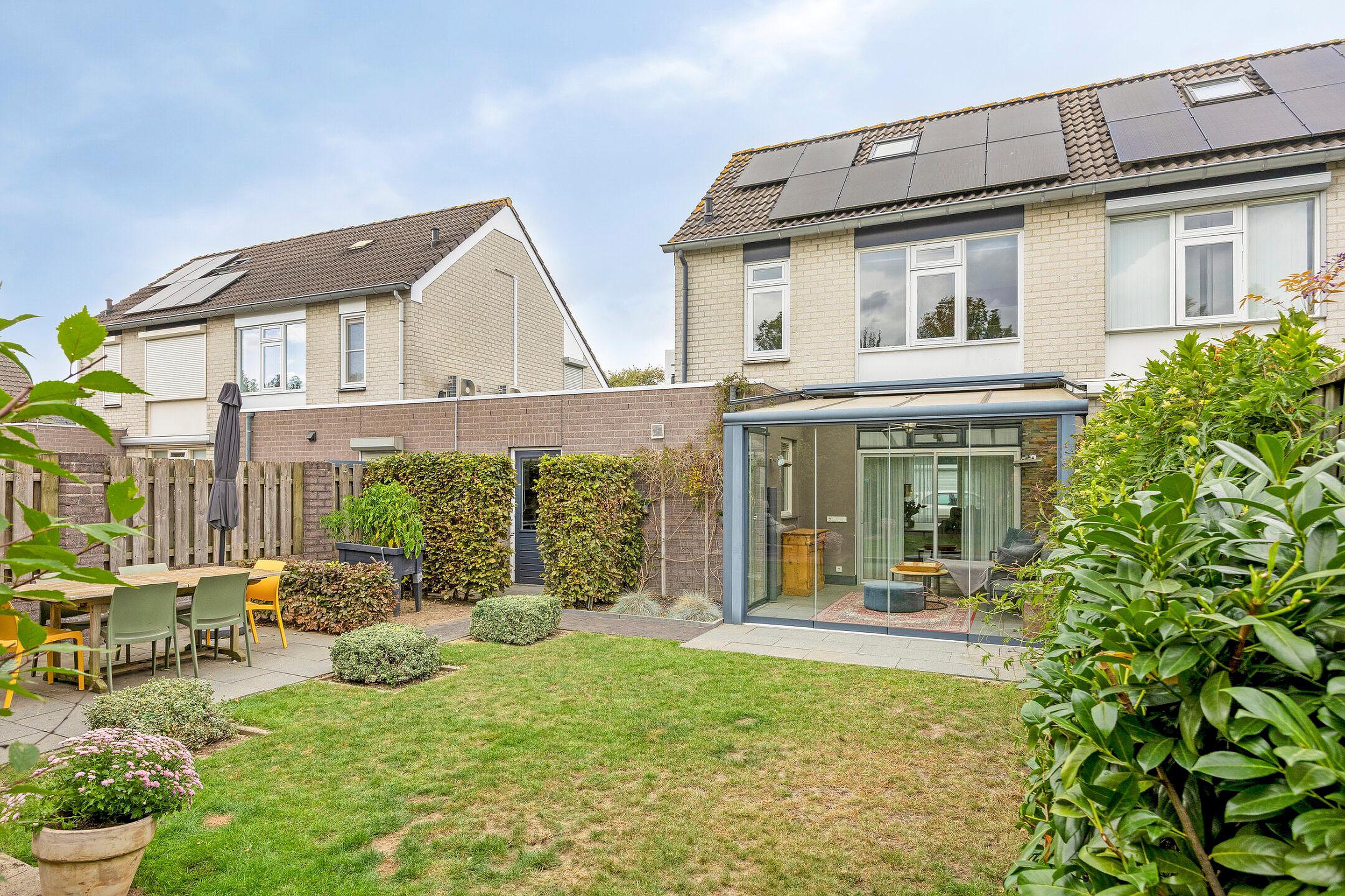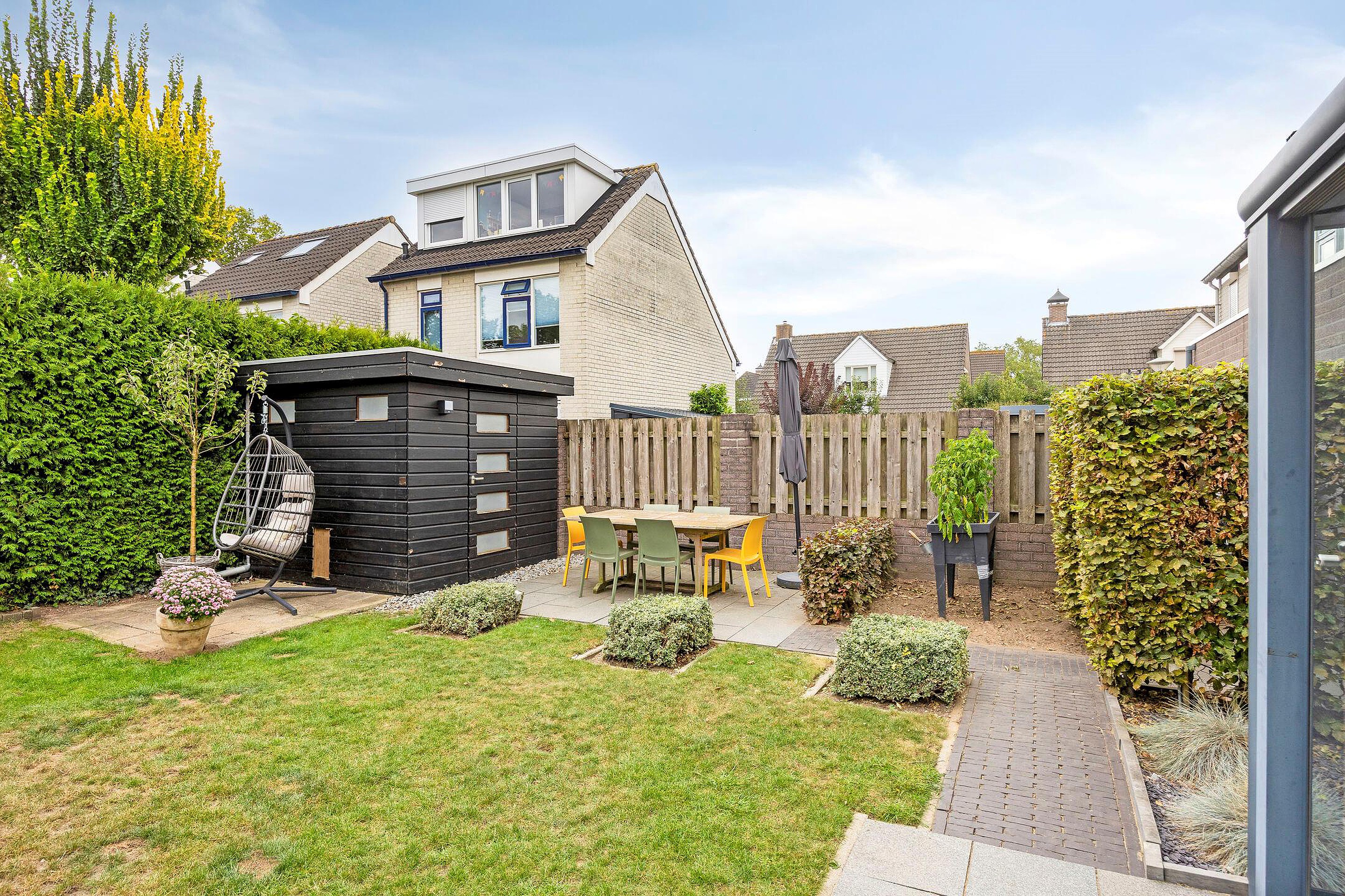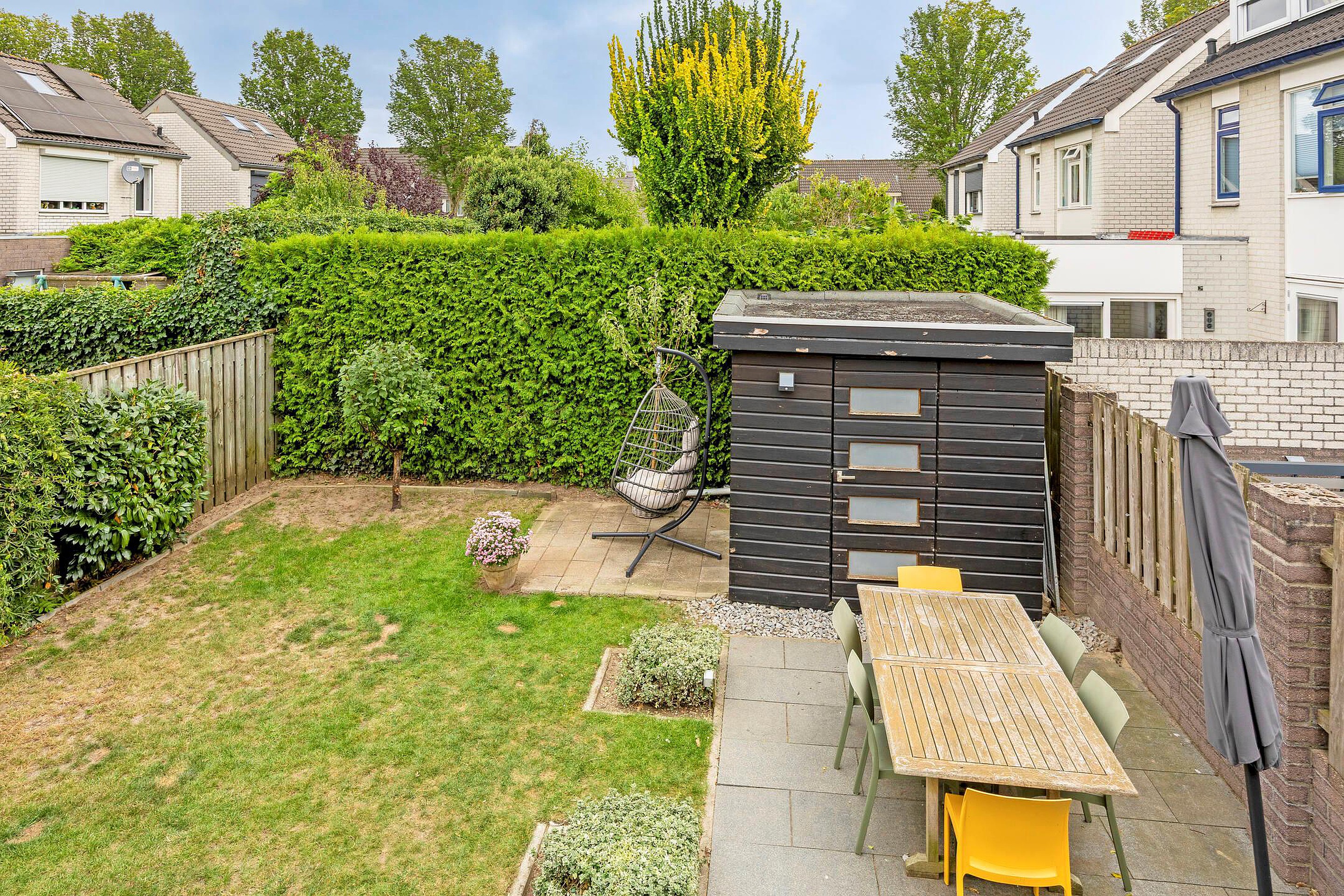 De fraai aangelegde, op het zuidoosten gelegen achtertuin vormt het perfecte sluitstuk van deze woning. Hier geniet u van optimale privacy, veel zonuren en een stijlvolle, onderhoudsvriendelijke afwerking. De tuin beschikt over een royaal zonneterras waar u heerlijk kunt loungen of buiten dineren. De strakke sierbestrating wordt afgewisseld met weelderige borders vol vaste planten en een frisgroen gazon, wat zorgt voor een prettige balans tussen comfort en natuurlijke charme. Achterin de tuin staat een moderne houten berging met extra opslagruimte voor tuinmeubilair en gereedschap. De hoge groene haag en houten schutting zorgen voor een rustige en besloten sfeer. Kortom, deze tuin is een heerlijke verlenging van de woonruimte, ideaal voor gezinnen, tuinliefhebbers én levensgenieters!