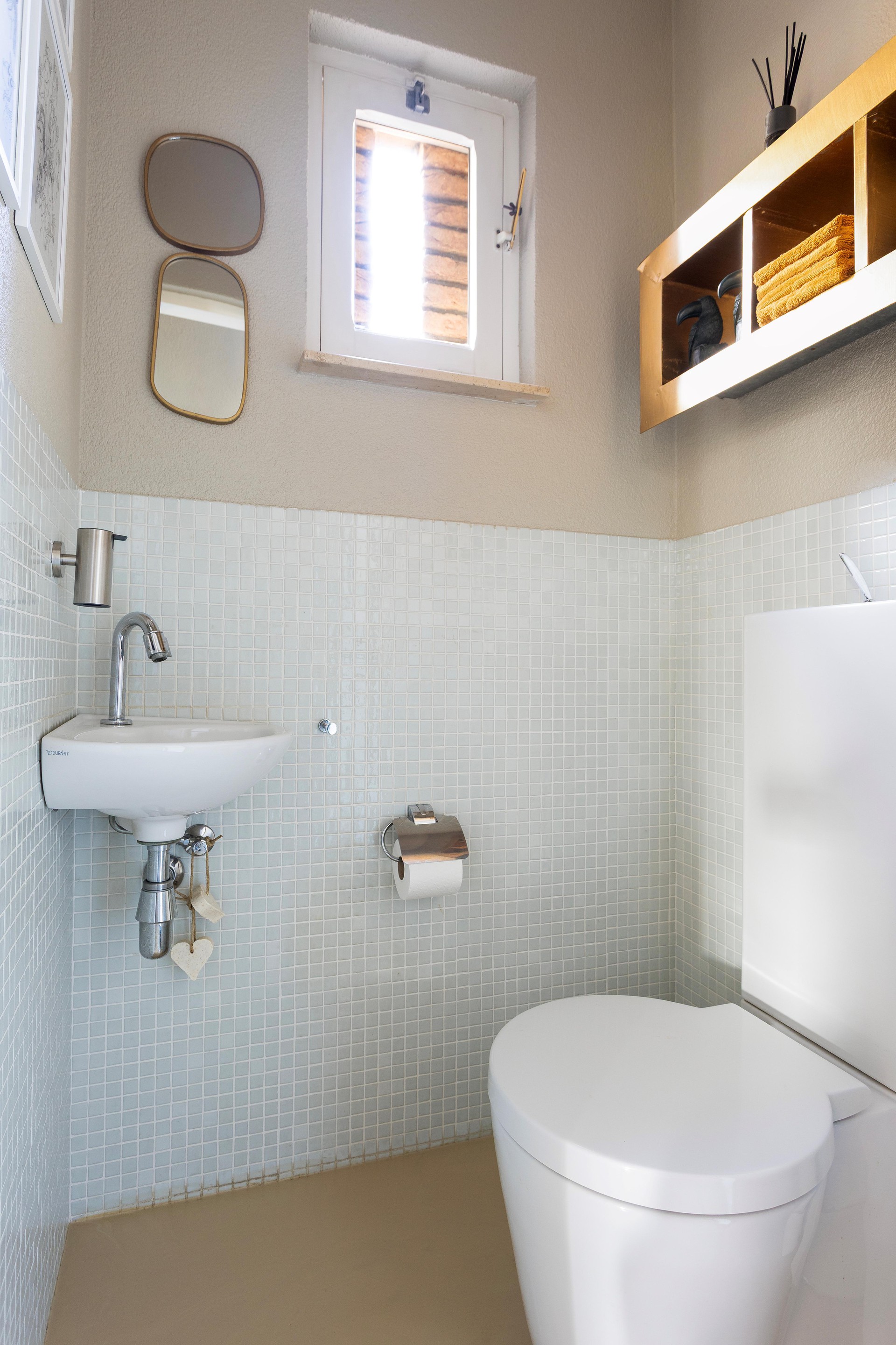 - Bijkeuken met meterkast (9 groepen, kookgroep, krachtstroom en aardlekschakelaars), een toiletruimte met toilet en fonteintje en de aansluitingen voor witgoed