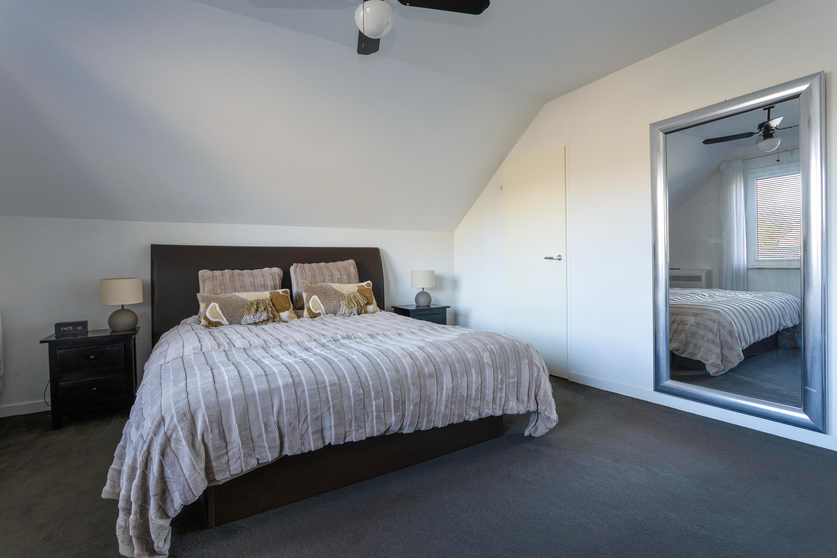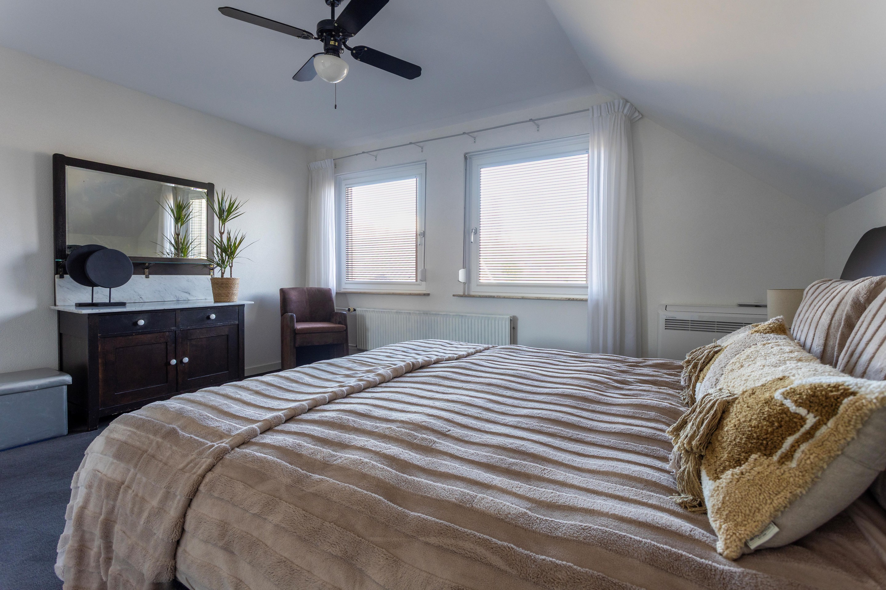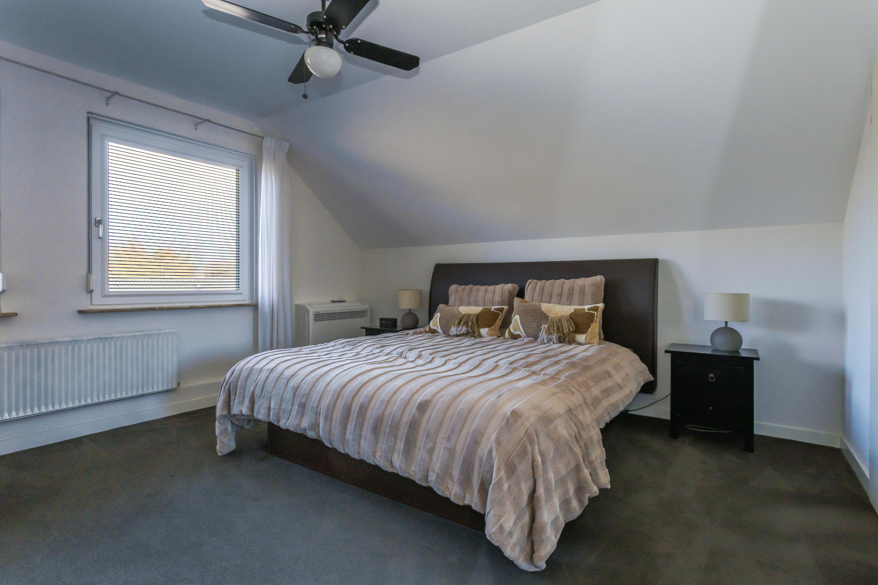 - Grote slaapkamer voorzien van airco met buitenunit (verwarmen en koelen)