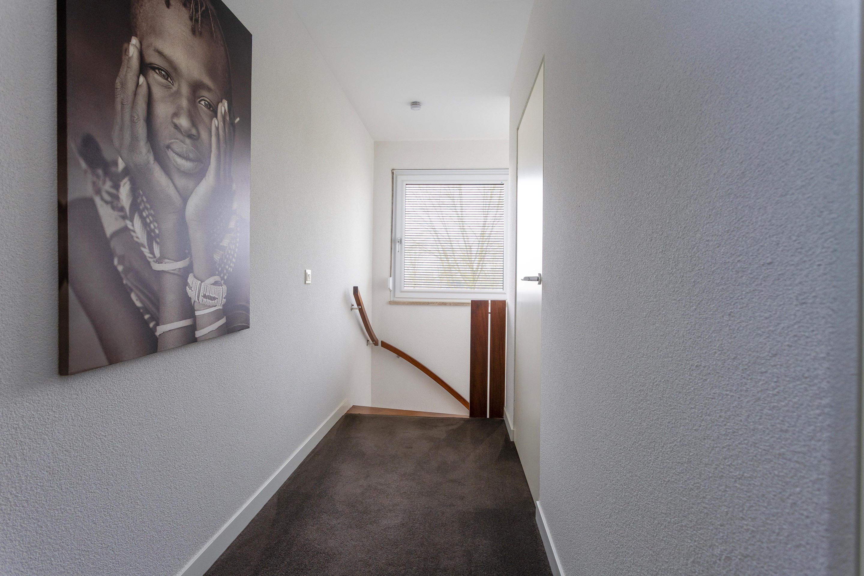- Overloop met toegang tot vier slaapkamers, een inbouwkast en de badkamer