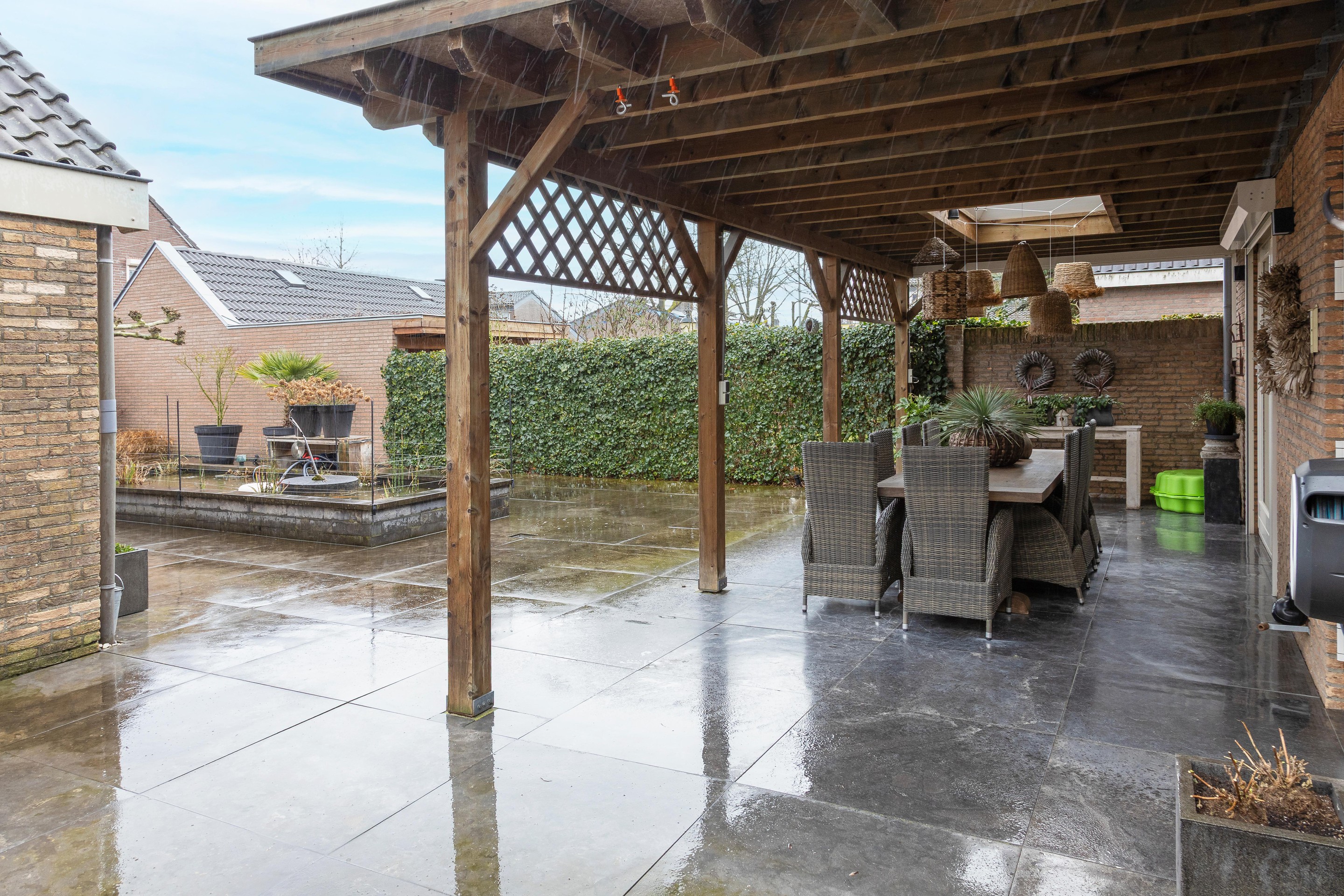 - Schuifpui naar de aangebouwde veranda, waardoor het buitenleven echt onderdeel wordt van de woning
