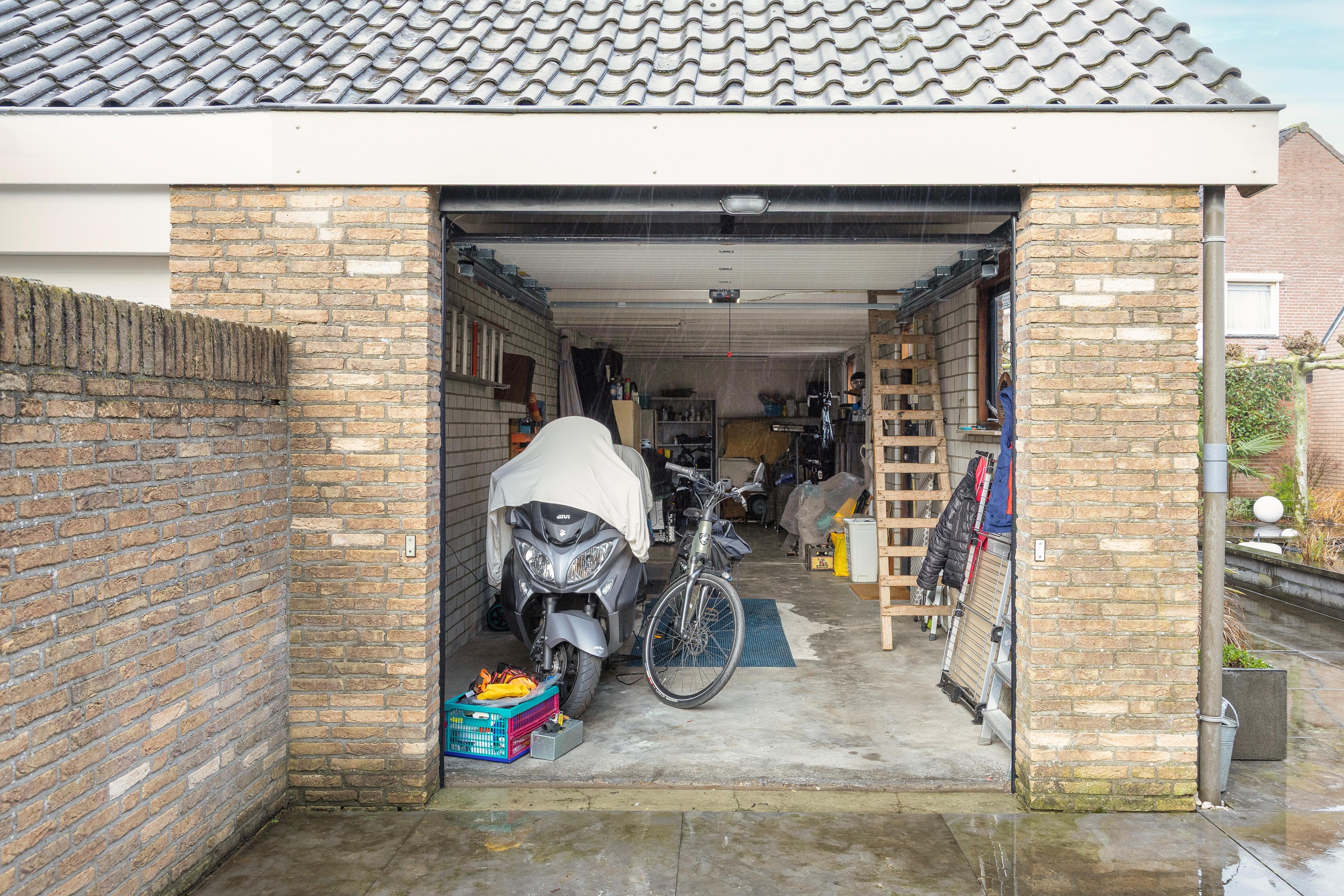 - Uitgebouwde garage, deels voorzien van een vliering