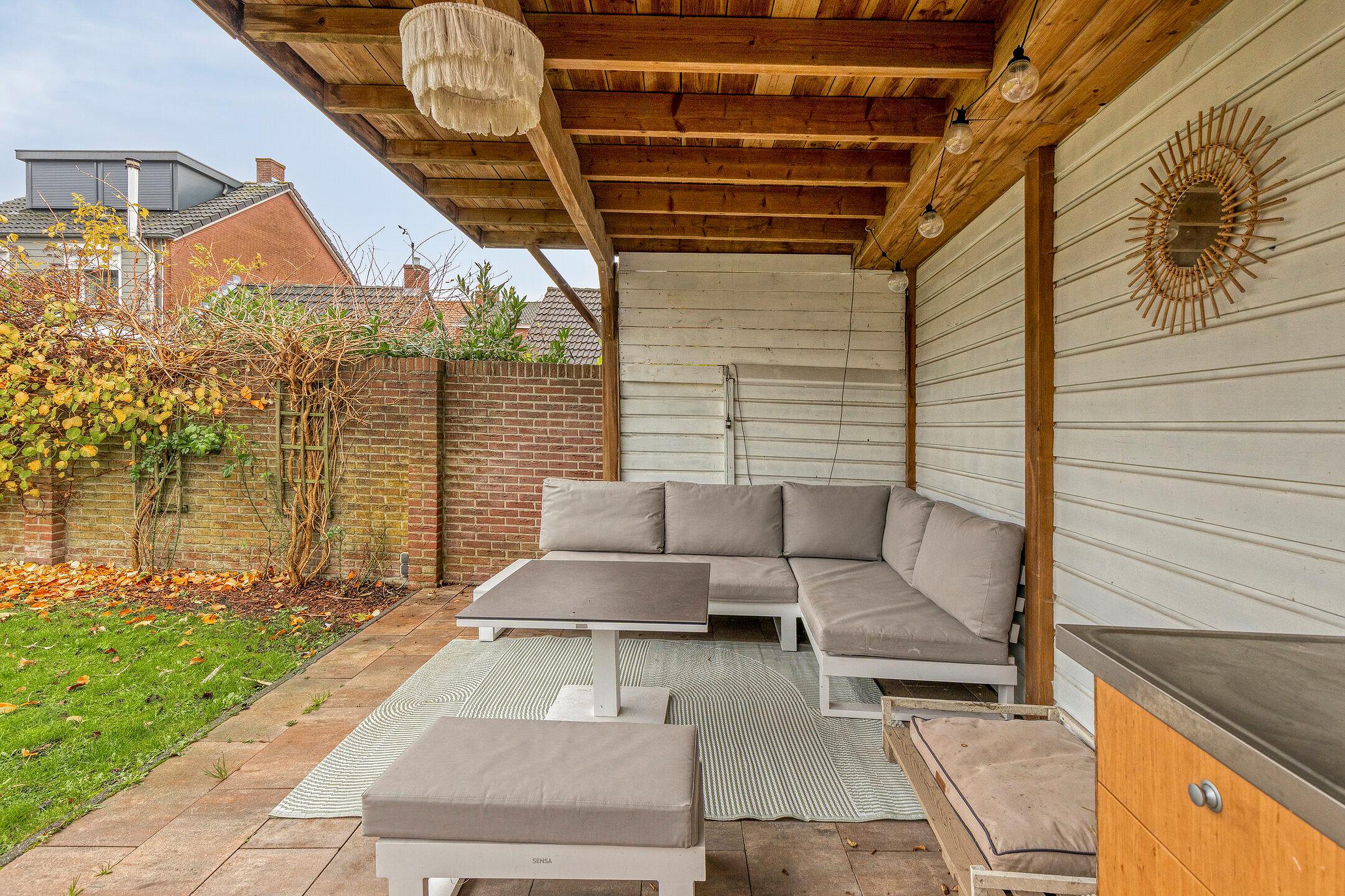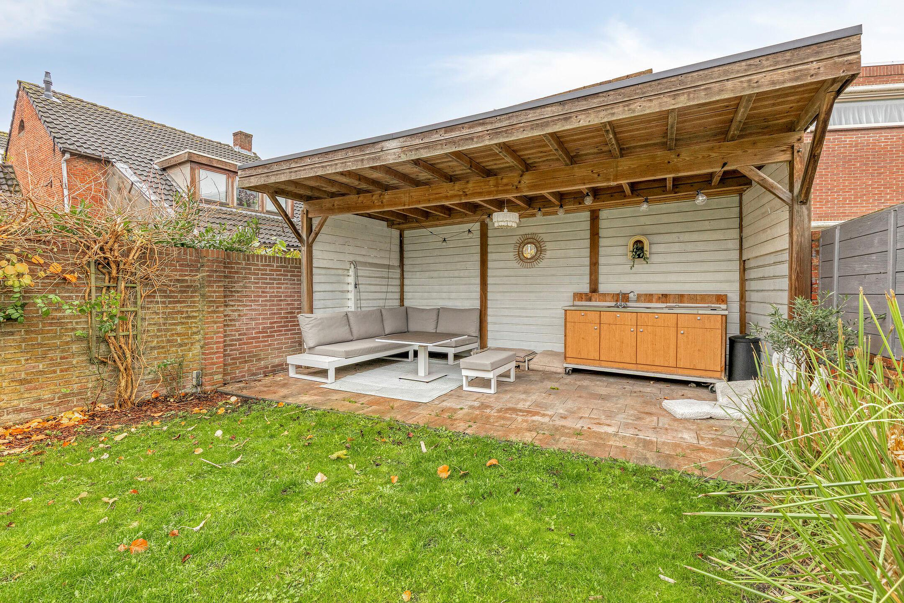 Achter in de tuin bevindt zich een grote overkapping met een buitenkeuken. Ook is er nog een extra berging.