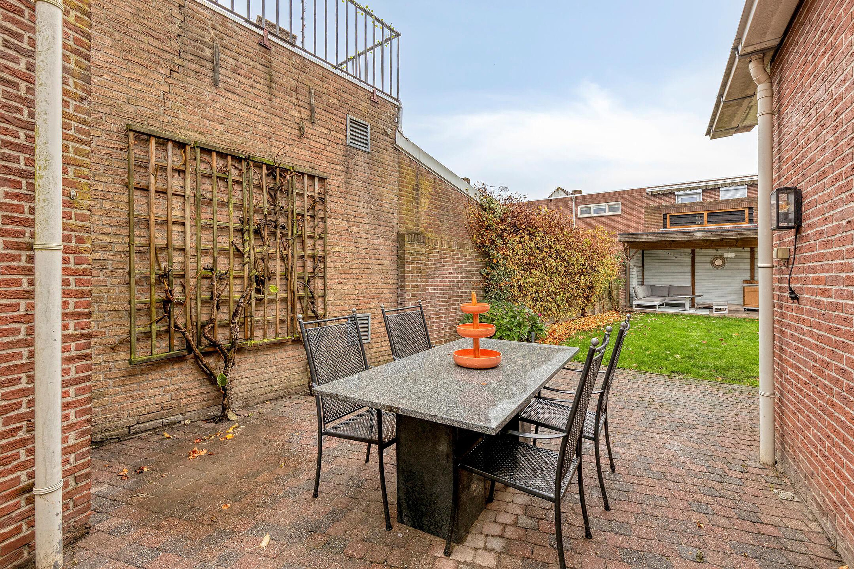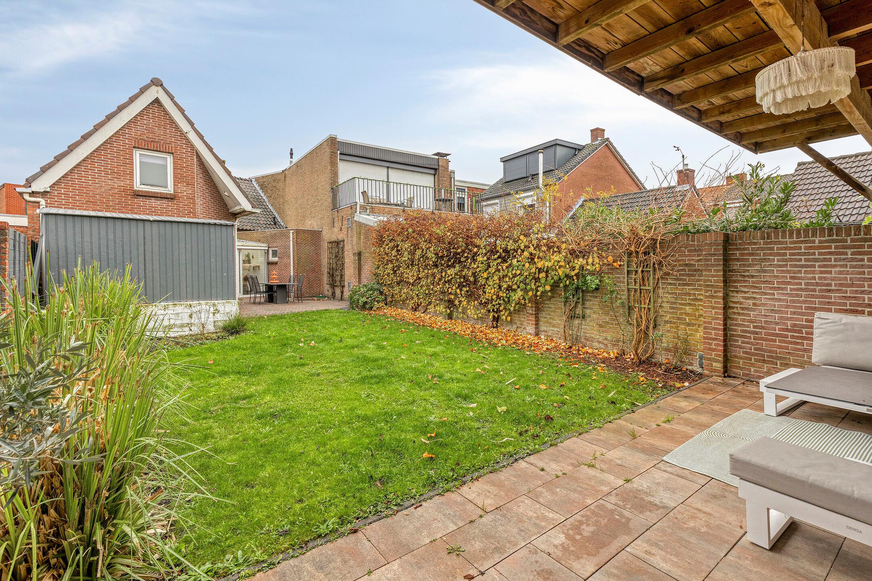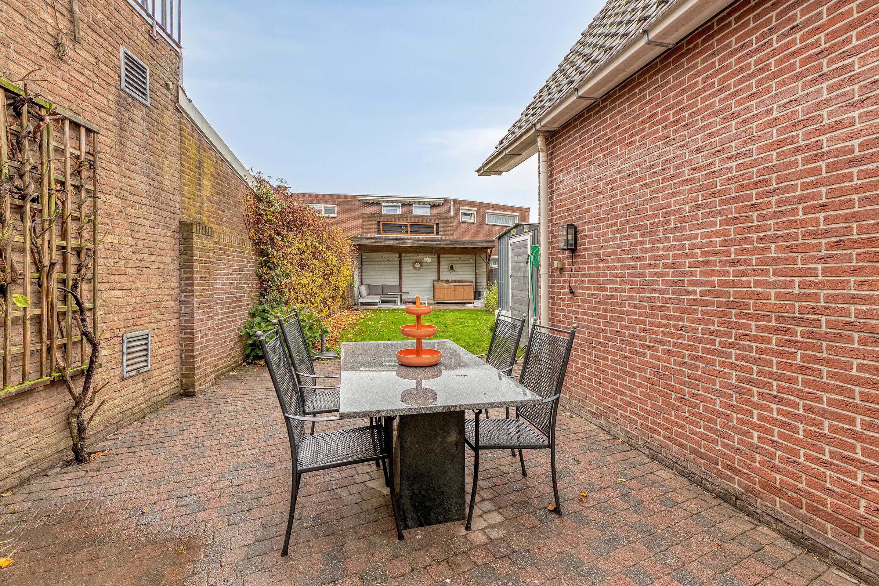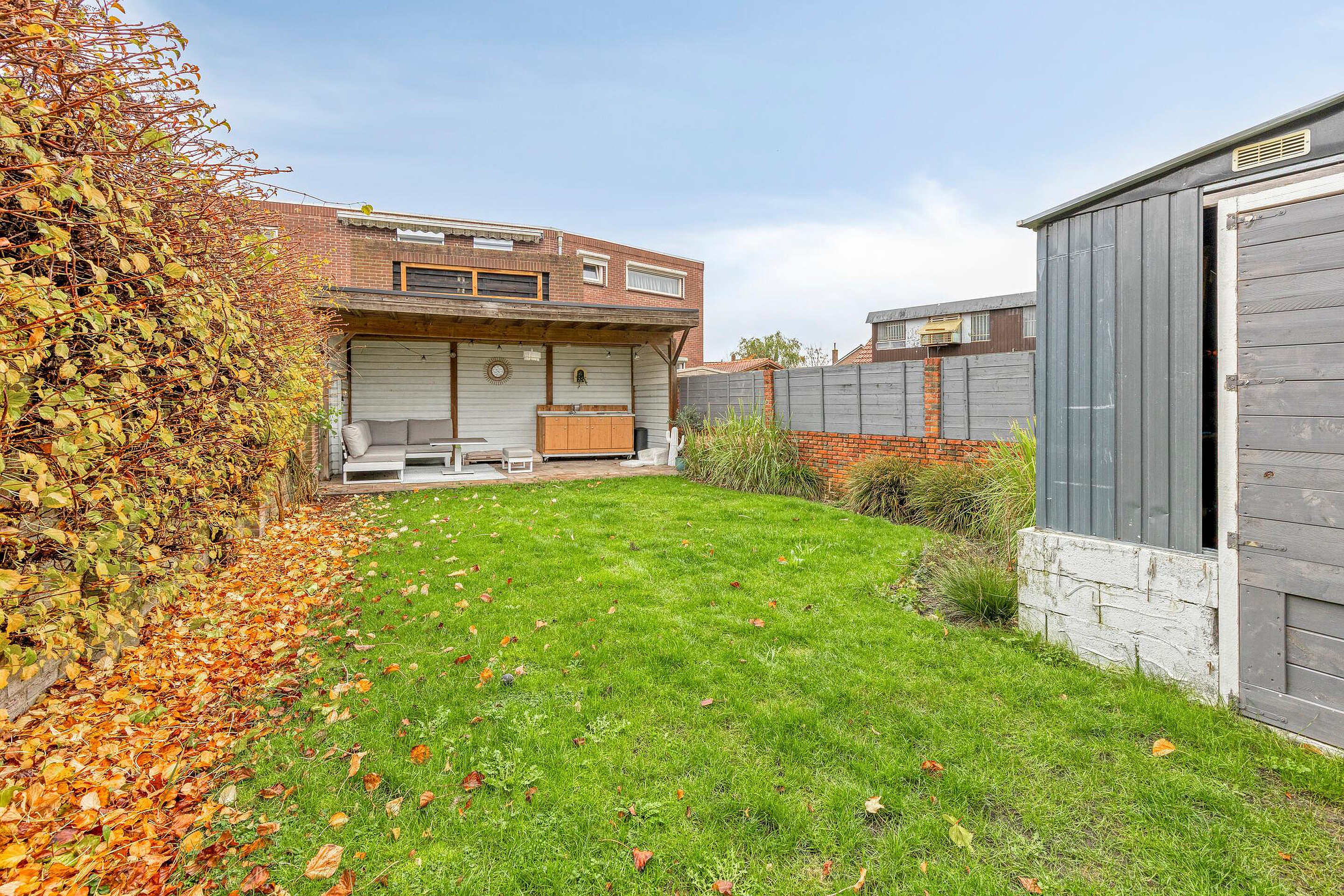 De serre biedt een leuk zicht op de achtertuin en is uitgerust met een grote schuifpui. Vanuit hier bereikt u het portaal met toegang tot het toilet, de volledig betegelde badkamer én de CV-ruimte (Vaillant combiketel 2020).