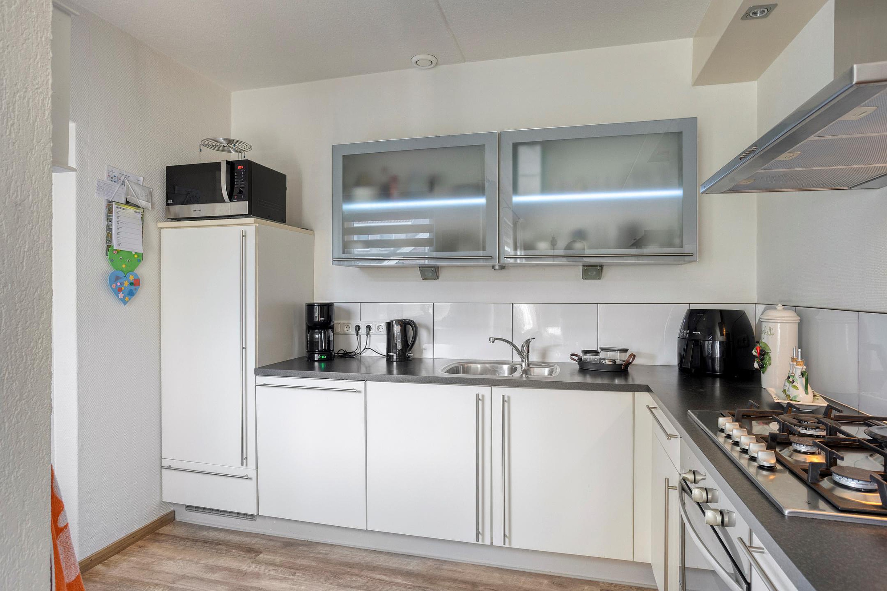- de woning beschikt over een lichte woonkamer en een half open keuken;