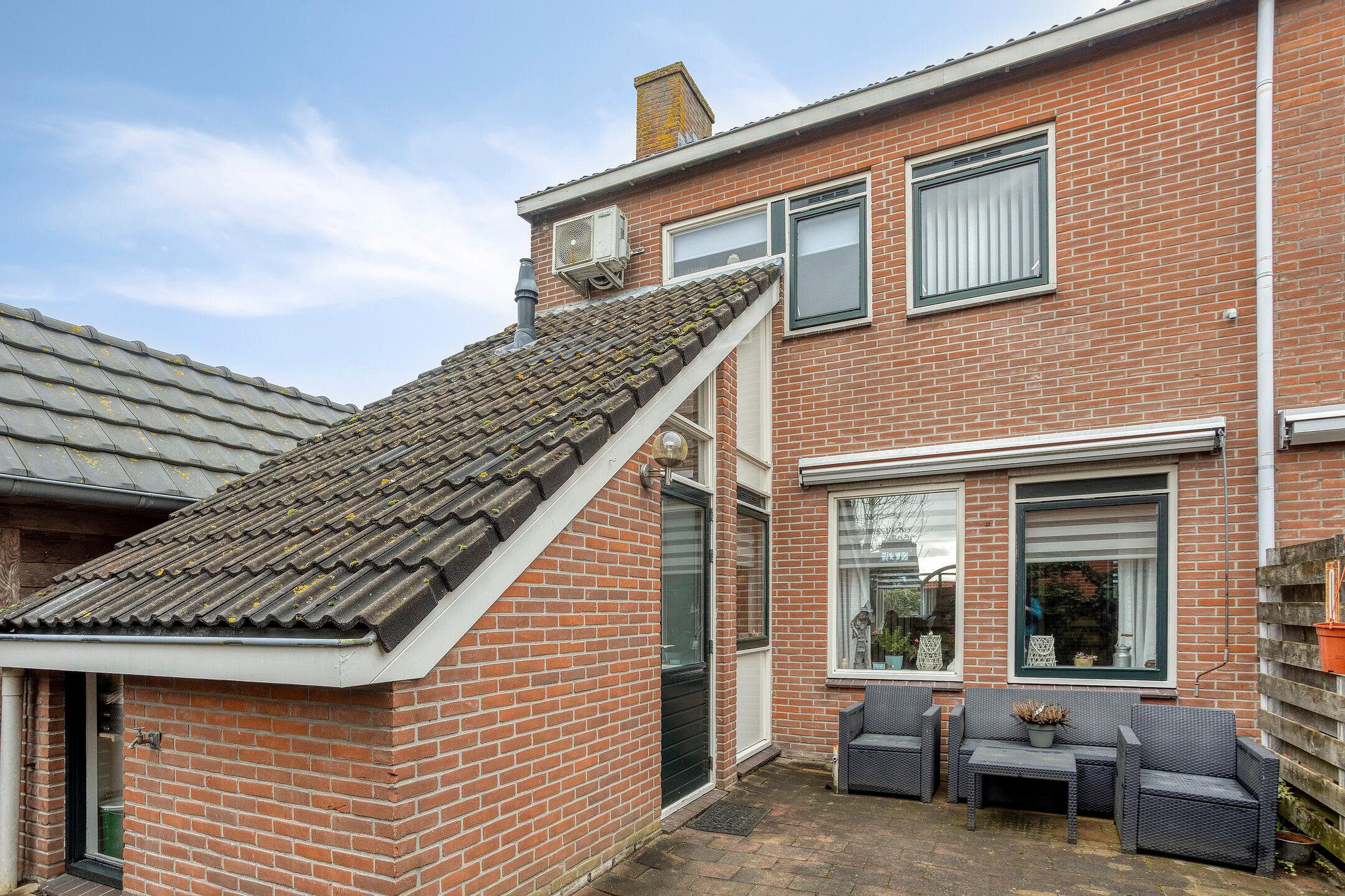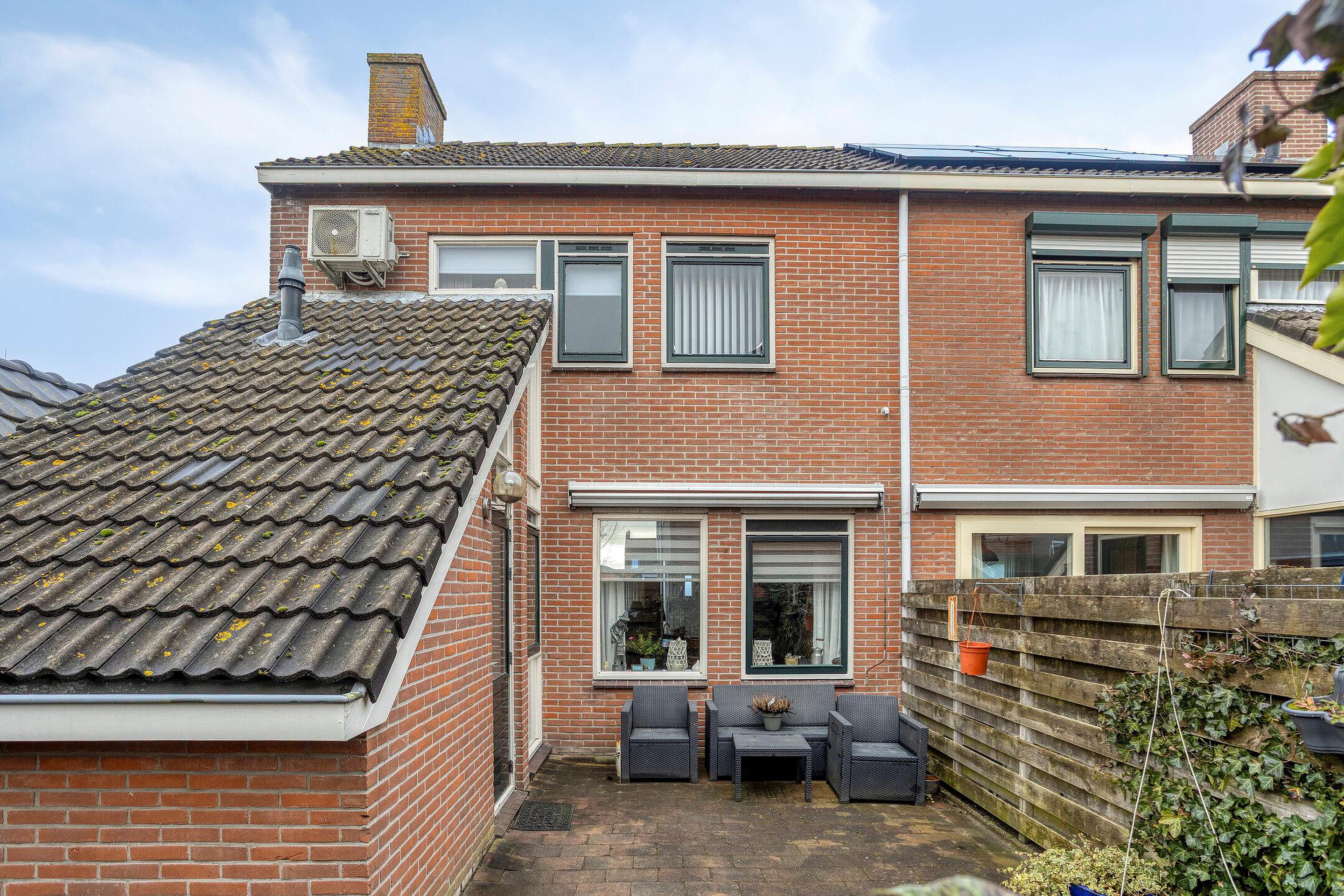 - de woning beschikt over een tuin met een achterom, terras en een berging met overkapping.