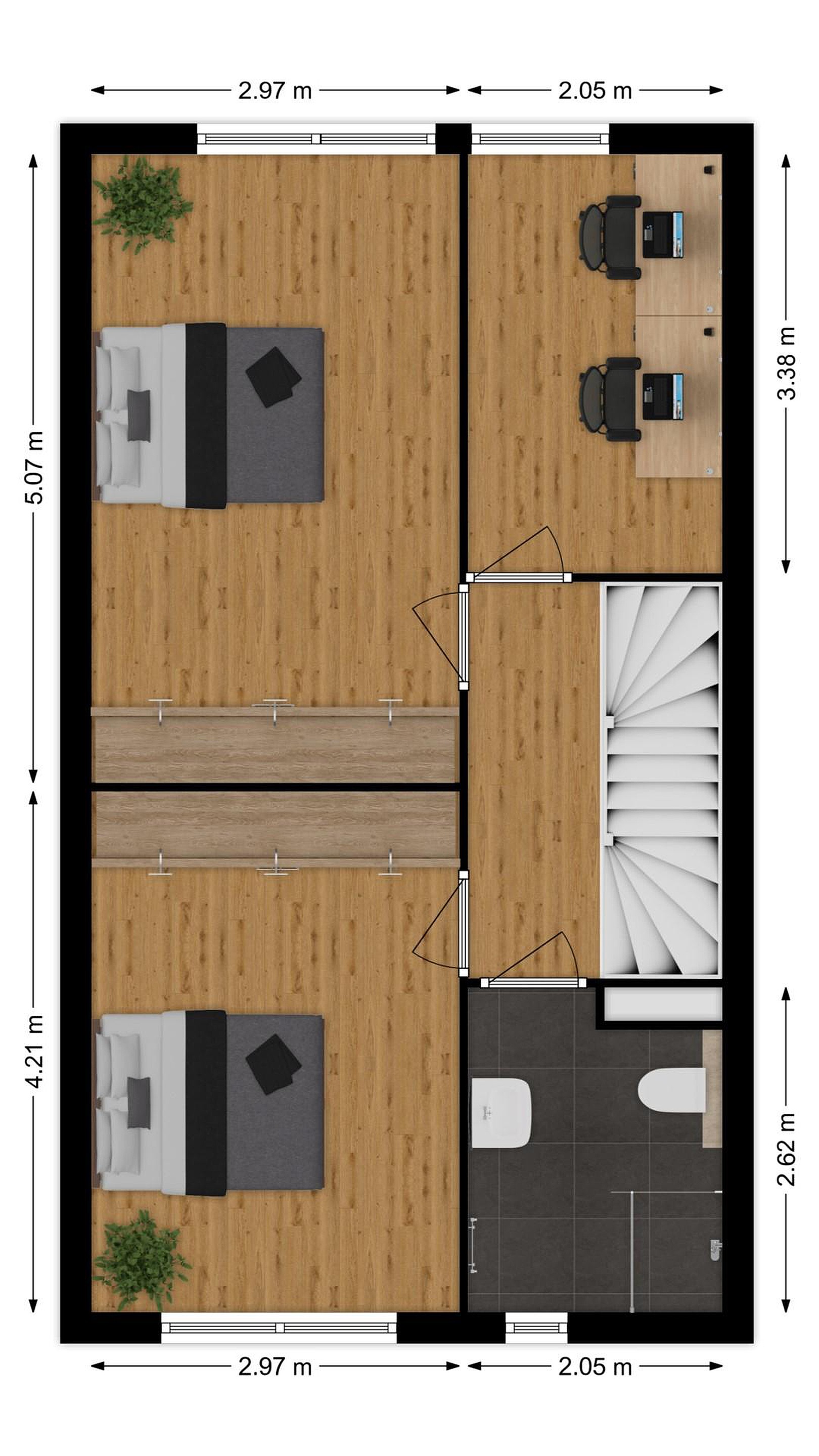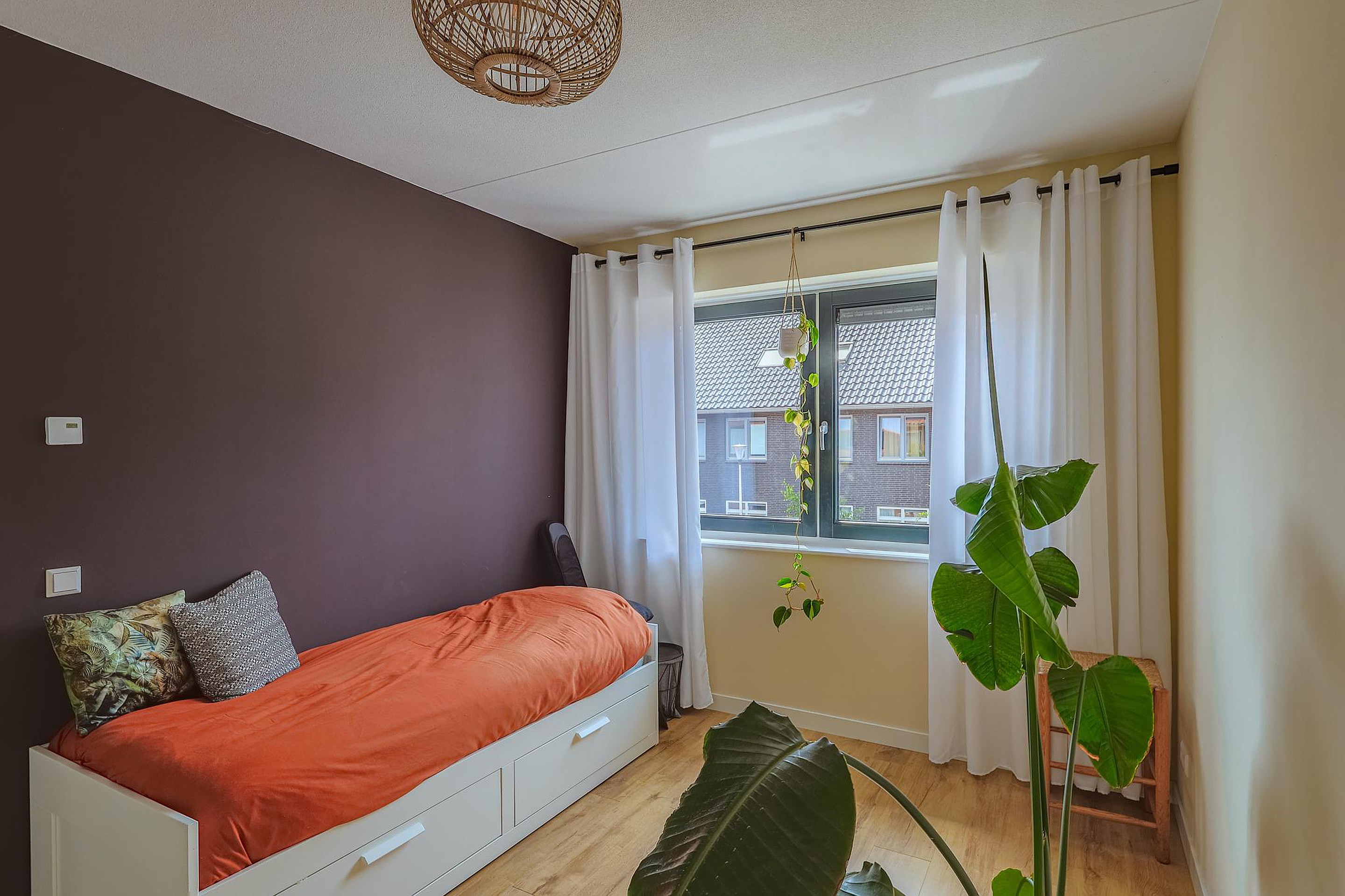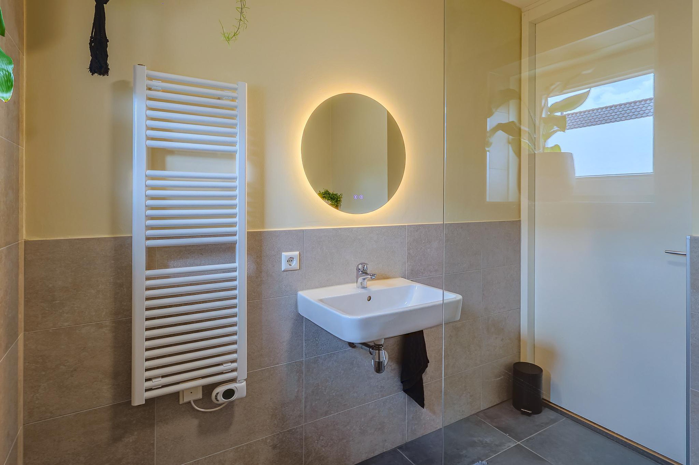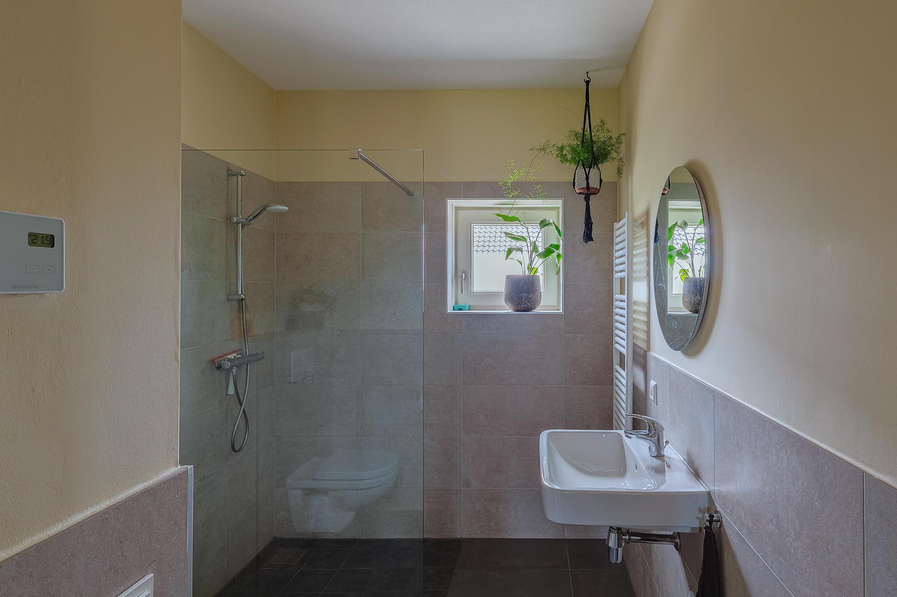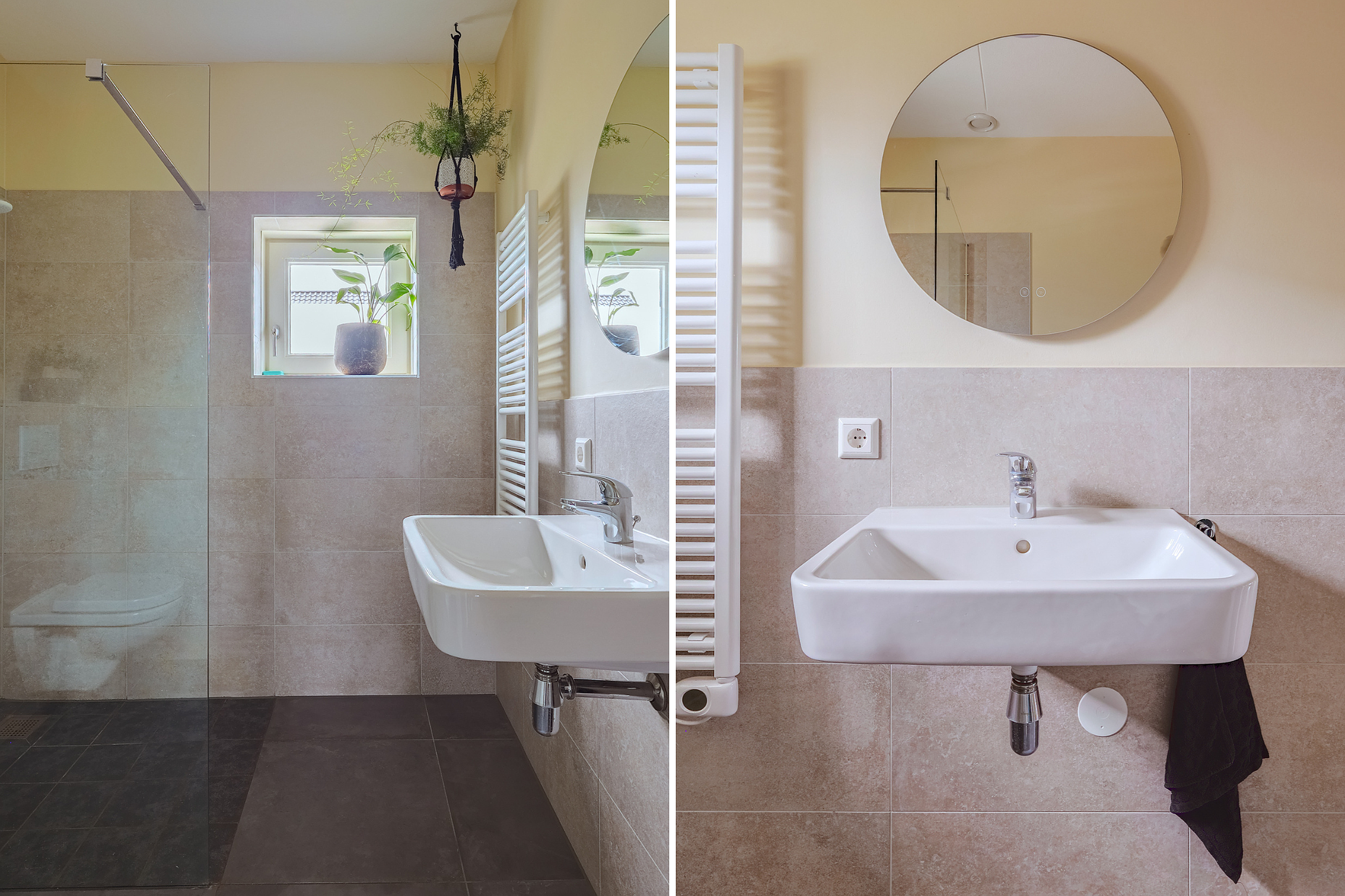 Eerste verdieping De overloop biedt toegang tot de slaapkamers, de badkamer en de trapopgang. De moderne badkamer is uitgerust met een tweede toilet, een wastafel, een designradiator en een comfortabele inloopdouche. De 1ste slaapkamer is gelegen aan de voorzijde van de woning. De 2de en 3de slaapkamers bevinden zich aan de achterzijde en bieden een schitterend uitzicht over het uitgestrekte polderlandschap. Alle slaapkamers zijn voorzien van praktische draai-/kiepramen.