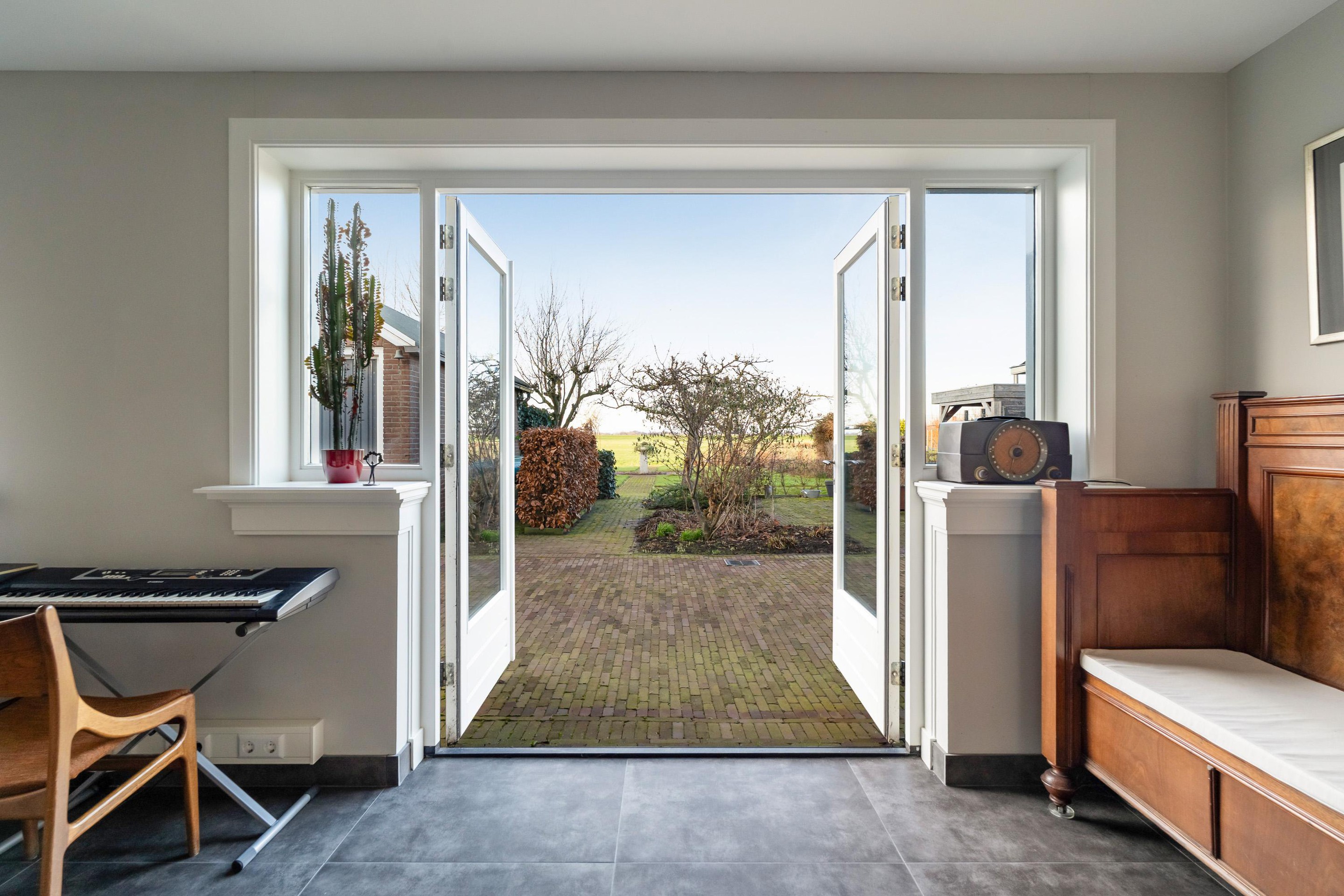 Aan de achterzijde geniet je van een prachtig vrij uitzicht over de uitgestrekte polders, waardoor je optimaal kunt genieten van de rust en ruimte van het prachtige landschap. De royale tuin rondom de woning biedt volop mogelijkheden voor ontspanning, spelen en buitenleven.