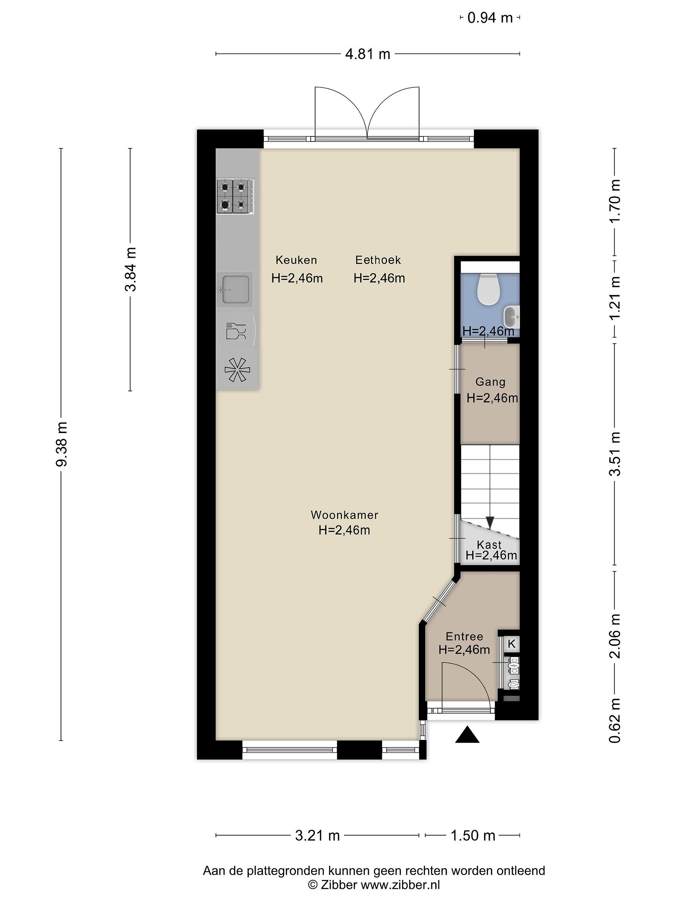- Massief houten vloer op de begane grond