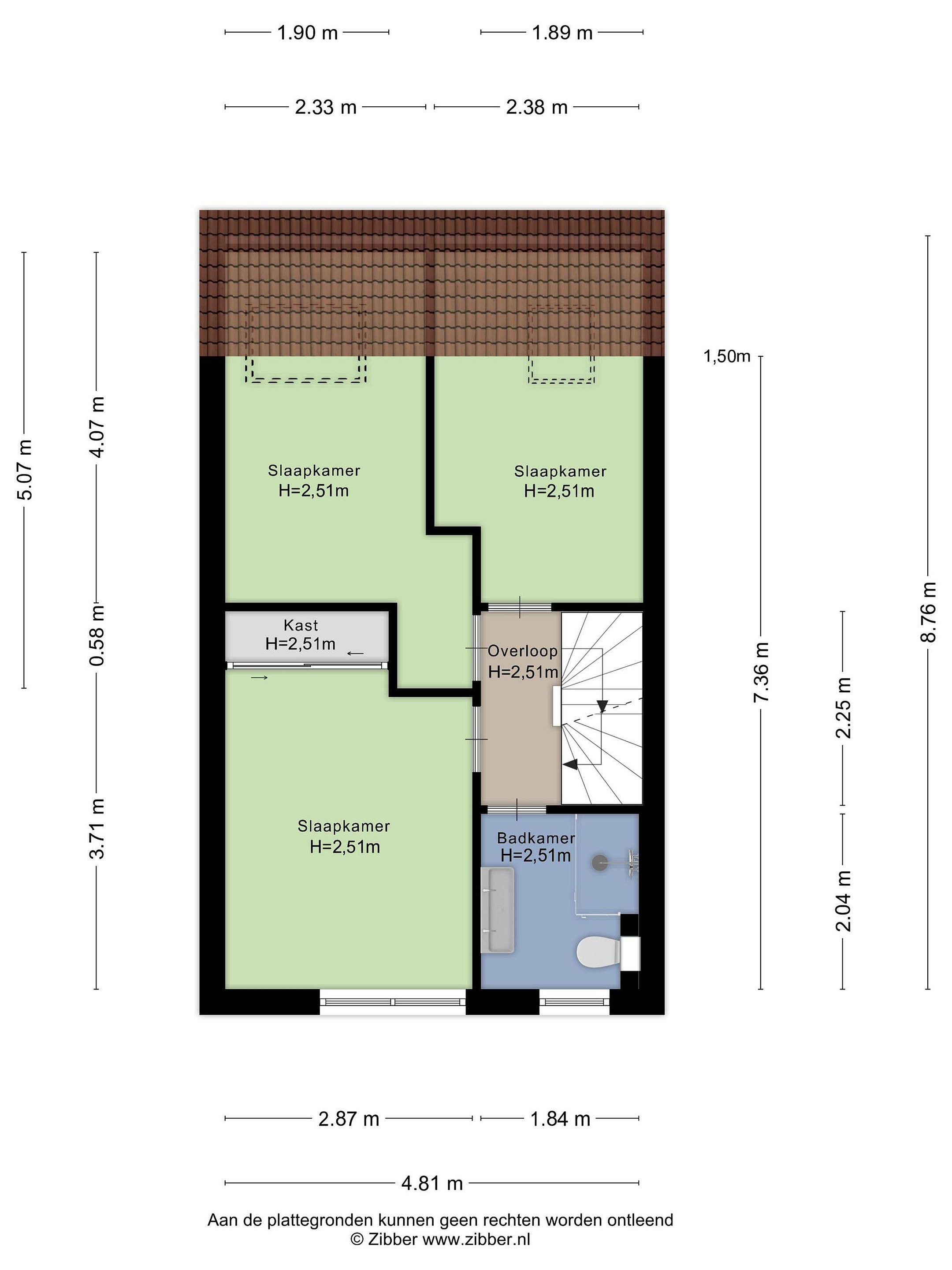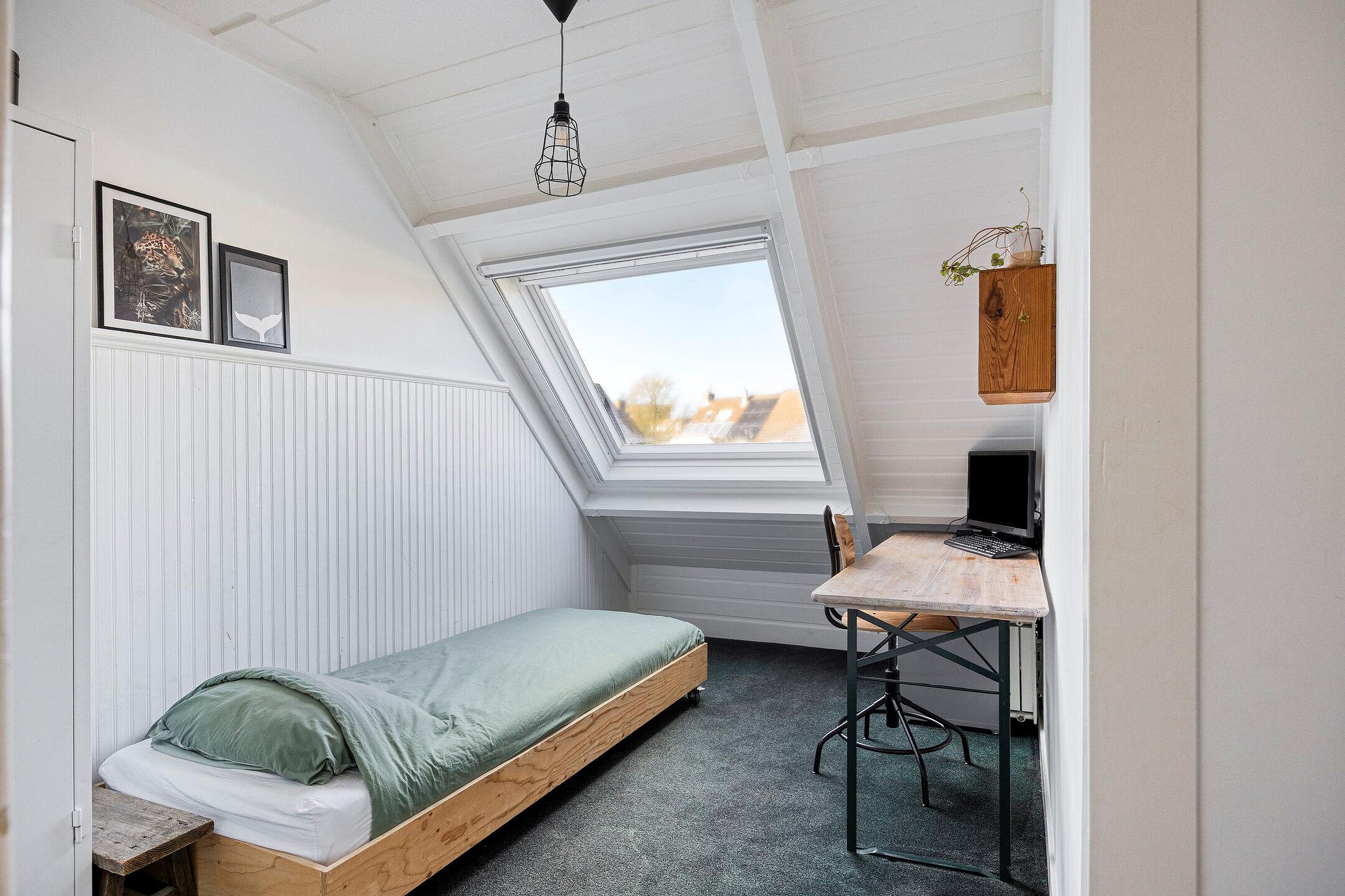 Tweede verdieping De zolderverdieping is in 2016 praktisch ingedeeld met een vaste trap, voorzolder met opstelplaats voor wasmachine en droger en een vierde slaapkamer (3,09 x 2,86). Daarnaast is er een berging of kleine werkruimte (1,44 x 2,86) aanwezig. Achter de knieschotten is voldoende bergruimte aanwezig. Dakramen zijn voorzien van horren en zonwering.