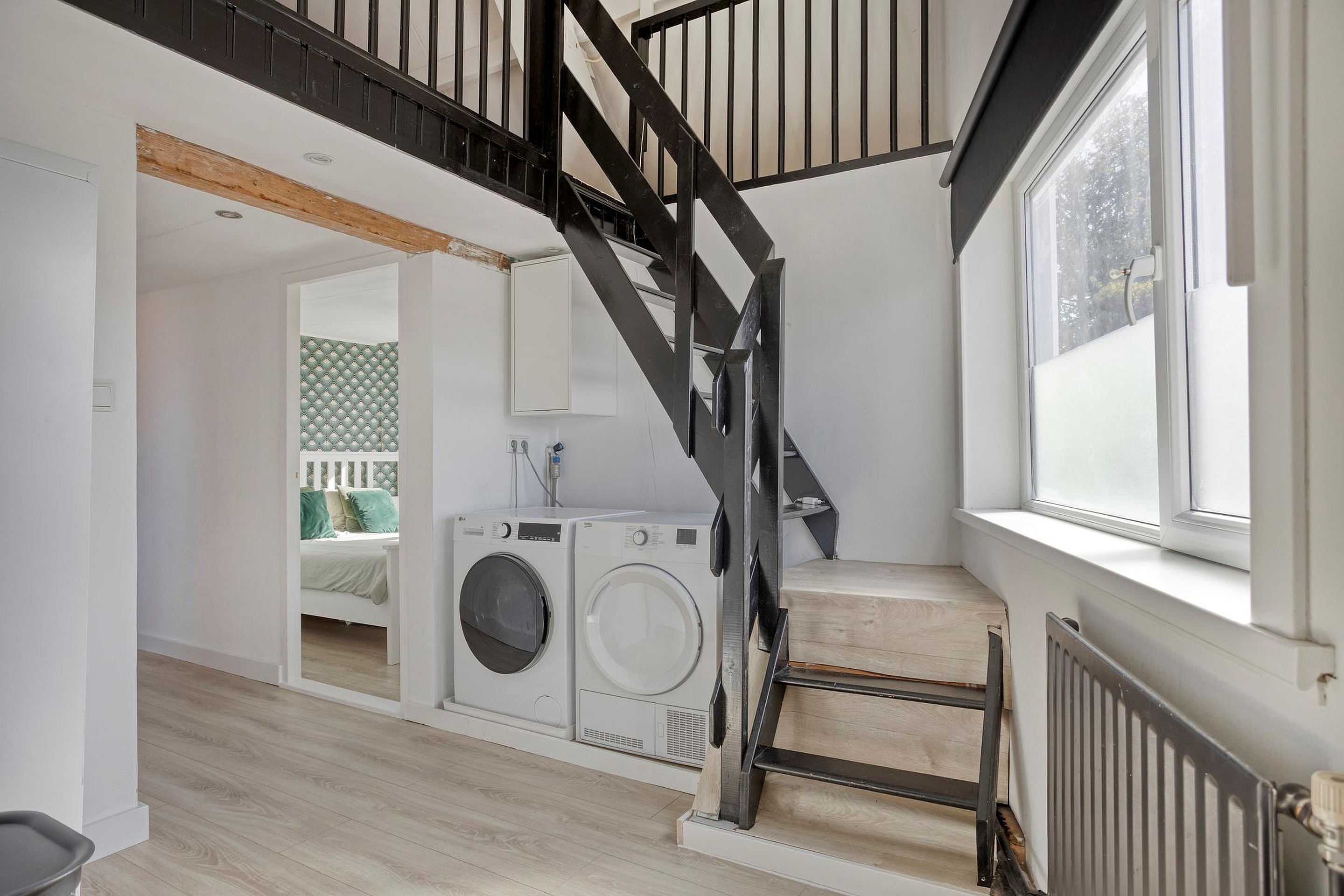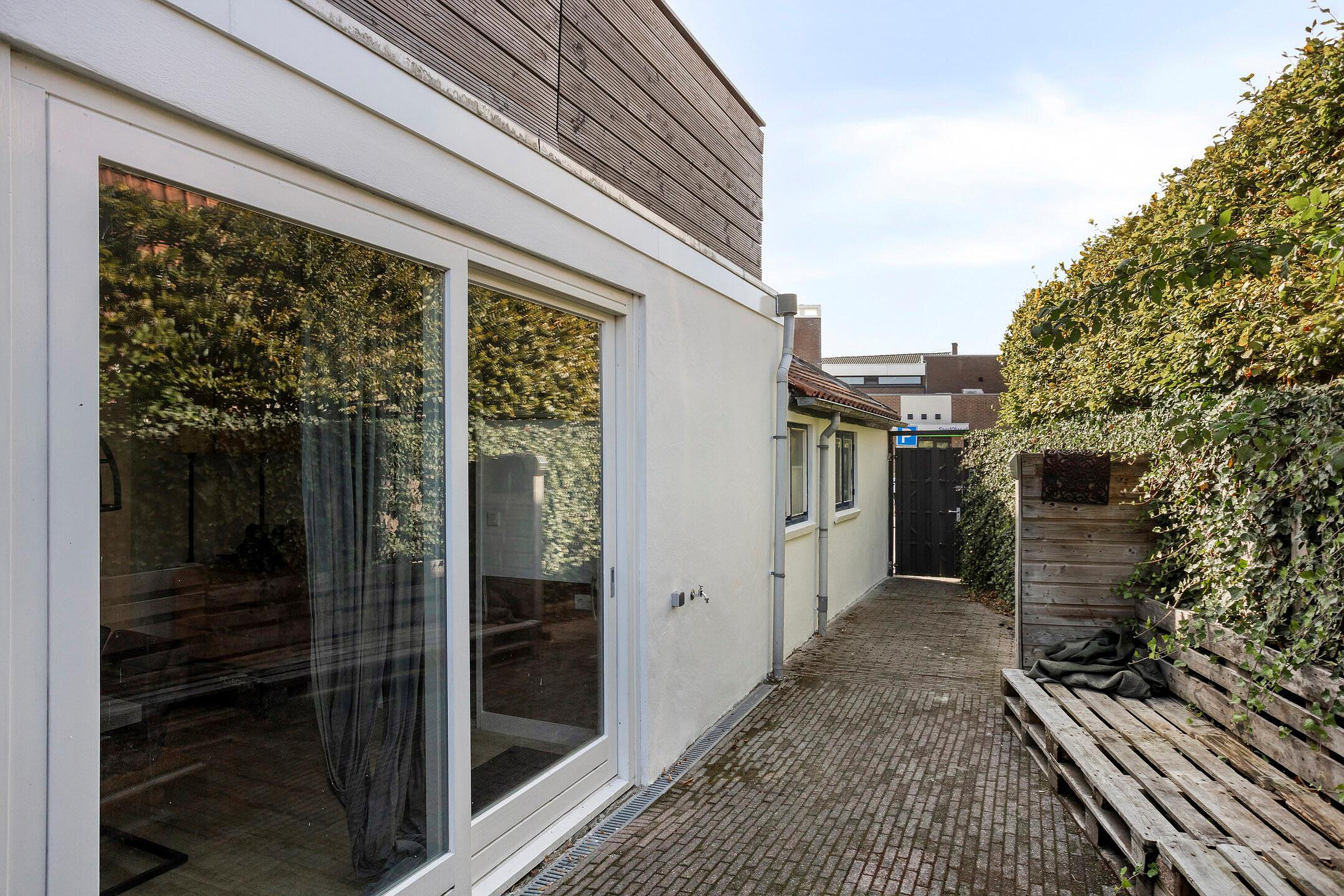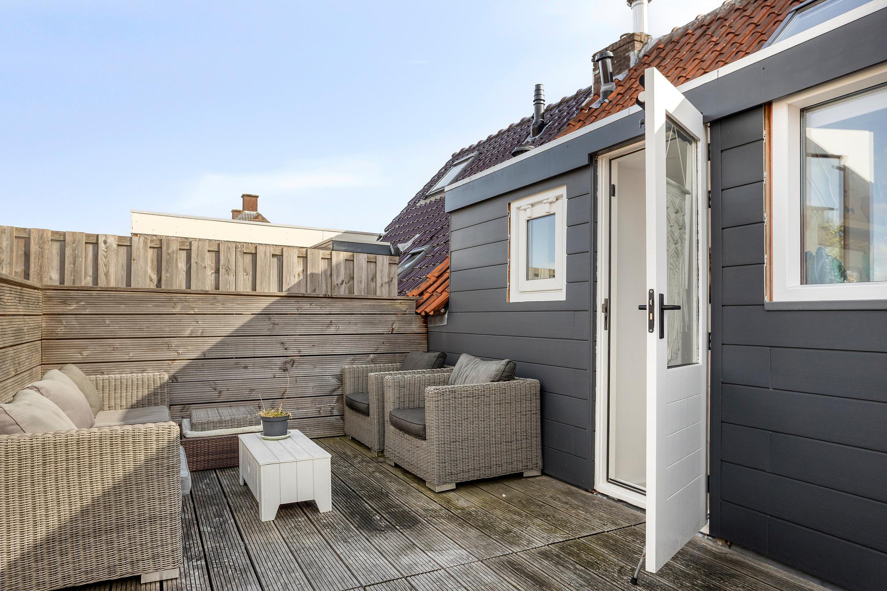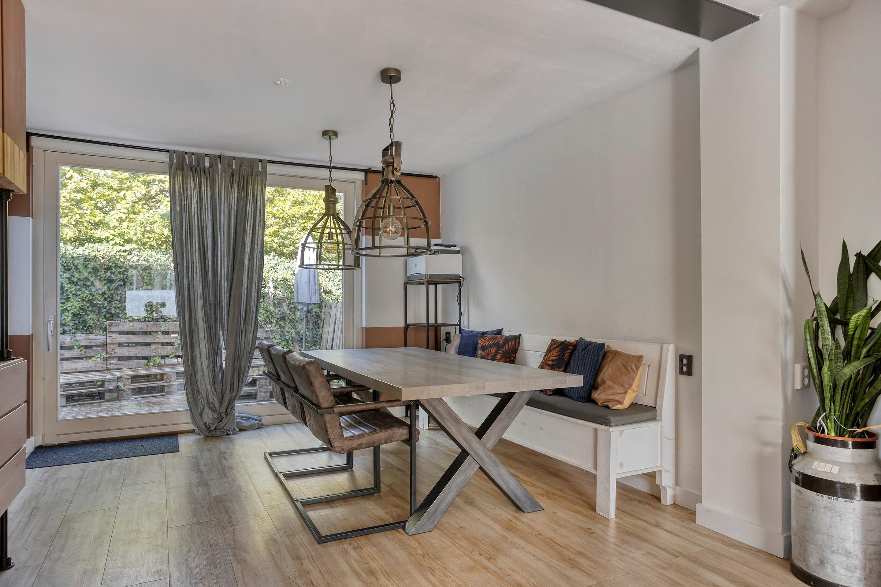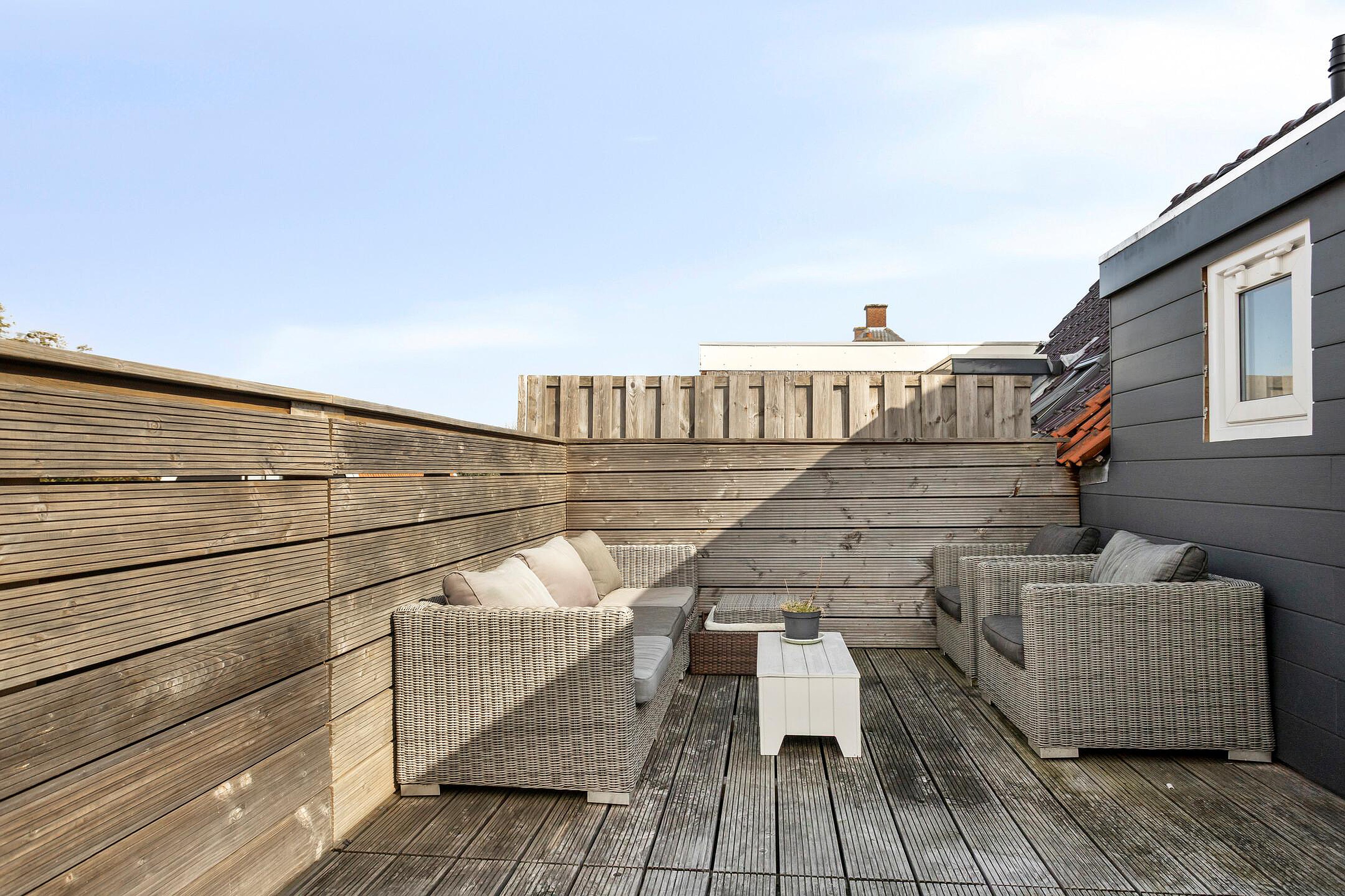 Naast het dakterras beschikt de woning over een compacte achtertuin die via de eetkamer bereikbaar is. Het is een praktische buitenruimte die zich uitstekend leent voor een eettafel of loungehoek. Samen met het dakterras heb je de luxe van twee plekken waar je buiten kunt ontspannen.