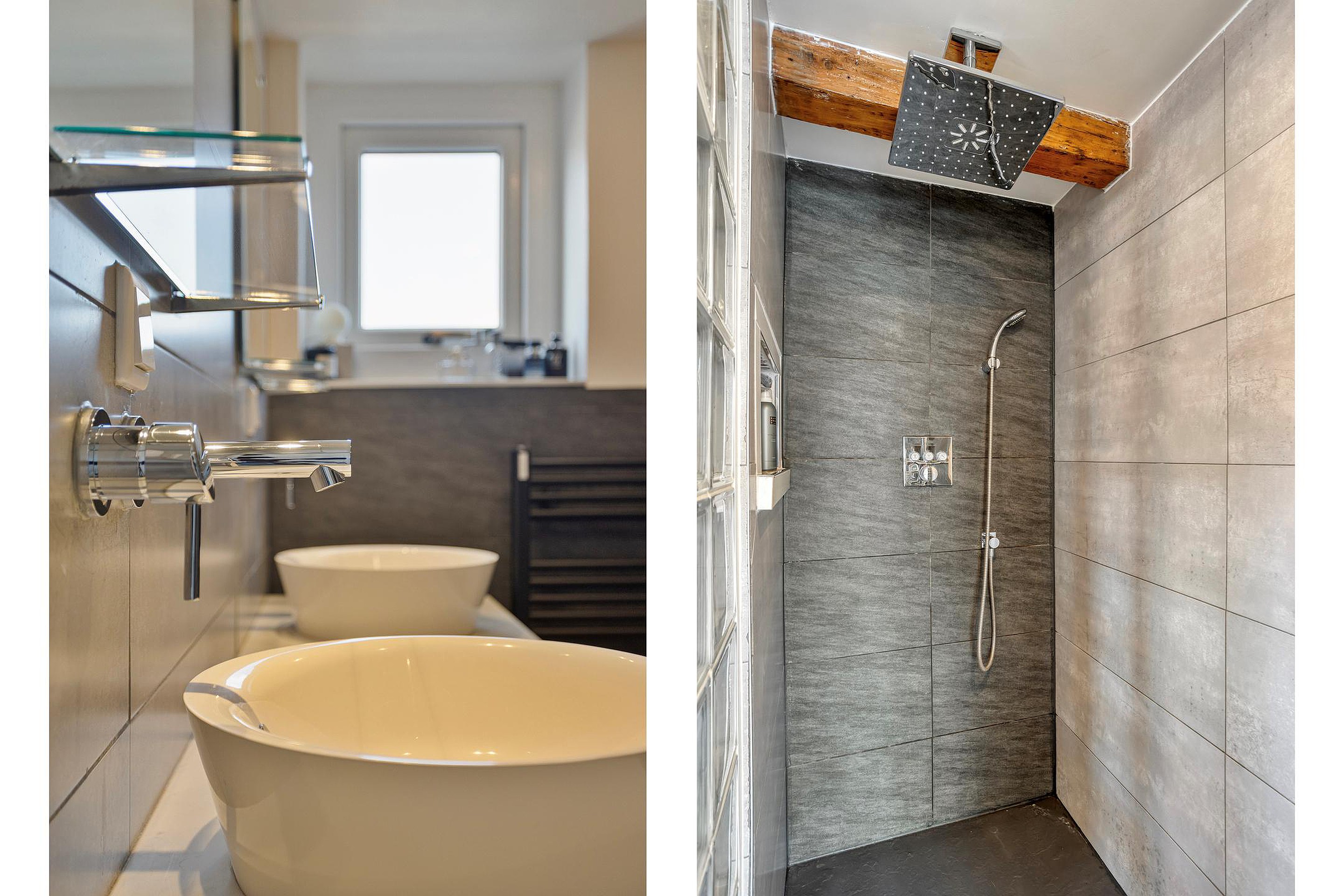 De moderne badkamer is een heerlijke plek om te ontspannen. Met een inloopdouche, ligbad, dubbele wastafel en een toilet is hier aan alles gedacht. Aan de achterzijde ligt het royale dakterras van circa 20 m2. Dankzij de ligging op het noorden en de omliggende bebouwing geniet je hier van volledige privacy – een zeldzame kwaliteit in het centrum.