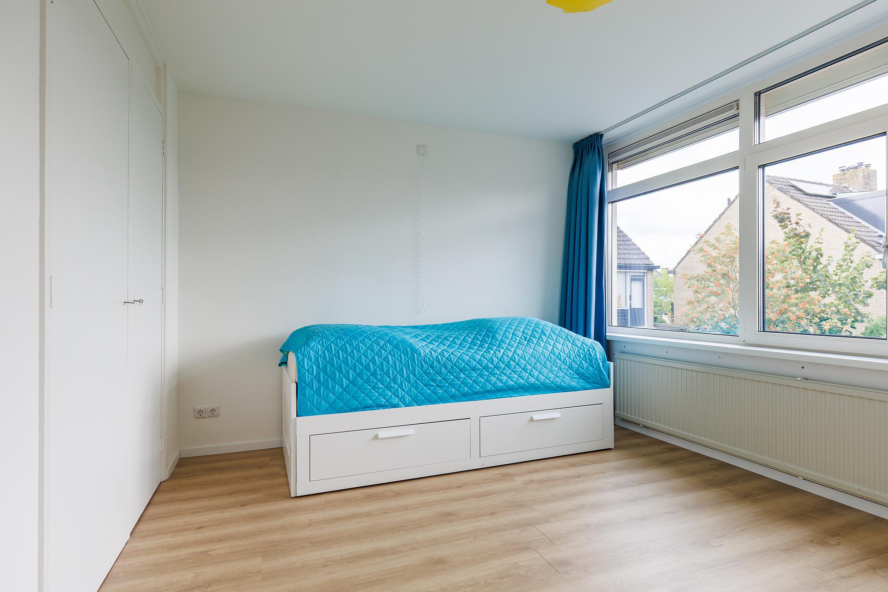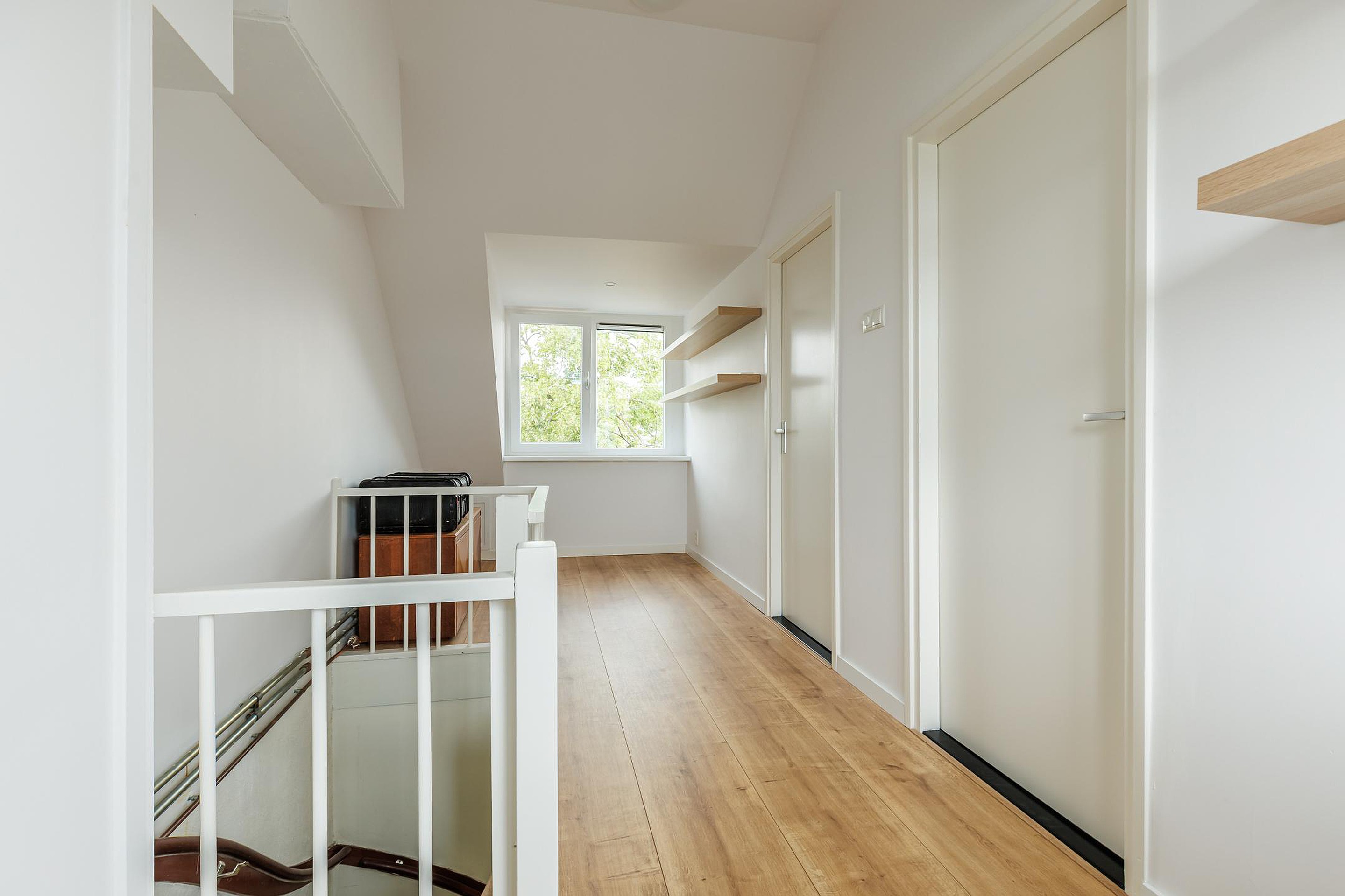 Op deze verdieping bevinden zich drie slaapkamers en de badkamer. De hoofdslaapkamer ligt aan de voorzijde van de woning en heeft, net als de tweede slaapkamer aan de voorzijde, toegang tot het balkon. De derde slaapkamer is aan de achterzijde gelegen. De badkamer is in 2019 vernieuwd en modern uitgevoerd met een ruime inloopdouche, wastafelmeubel en tweede toilet.