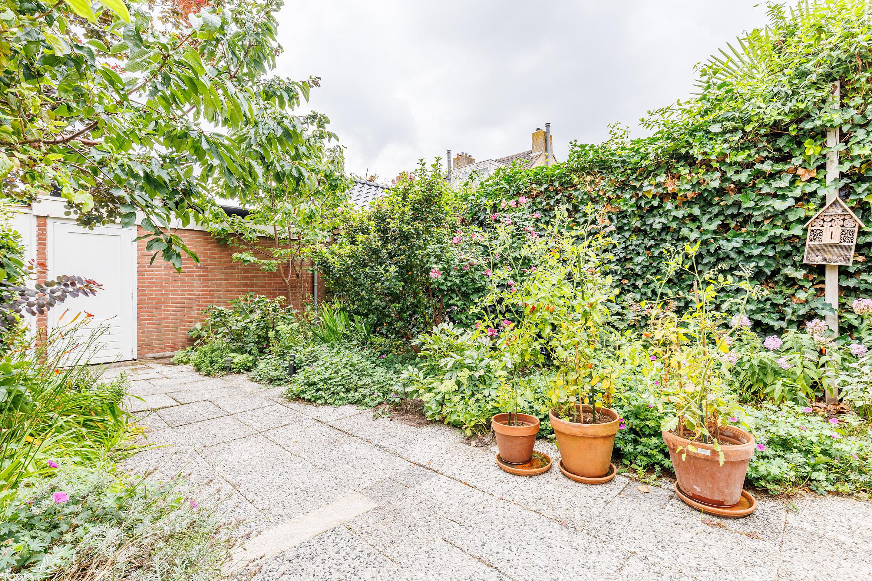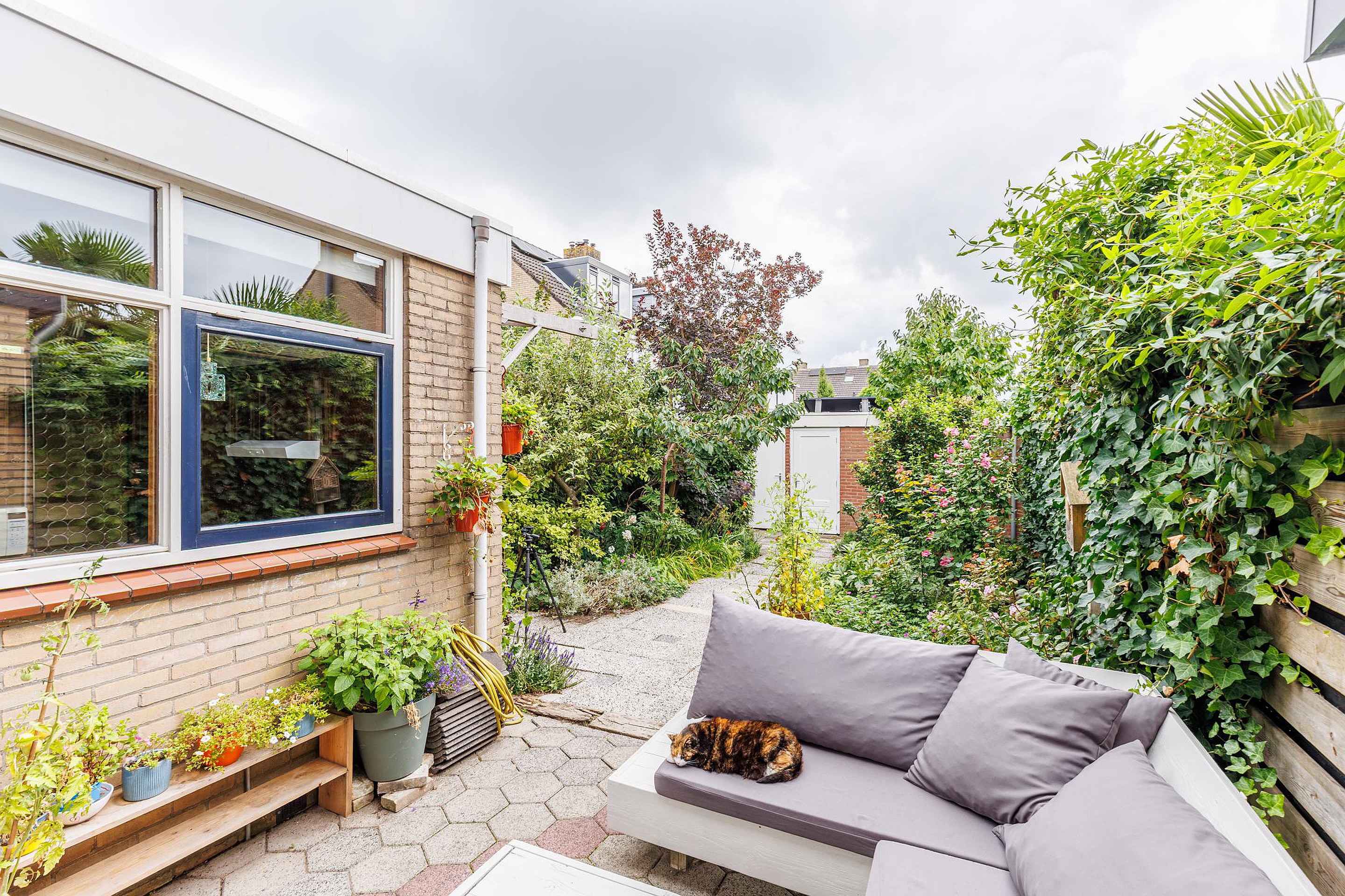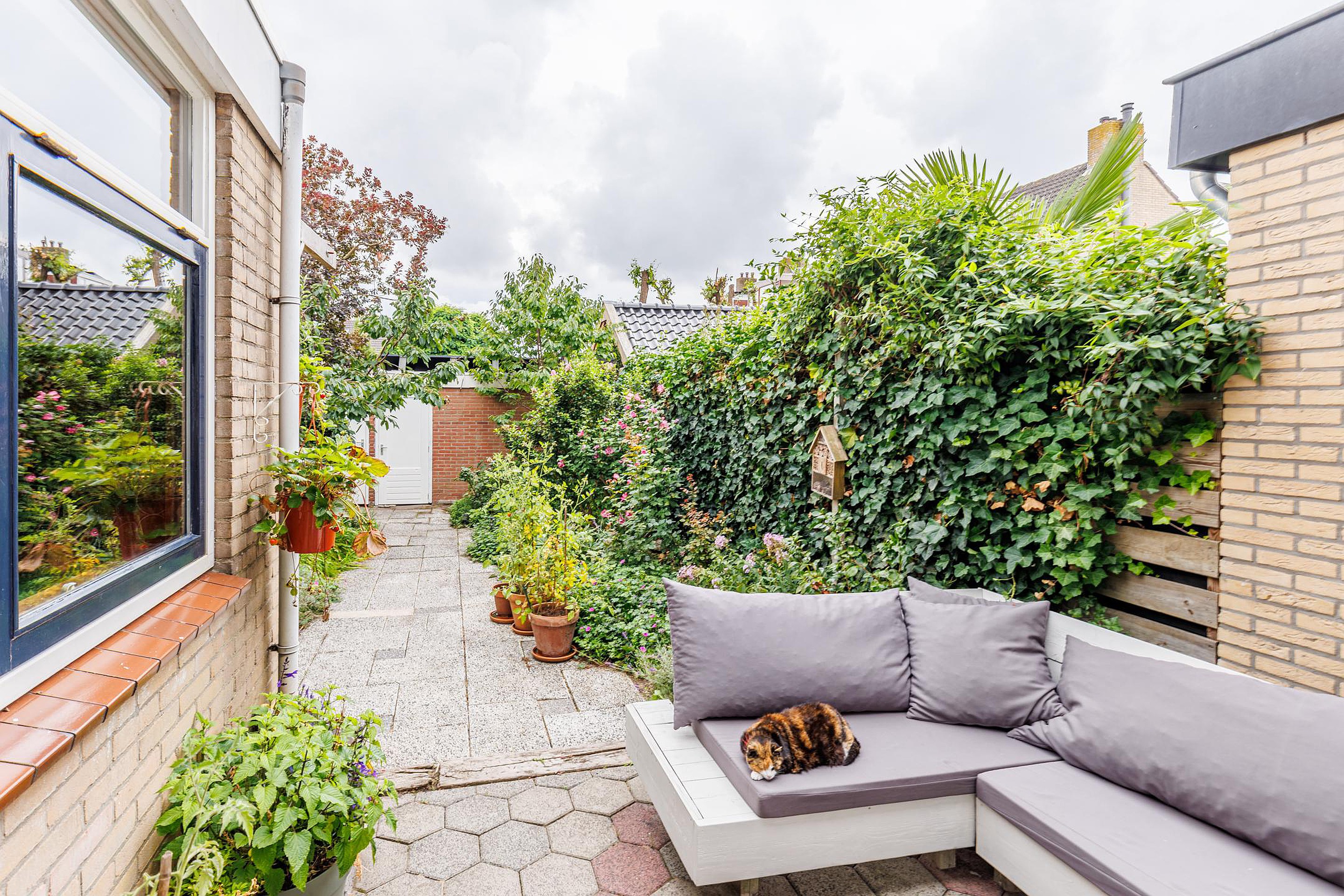 De achtertuin is gelegen op het zuidoosten en biedt daarmee volop zon gedurende de dag. Achterin de tuin staat een vrijstaande stenen berging, ideaal voor het stallen van fietsen of het opbergen van tuinmateriaal. Via de achterom is de tuin ook goed bereikbaar. Aan de voorzijde ligt een bescheiden voortuin met zicht op een rustige straat.