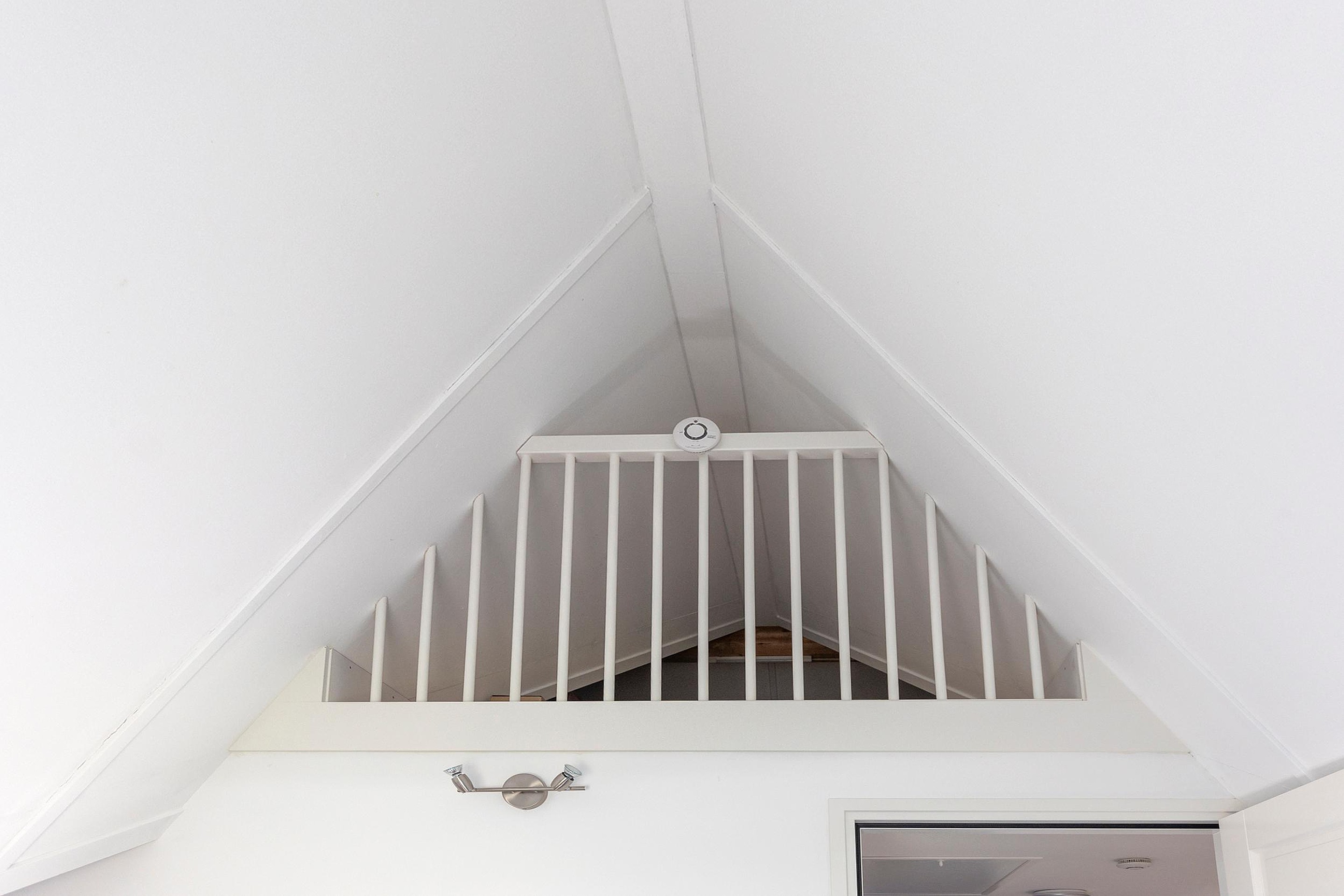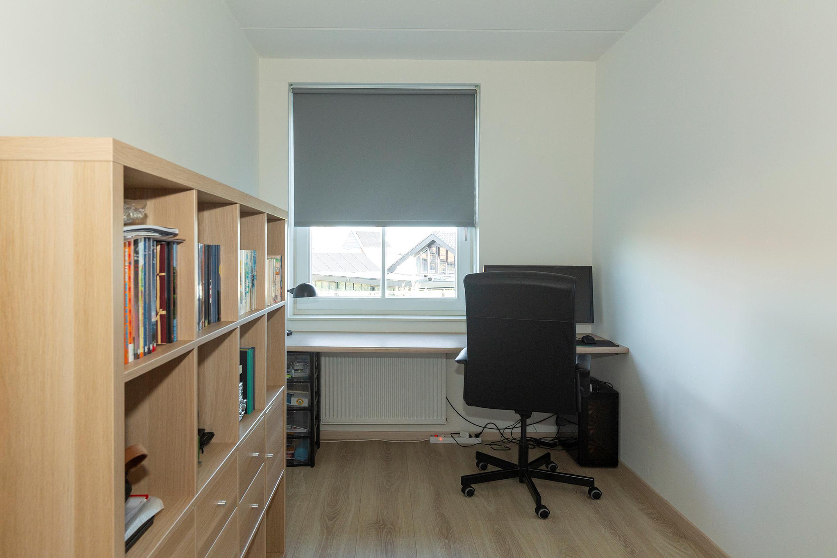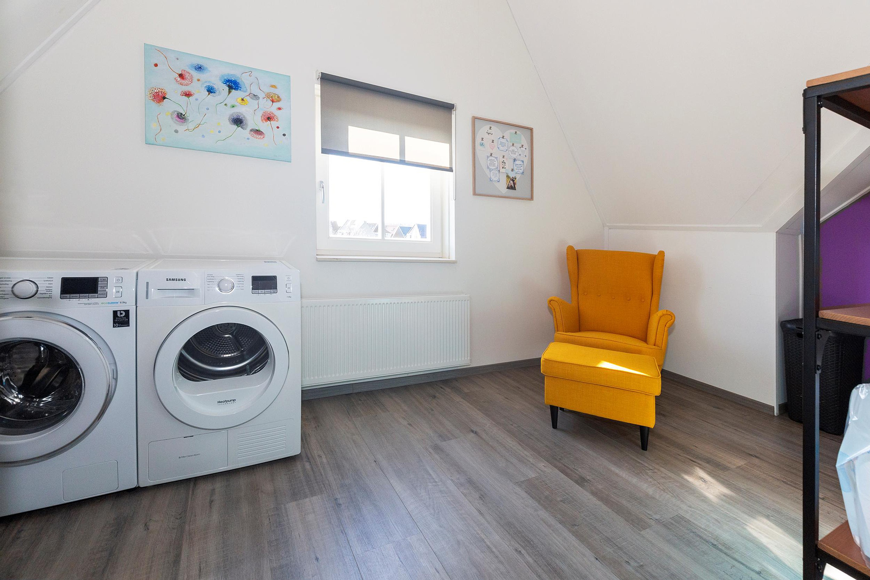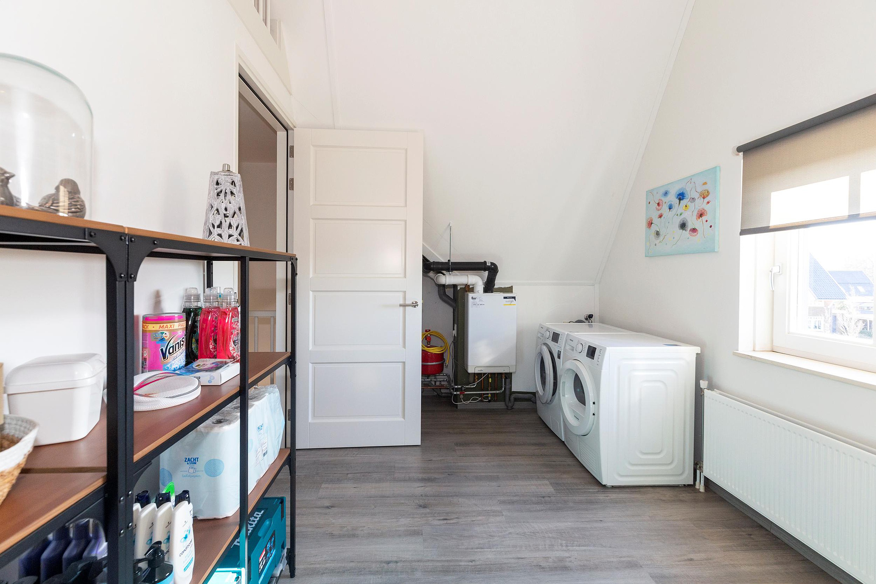 Ook op de tweede verdieping bevinden zich nog eens drie (slaap)kamers, waarvan een op dit moment fungeert als kastruimte en de ander is ingericht als wasruimte. De eigenaar heeft hier slim gebruik gemaakt van de hoogte in de nok, waardoor een vide is ontstaan die op dit moment bereikbaar is via de vlizotrap op de overloop. De slaapkamer op deze verdieping is royaal en biedt meer dan voldoende ruimte voor een tweepersoonsbed, kledingkast en eventueel een bureau.