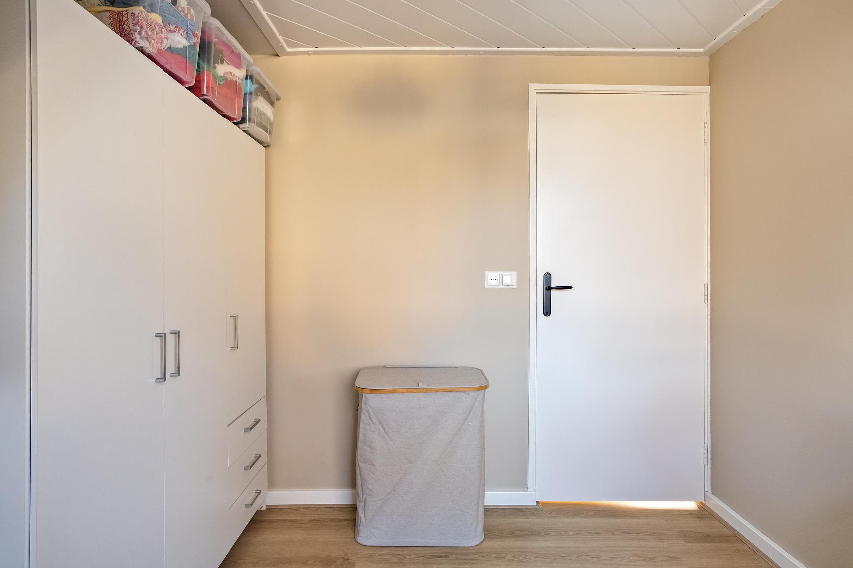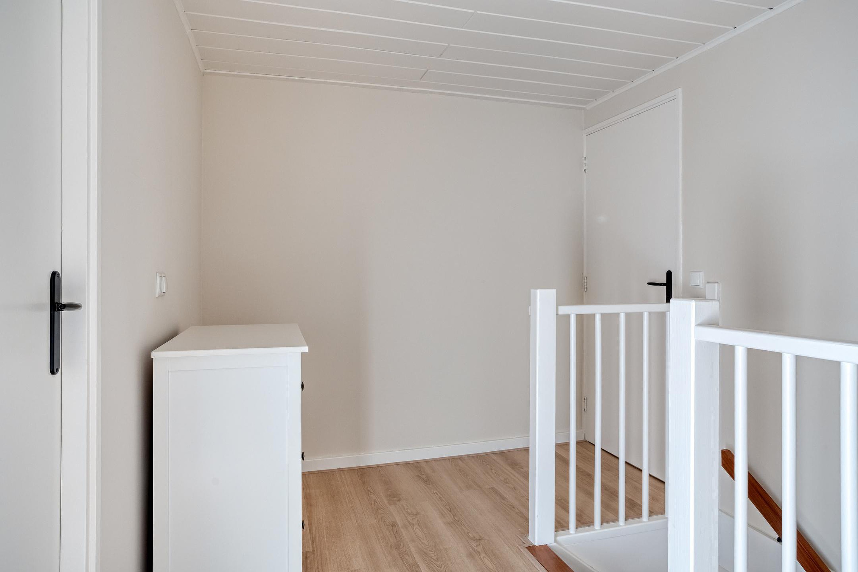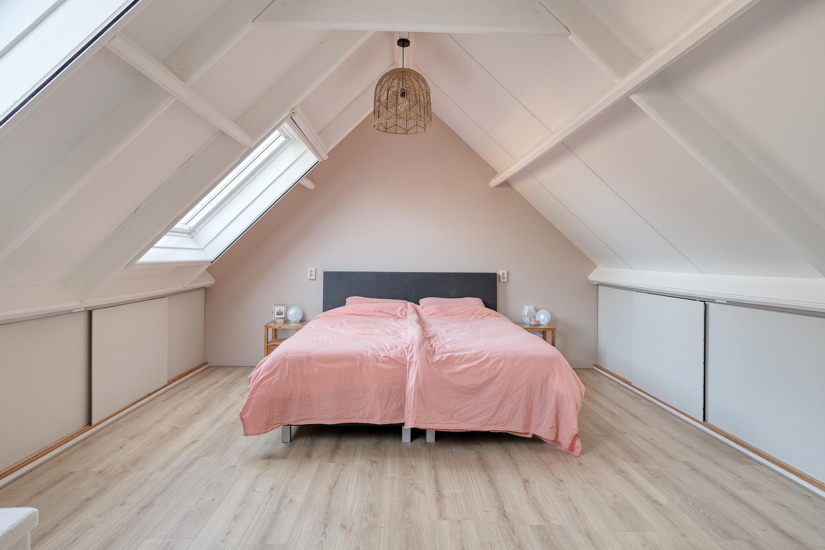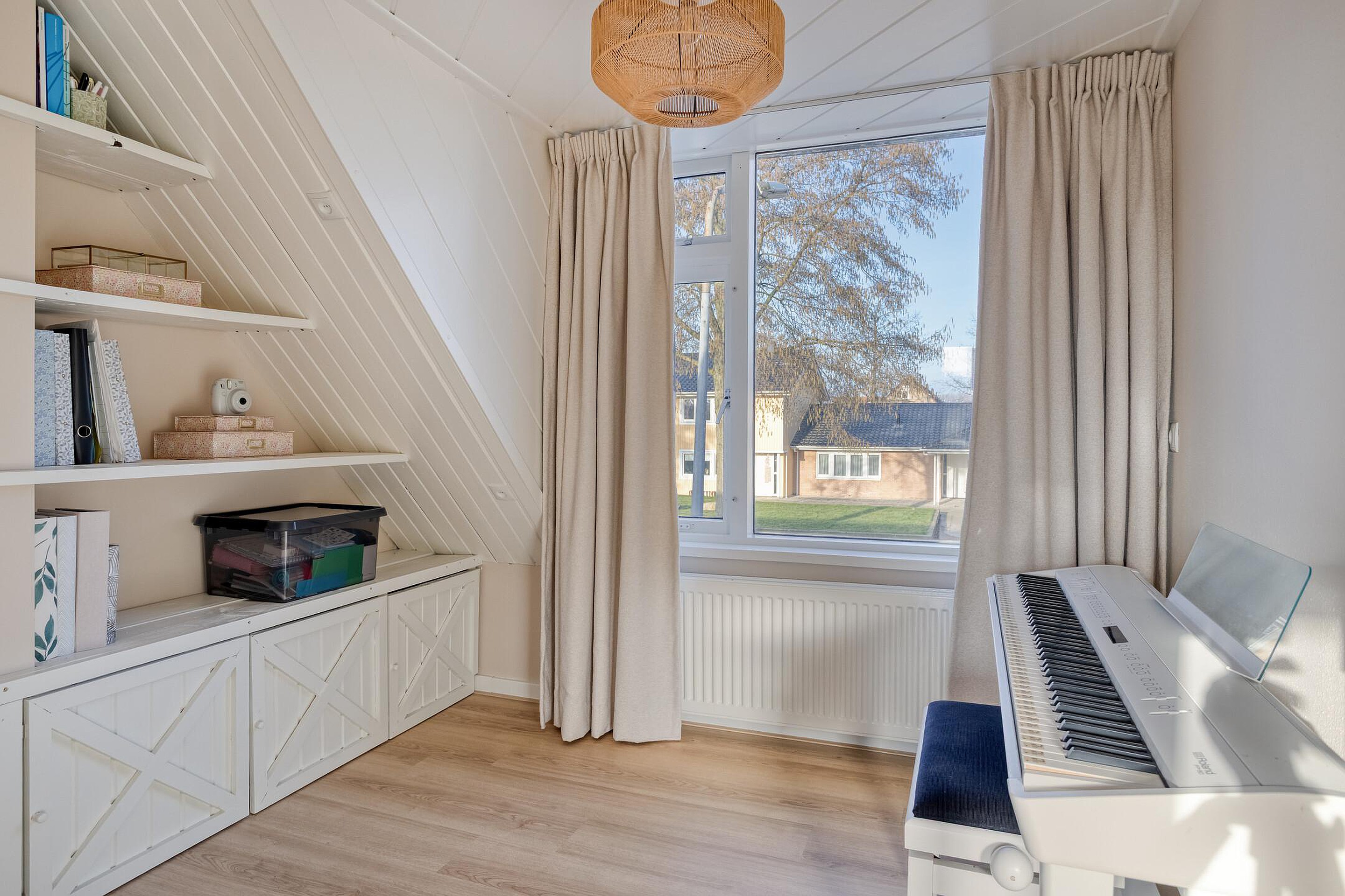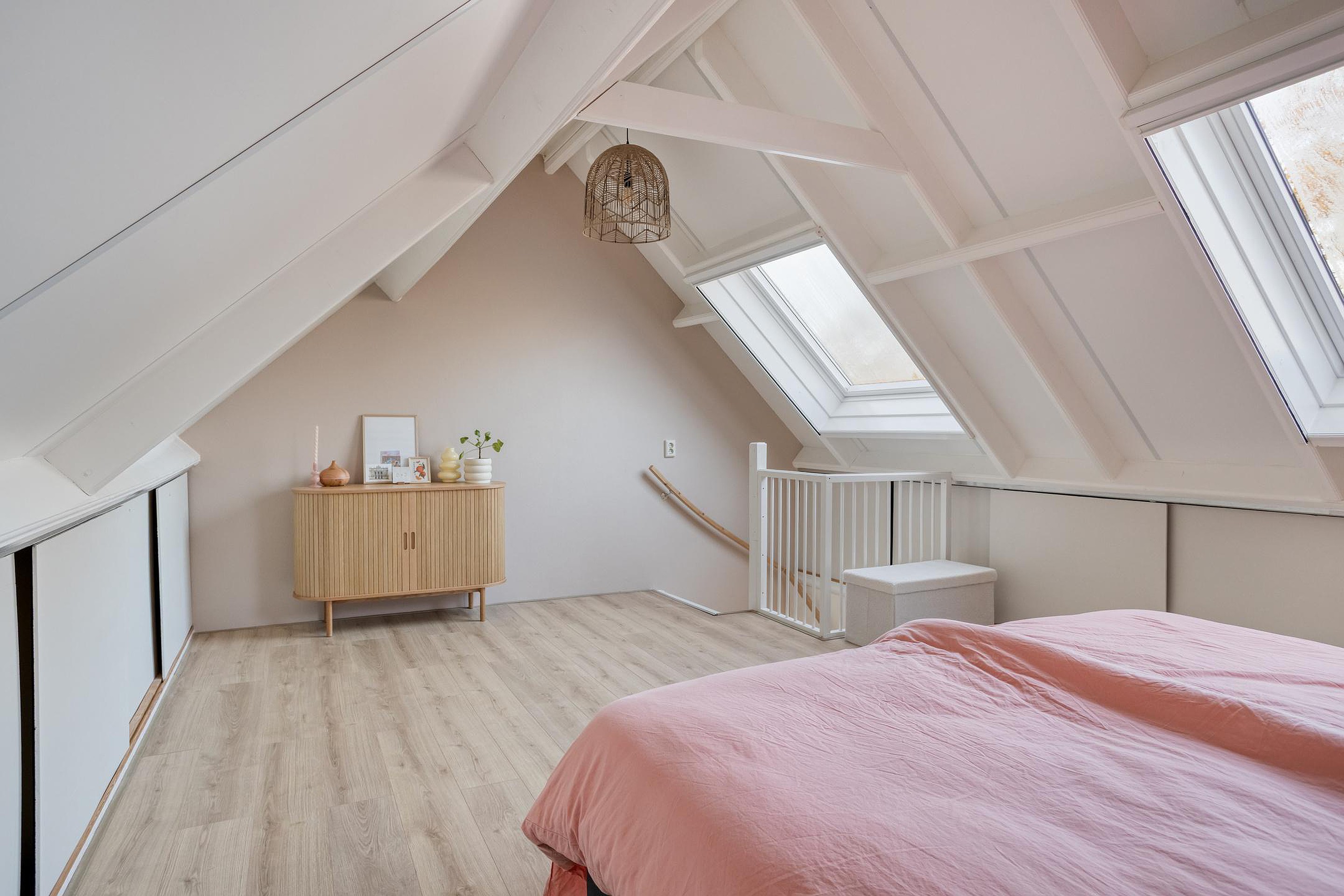 Via een vaste trap is de tweede verdieping bereikbaar. Hier bevindt zich de vierde slaapkamer, die zich uitstekend leent als slaap-, werk- of hobbykamer. Dankzij de slimme indeling is ook hier voldoende bergruimte aanwezig, onder andere achter de knieschotten.