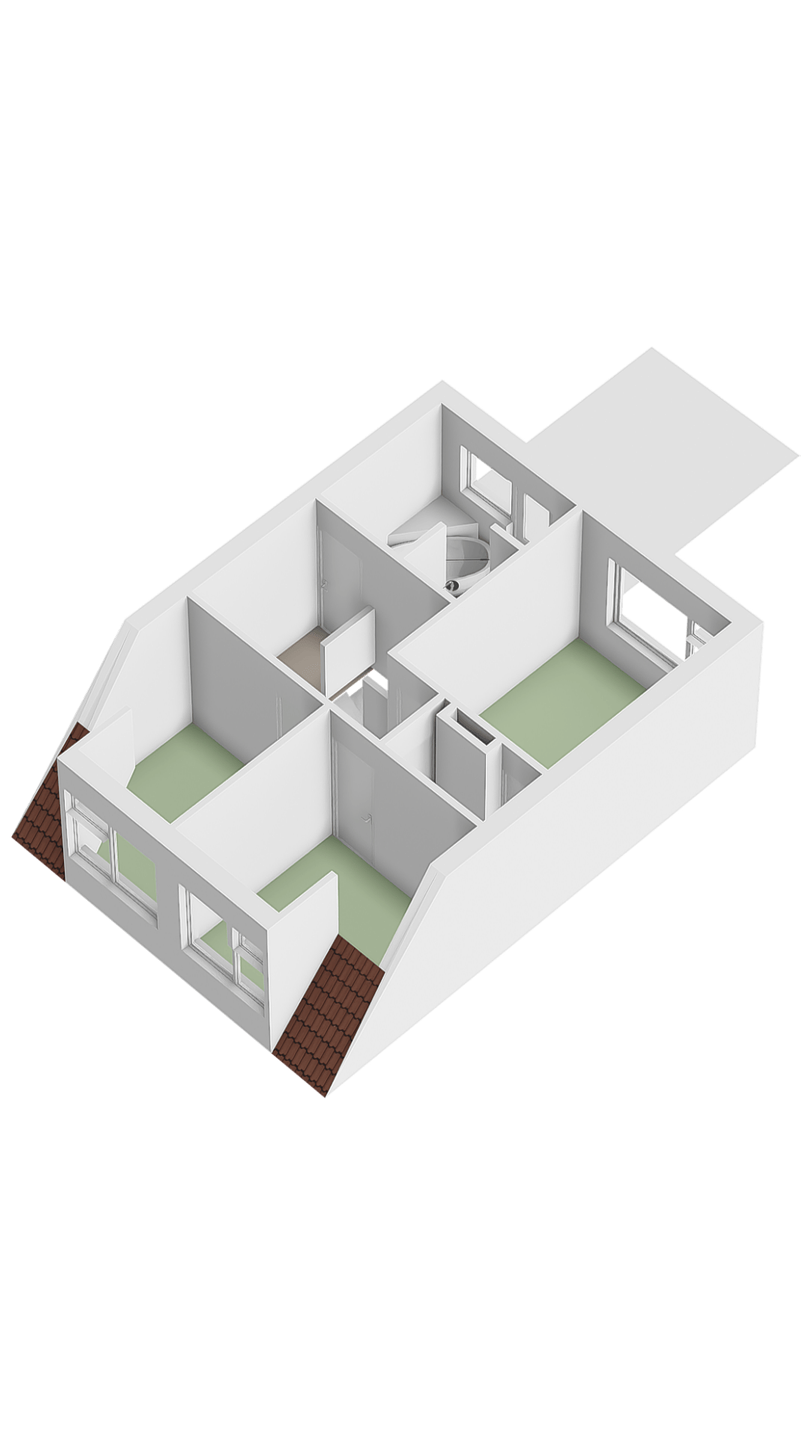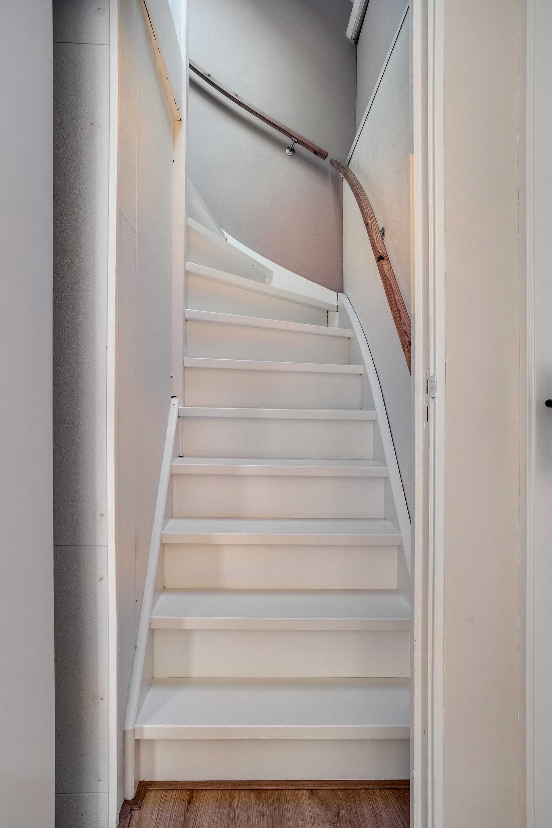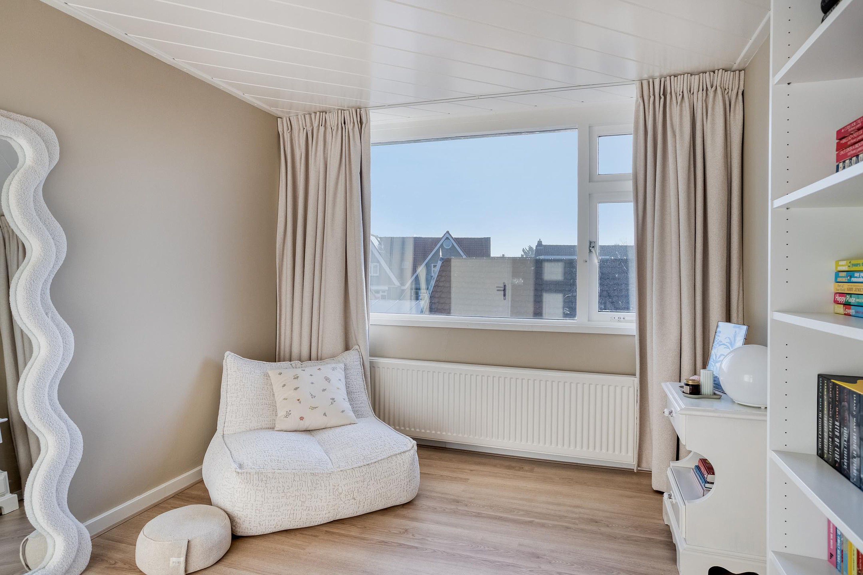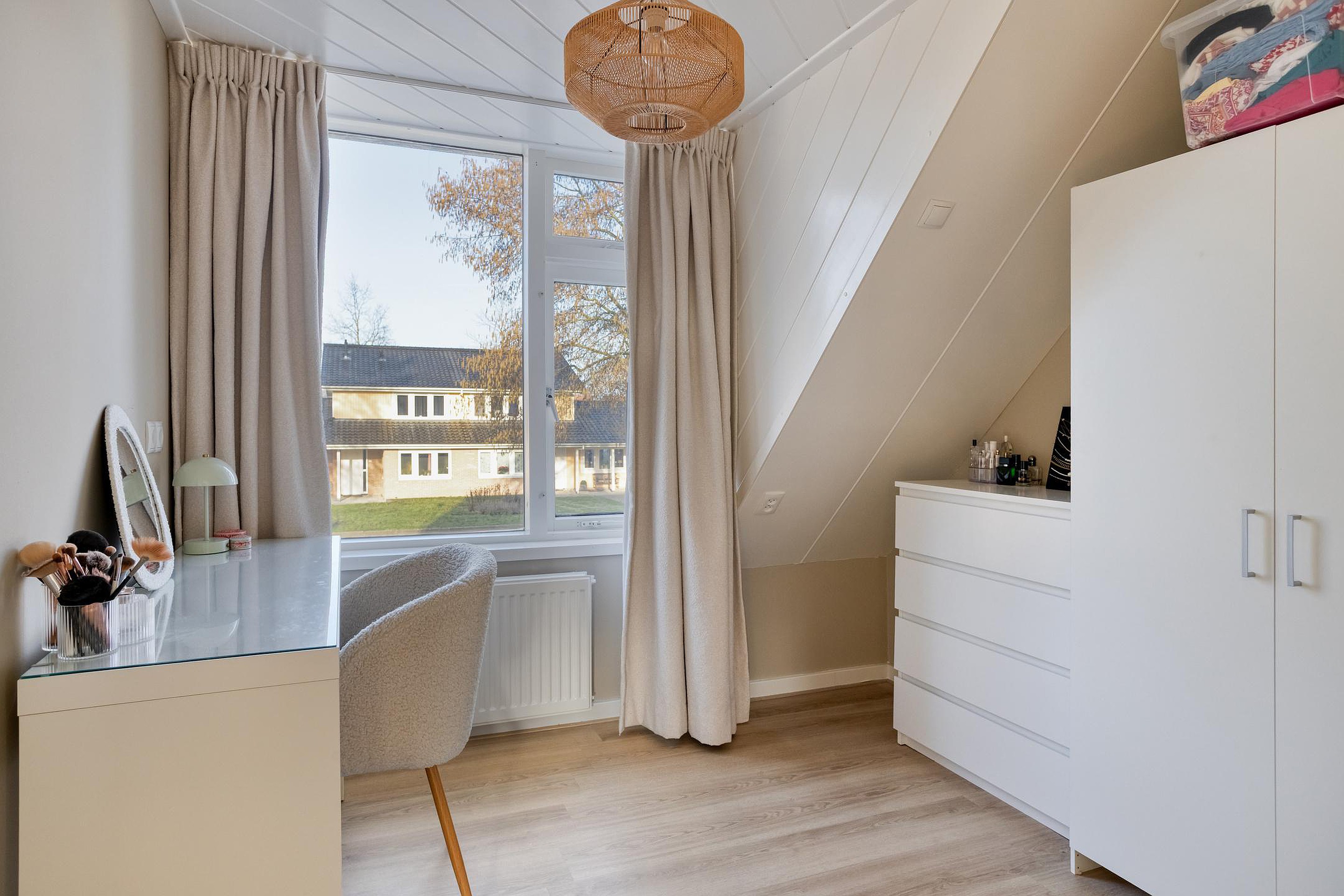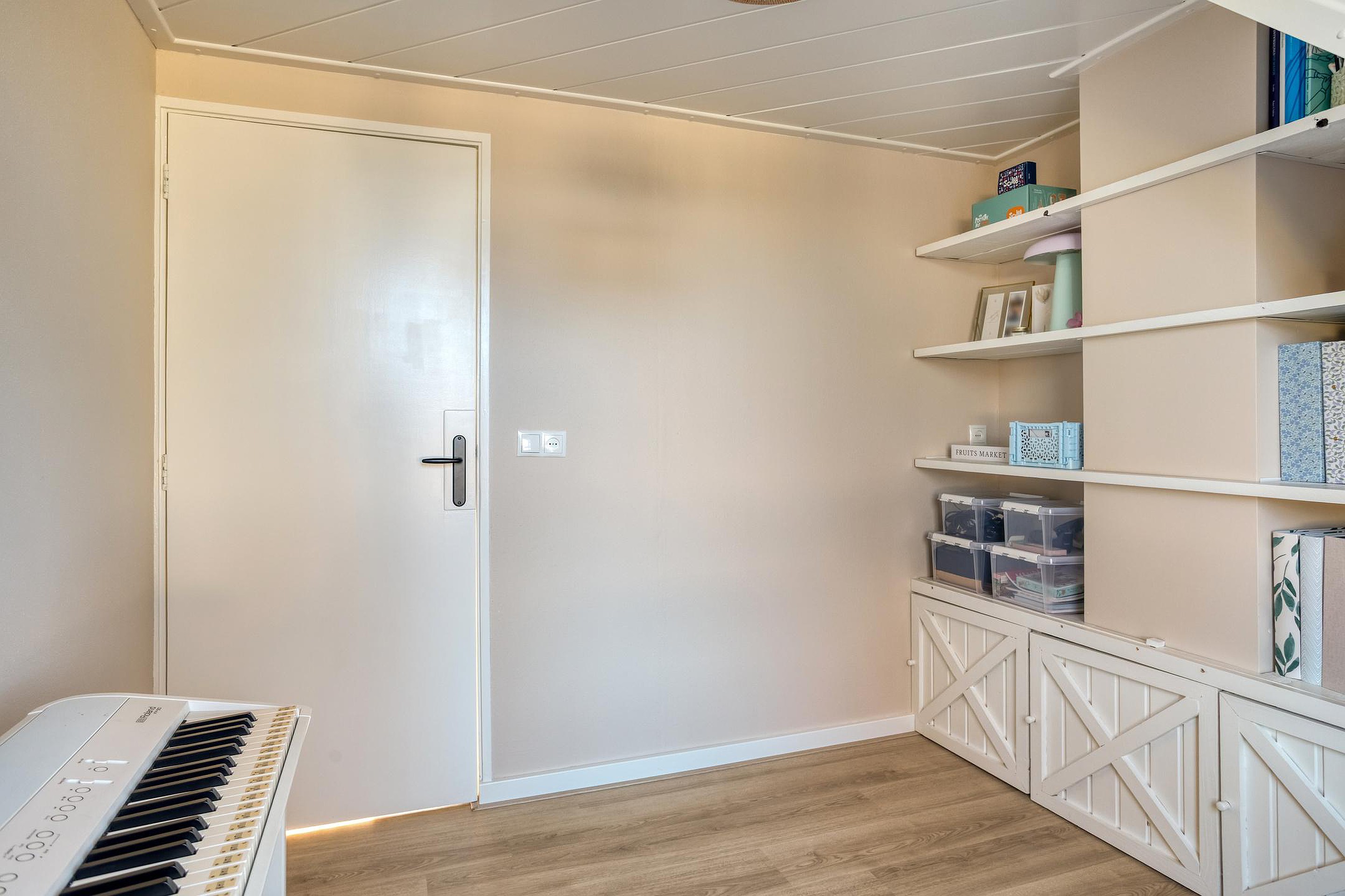 Via een vaste trap is de tweede verdieping bereikbaar. Hier bevindt zich de vierde slaapkamer, die zich uitstekend leent als slaap-, werk- of hobbykamer. Dankzij de slimme indeling is ook hier voldoende bergruimte aanwezig, onder andere achter de knieschotten.