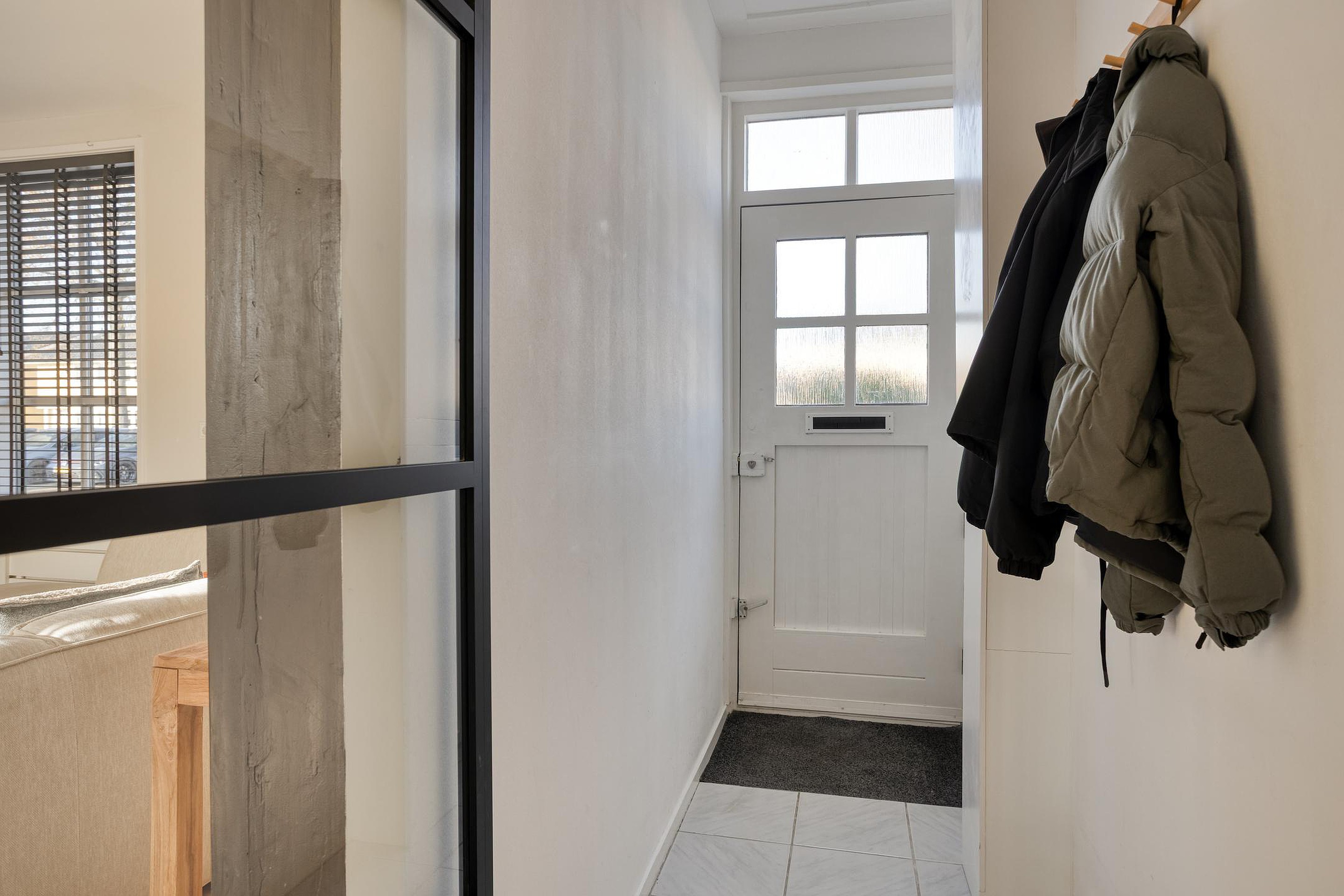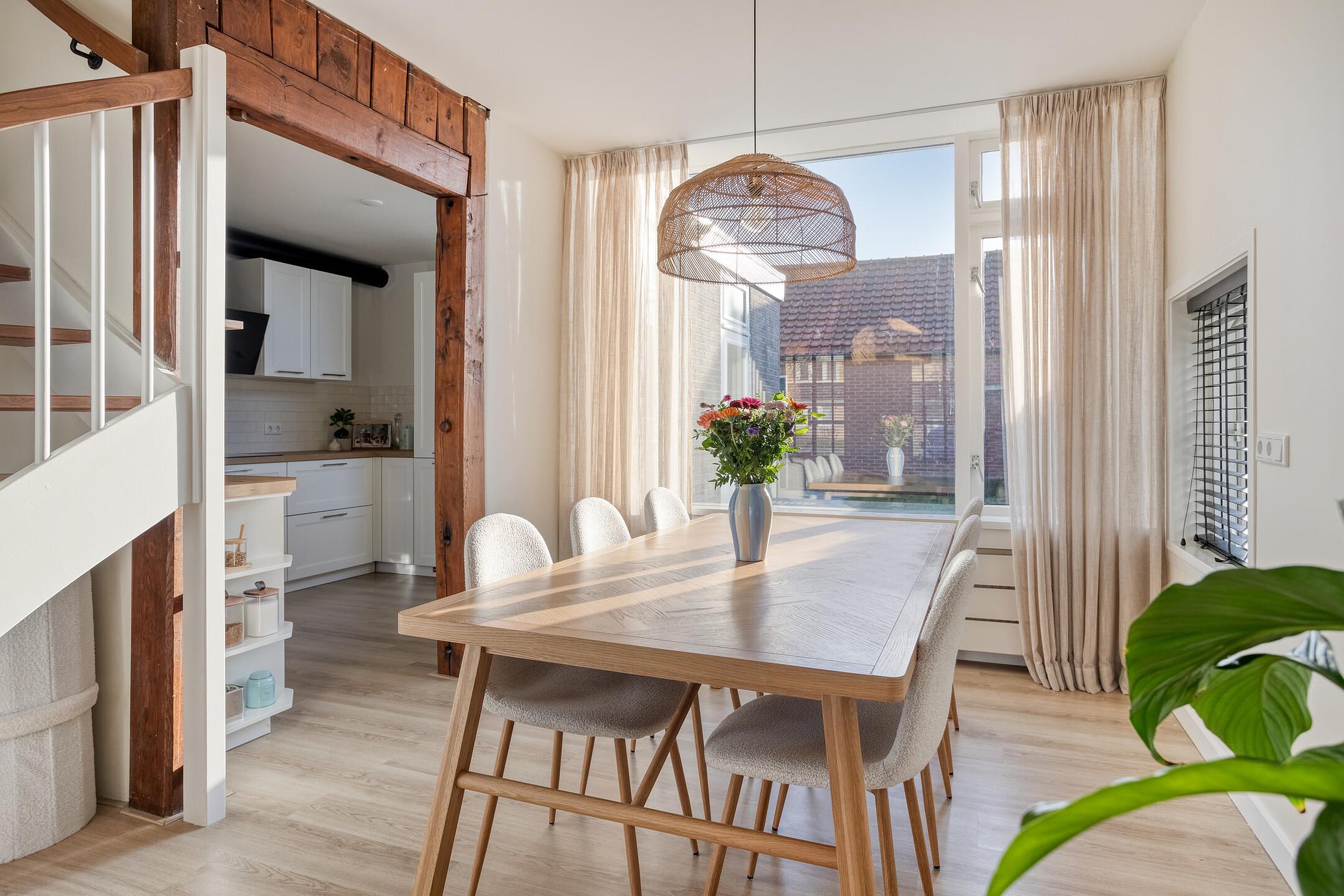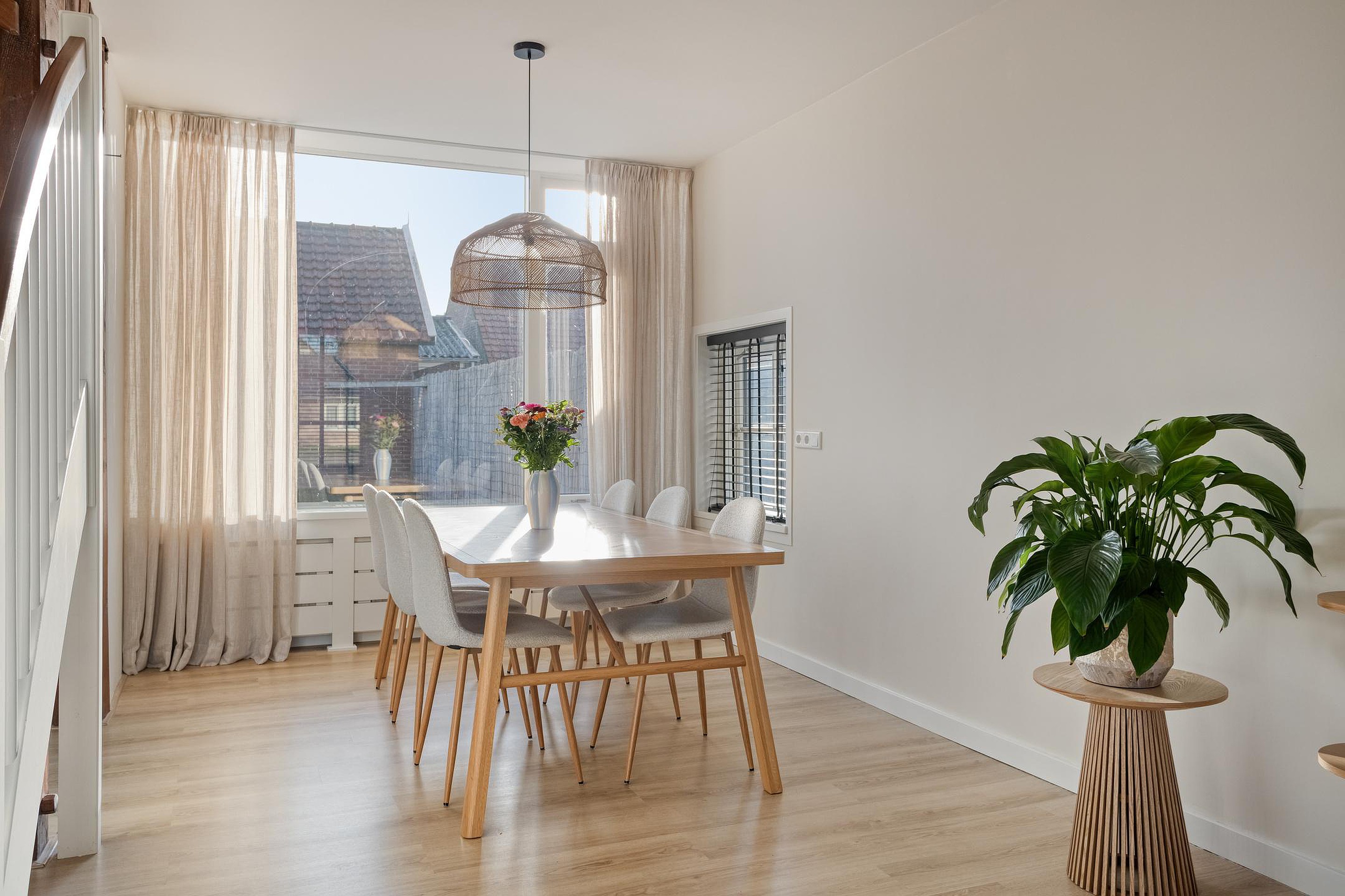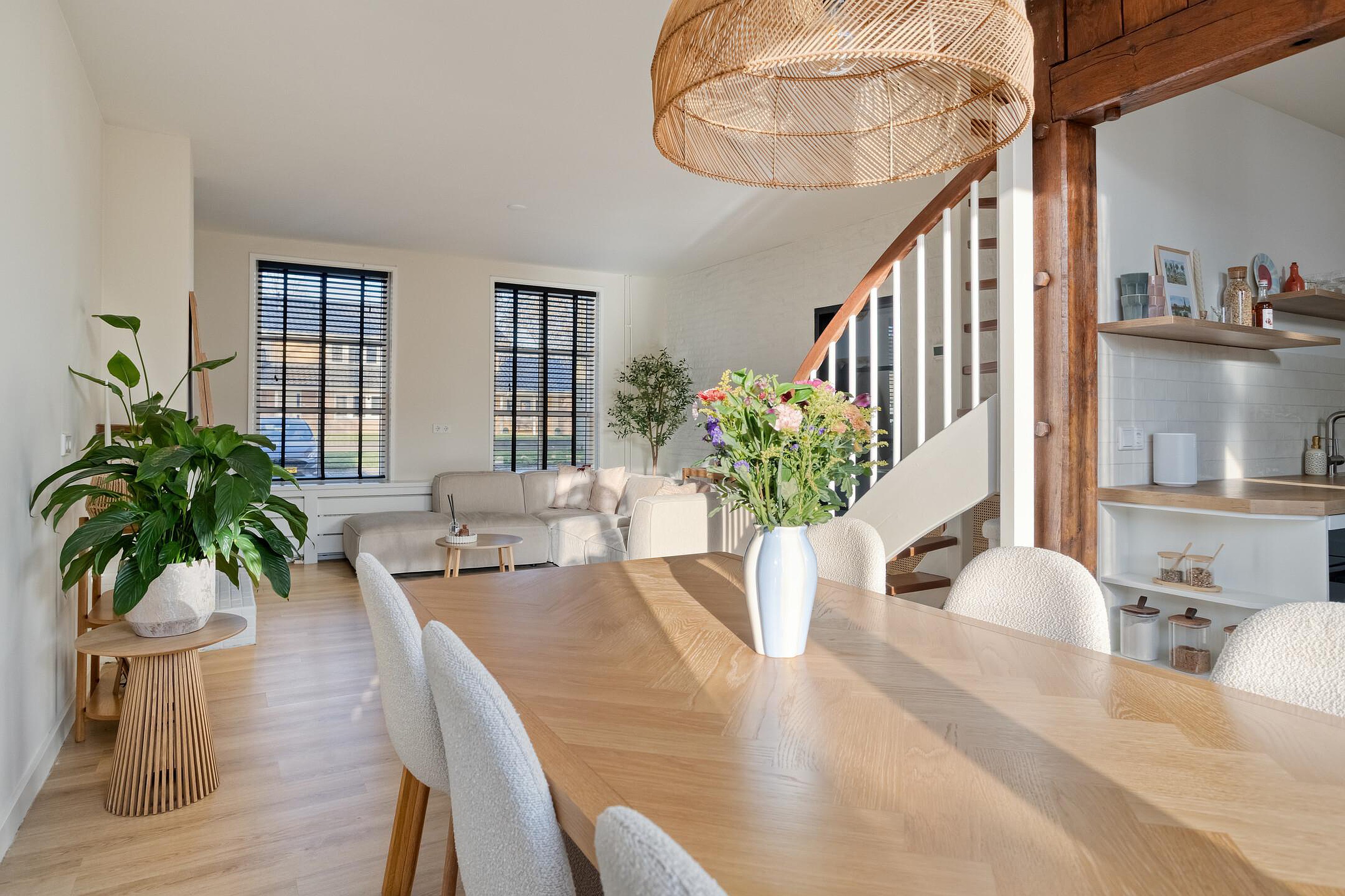 Via de entree kom je binnen in de hal met een modern vernieuwd toilet (2024). Vanuit hier loop je door naar de ruime en lichte woonkamer, waar grote raampartijen zorgen voor een prettige lichtinval. De woonkamer loopt vloeiend over in de eethoek, waardoor er volop ruimte is voor zowel een royale zithoek als een grote eettafel. Hier kun je met de trap naar de eerste verdieping.