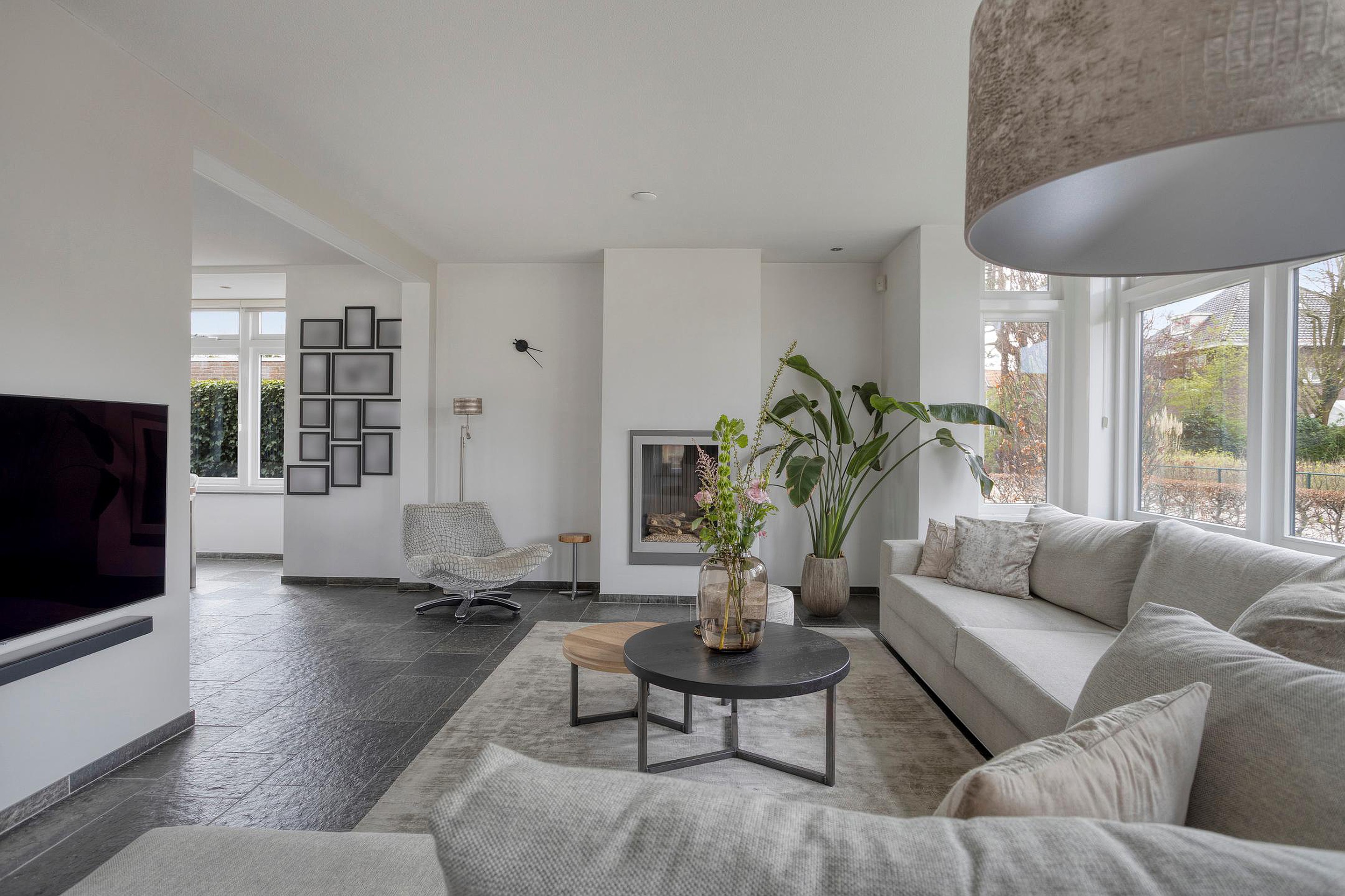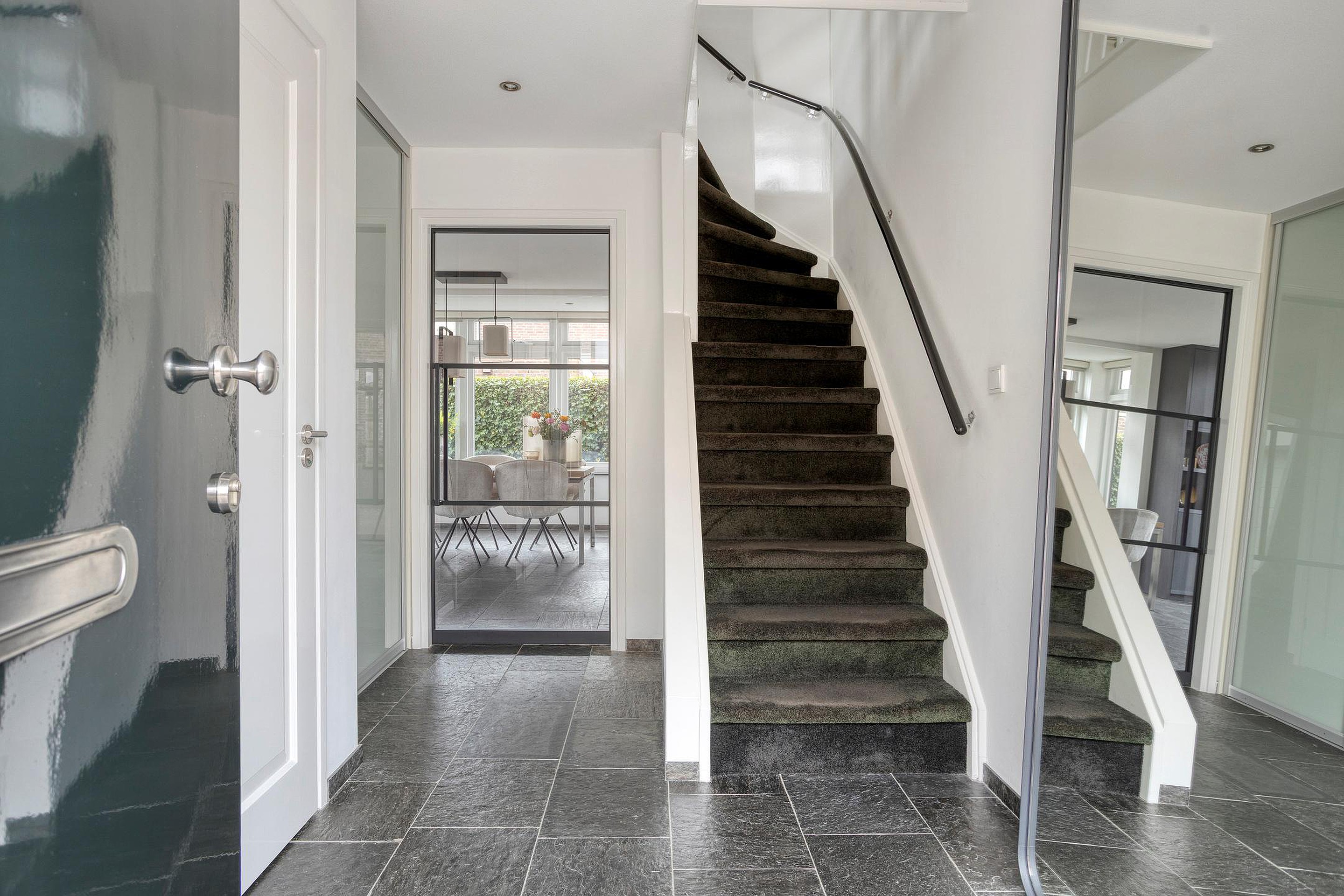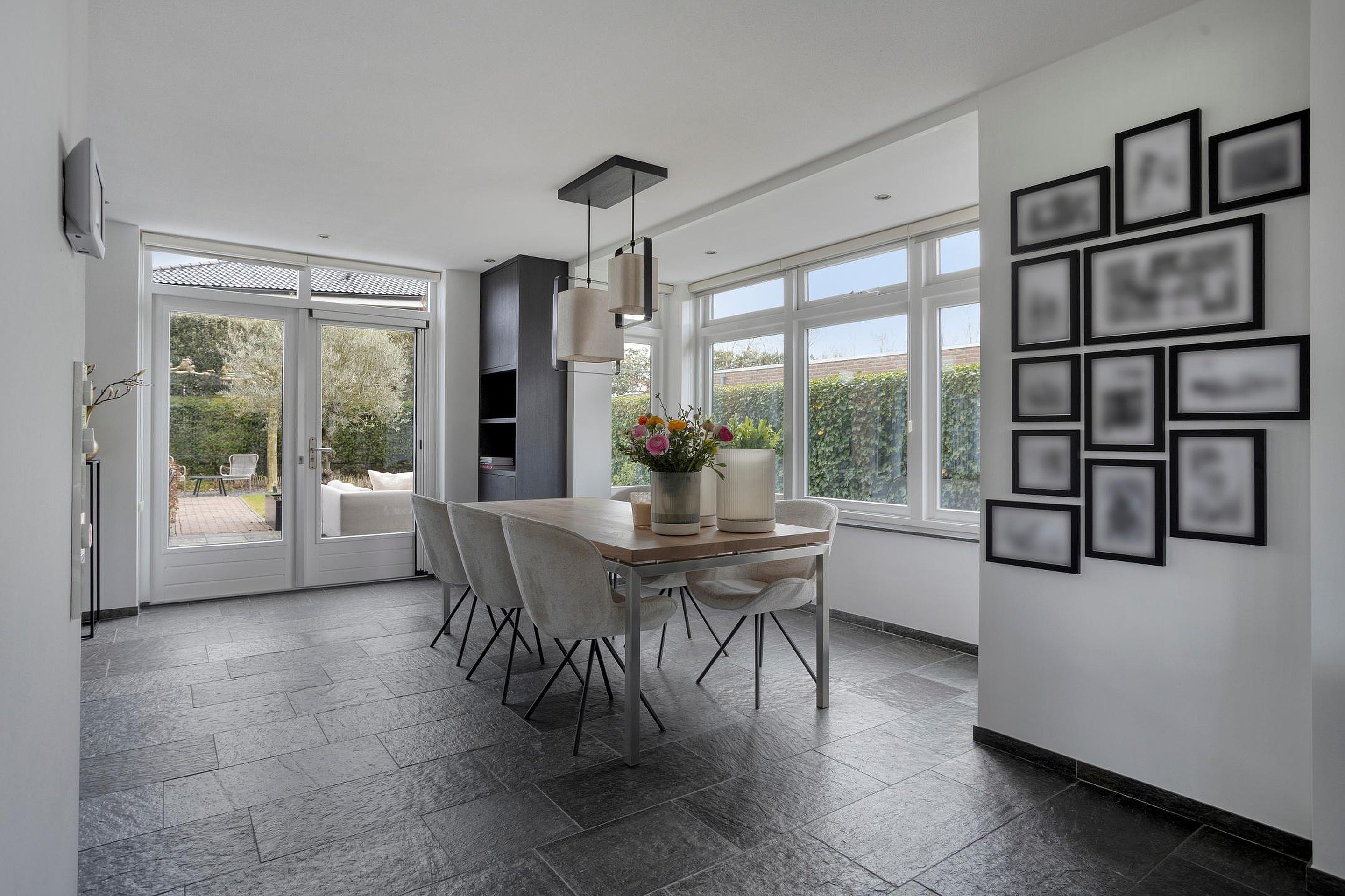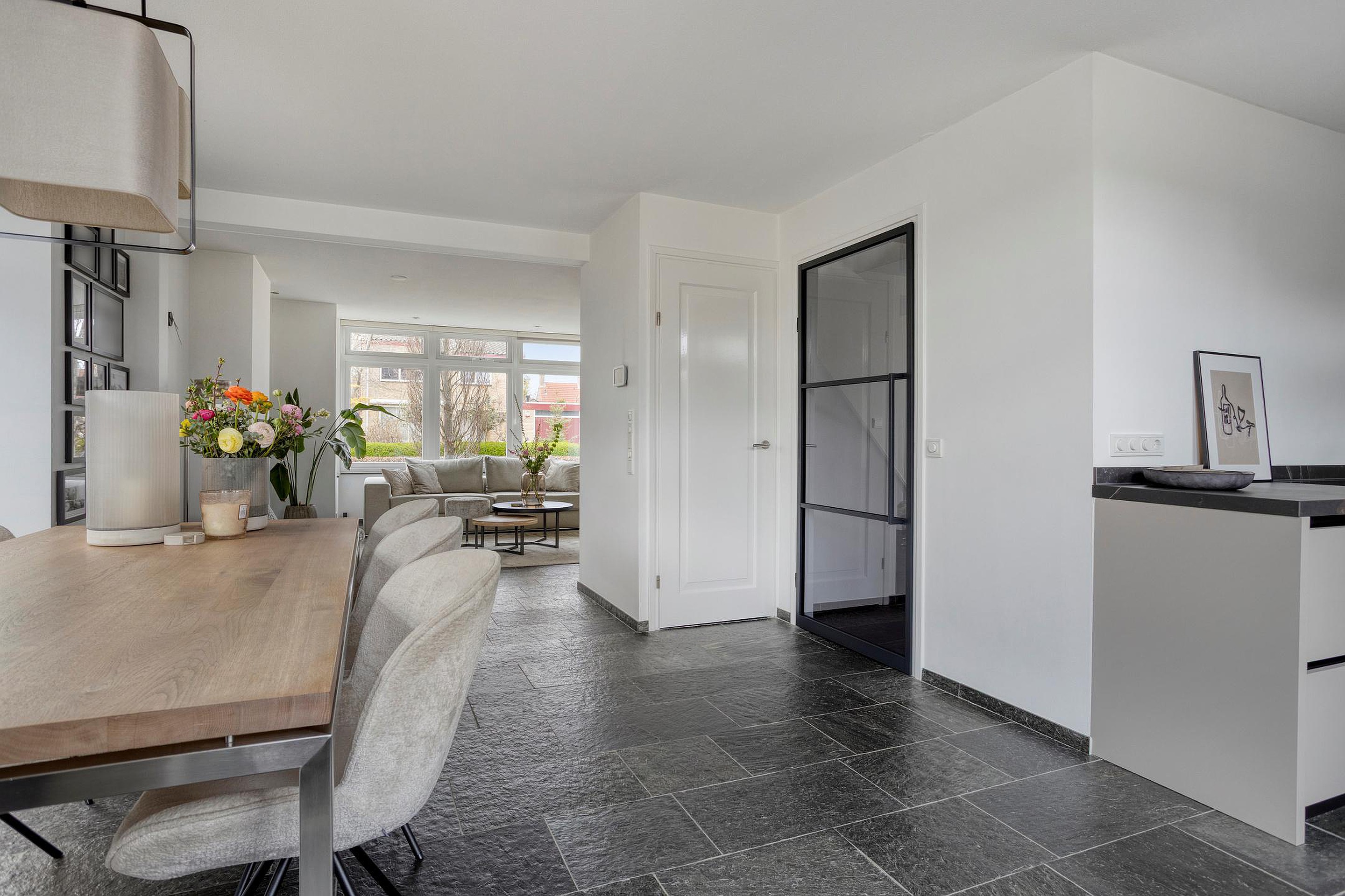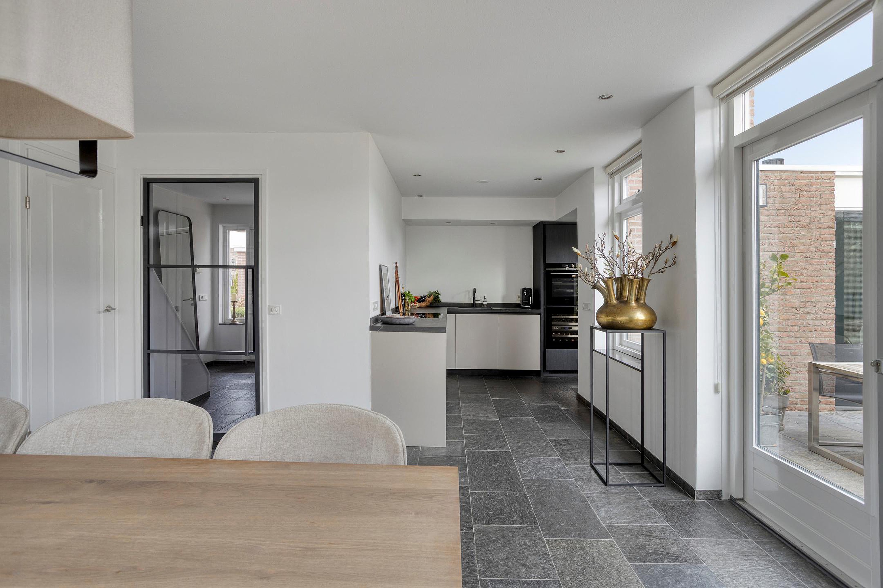 De gehele begane grond is afgewerkt met Noorse leisteen met comfortabele vloerverwarming, wat bijdraagt aan een aangenaam woonklimaat en een gevoel van luxe in het dagelijks gebruik.