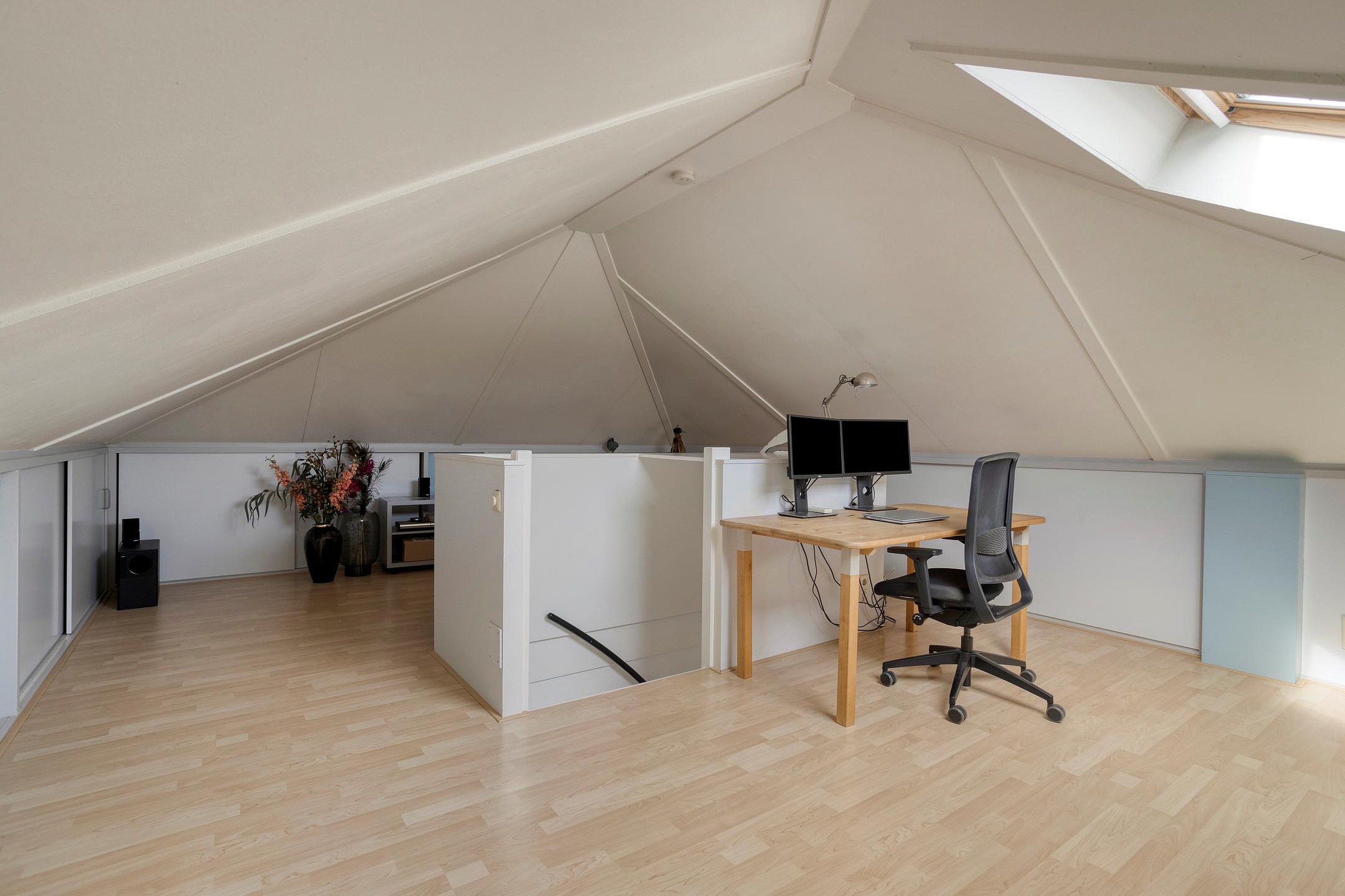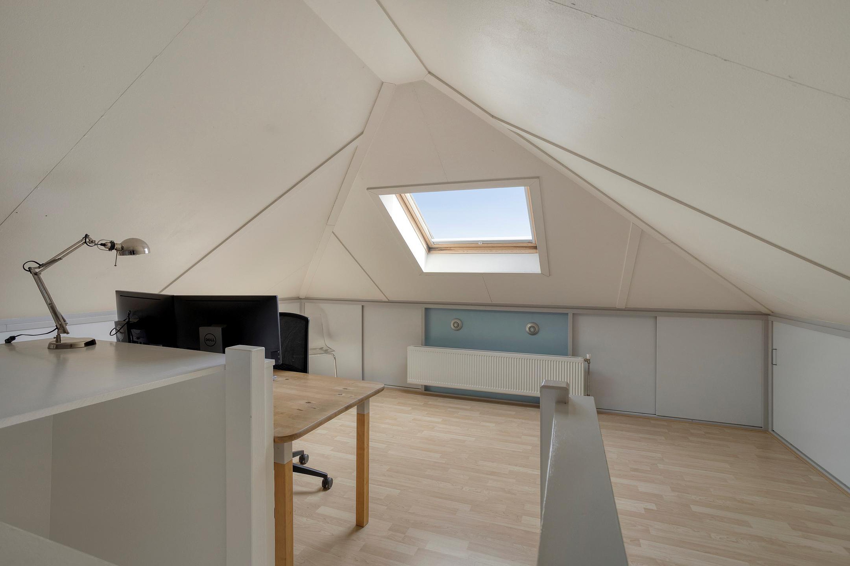 Tweede verdieping De tweede verdieping biedt een extra slaapkamer en volop bergruimte. Deze verdieping leent zich uitstekend als logeerkamer, thuiswerkplek of hobbyruimte en maakt het geheel flexibel in gebruik.