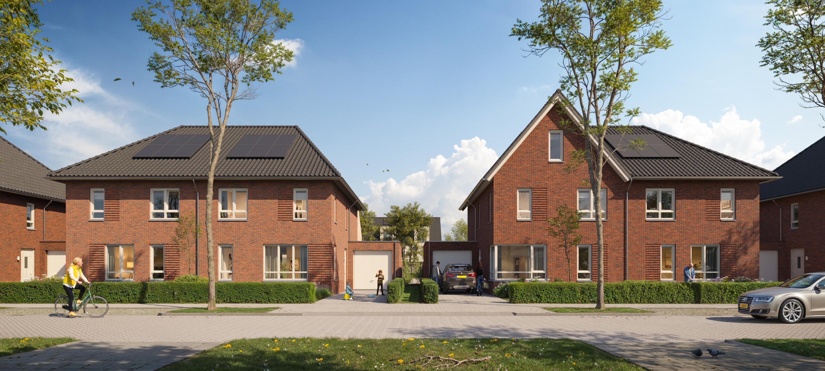 De woningen worden hoogwaardig afgewerkt met duurzame materialen. Standaard krijgt u een luxe keuken, sanitair en tegelwerk. U bepaalt zelf de vloerafwerking, tuininrichting en overige persoonlijke inrichting. De twee-onder-één-kapwoningen beschikken over een eigen oprit; andere woningen maken gebruik van de in het plan verwerkte parkeerplaatsen.