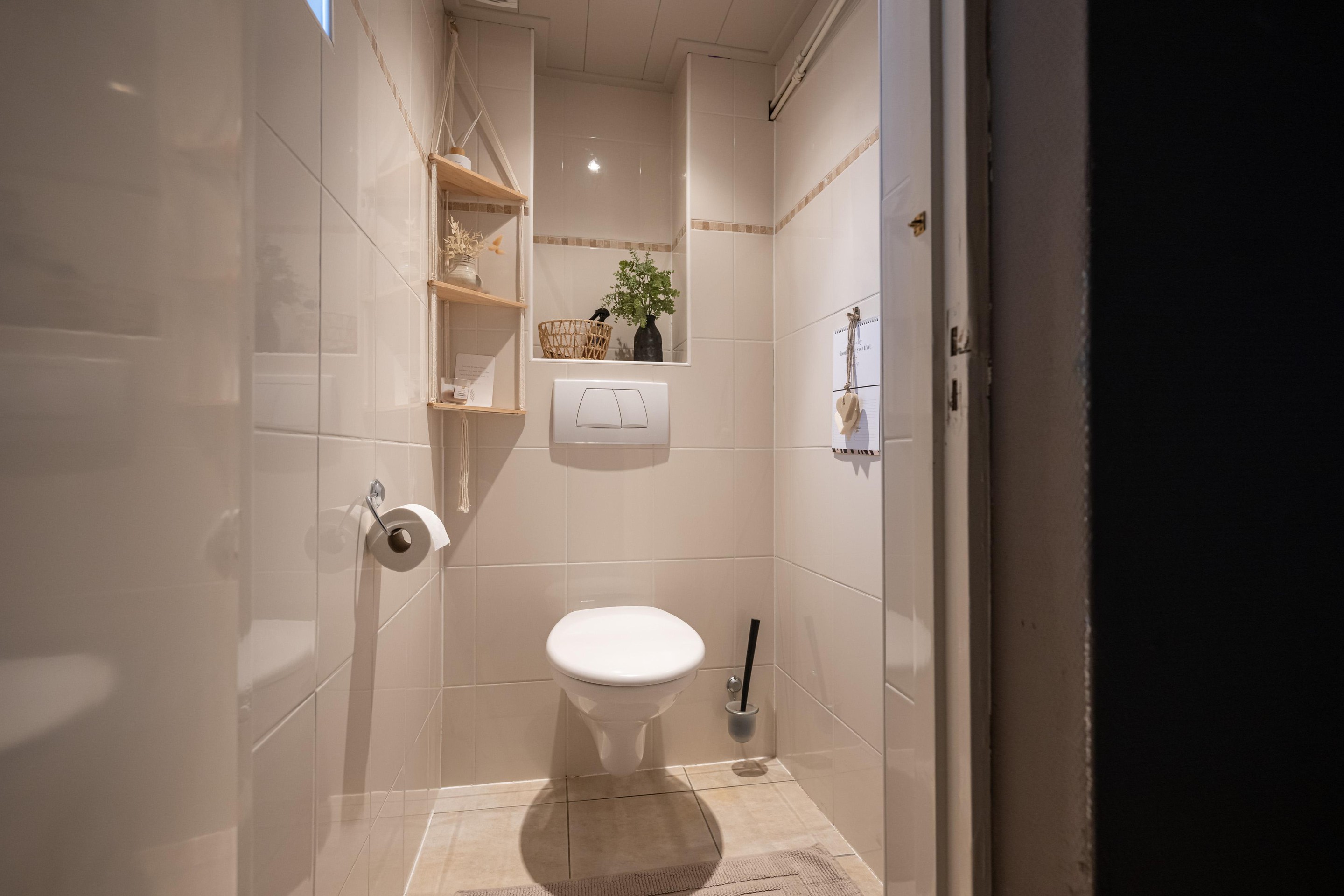 De badkamer is modern en comfortabel ingericht. U vindt hier een ruime douche, een separaat hoekbad voor de momenten waarop u echt wilt ontspannen, een tweede toilet, een wastafel met meubel, een handdoekenradiator en een praktische spiegelkast. Alles is aanwezig om uw dag fris te beginnen of juist ontspannen af te sluiten.