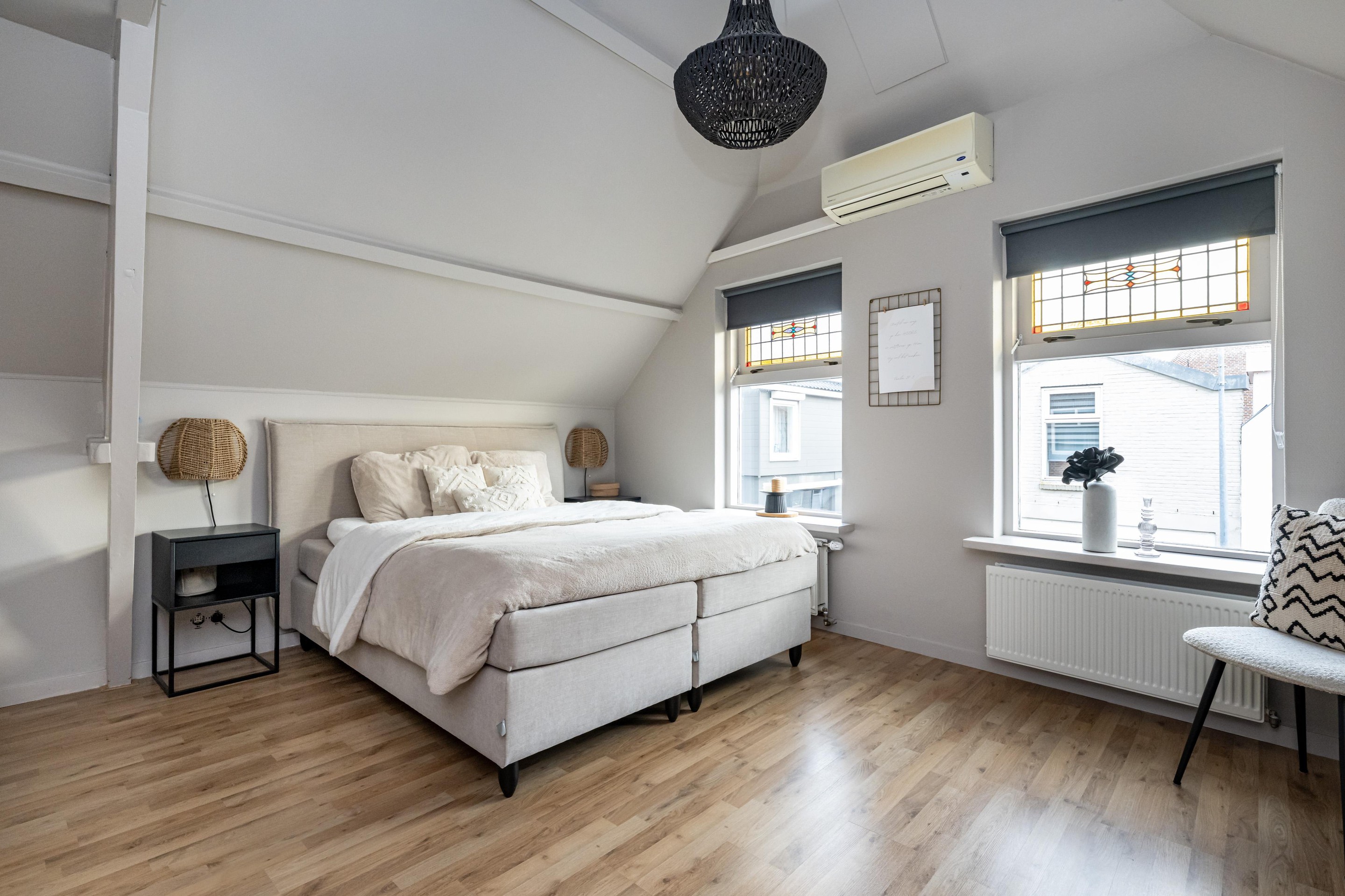 Op de eerste verdieping bevinden zich twee slaapkamers, beide netjes afgewerkt en met een prettige lichtinval. De hoofdslaapkamer is ruim opgezet en uitgerust met een airconditioning, waardoor u ook in de warme zomermaanden verzekerd bent van een aangenaam binnenklimaat. De tweede slaapkamer is ideaal als logeerkamer, werkruimte of kinderkamer – u kunt er alle kanten mee op.