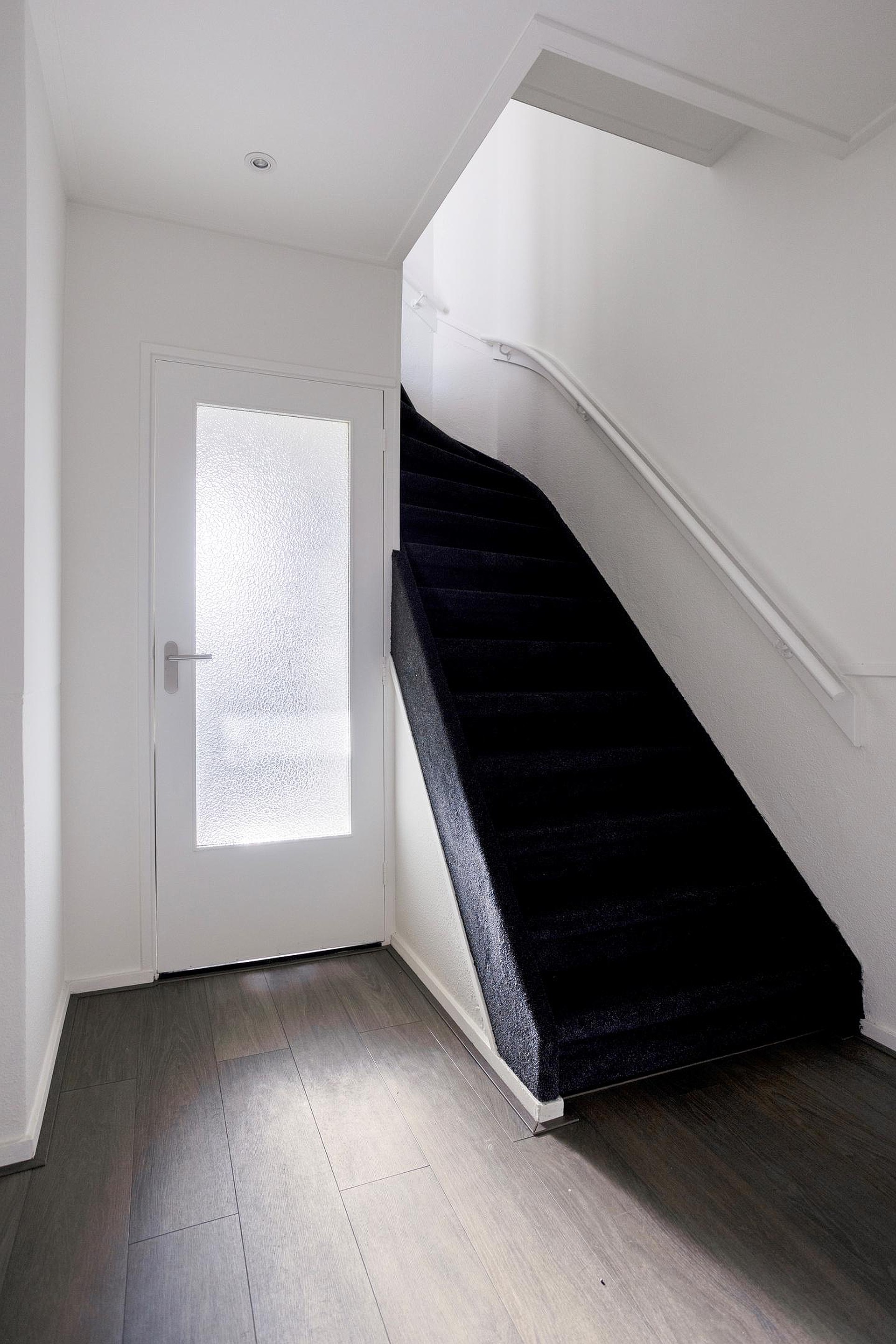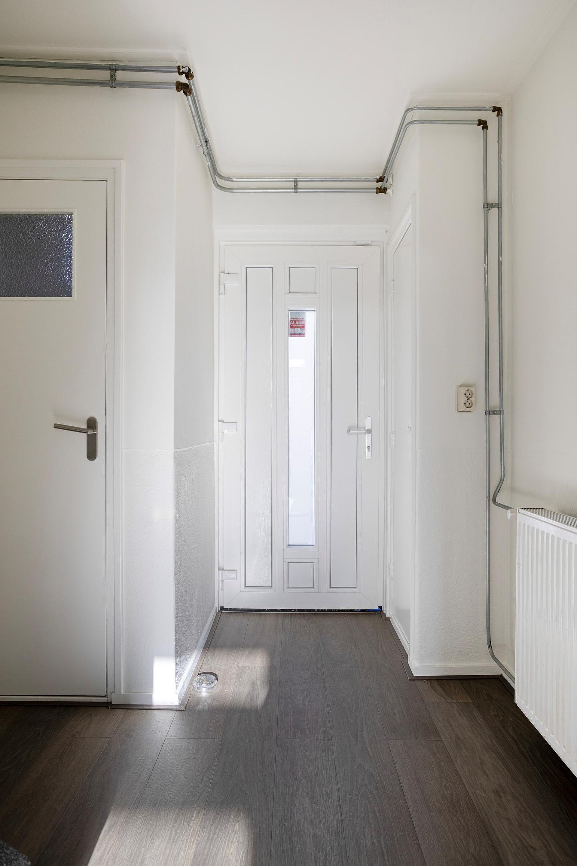 Je komt binnen in de hal met toilet en trapopgang. Vanuit hier loop je door naar de woonkamer voorzien van een airco, die dankzij de grote raampartijen heerlijk licht is. De ruimte is strak afgewerkt en biedt volop mogelijkheden voor een gezellige zithoek en eethoek.