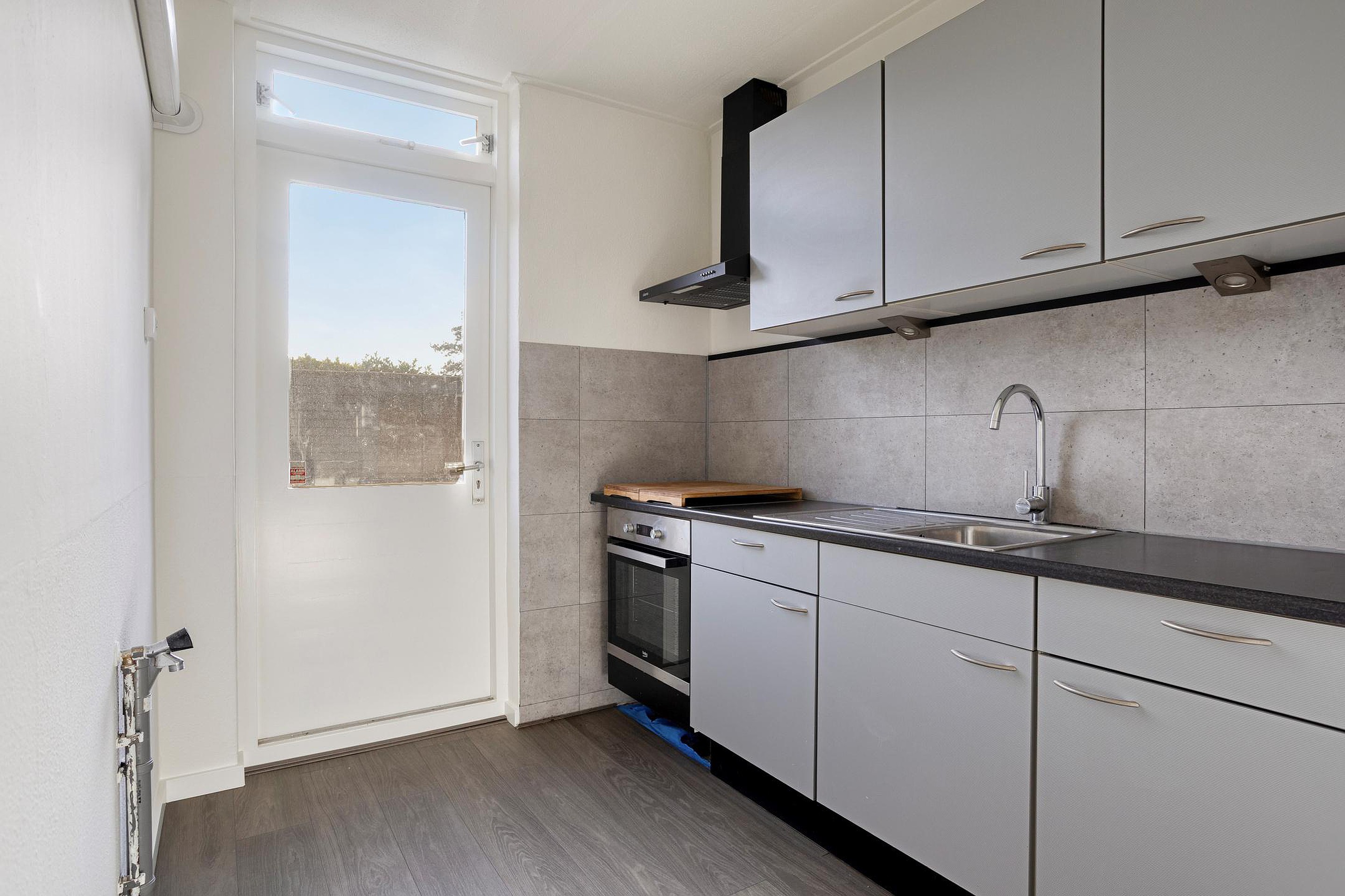 De keuken bevindt zich aan de achterzijde en is praktisch ingericht. Vanuit de keuken heb je direct toegang tot de achtertuin.