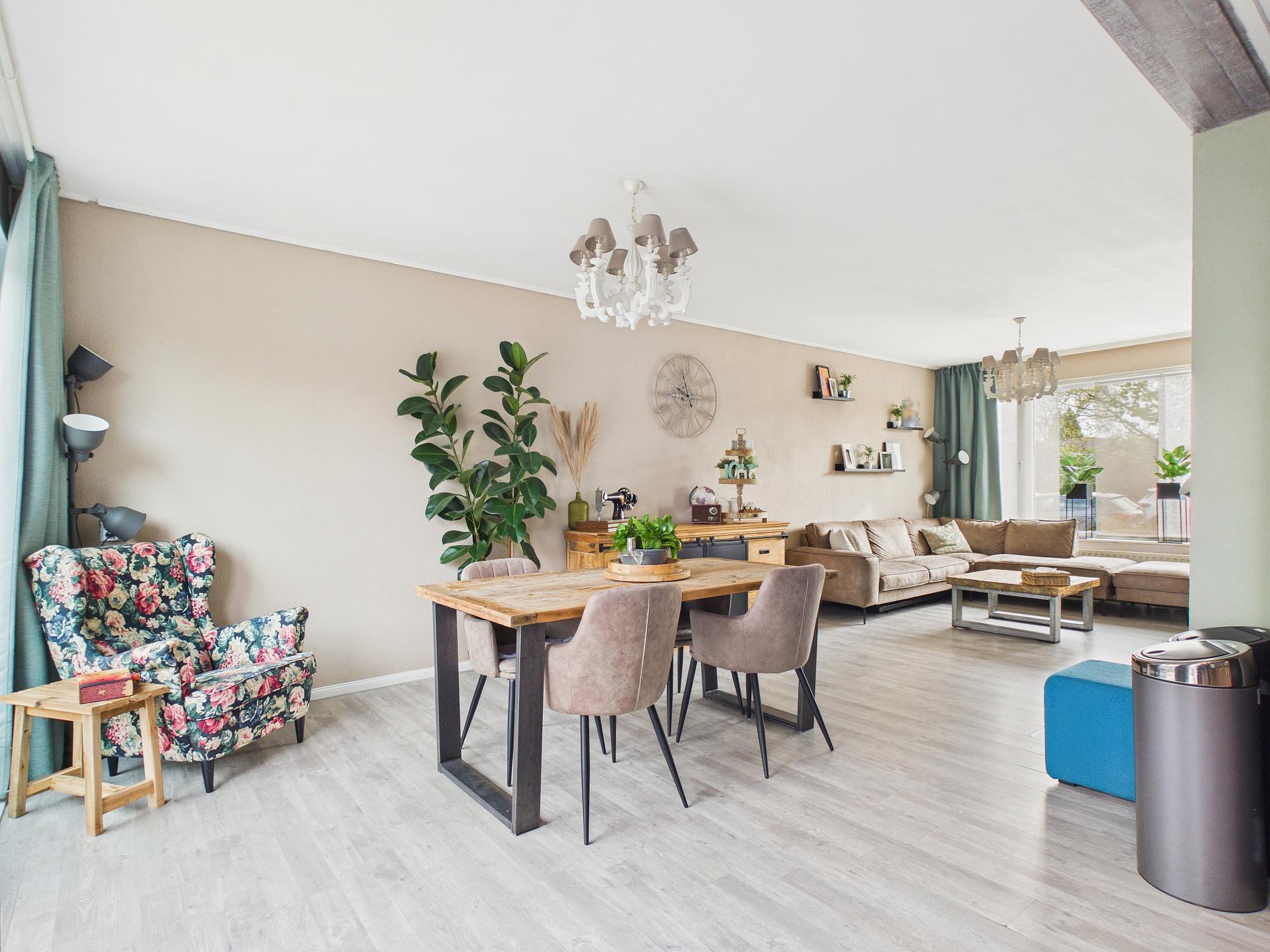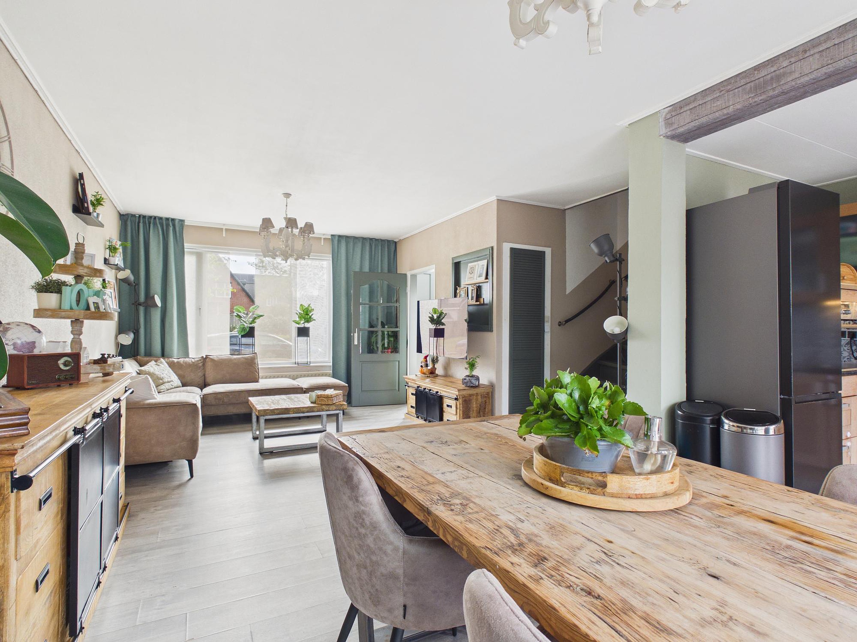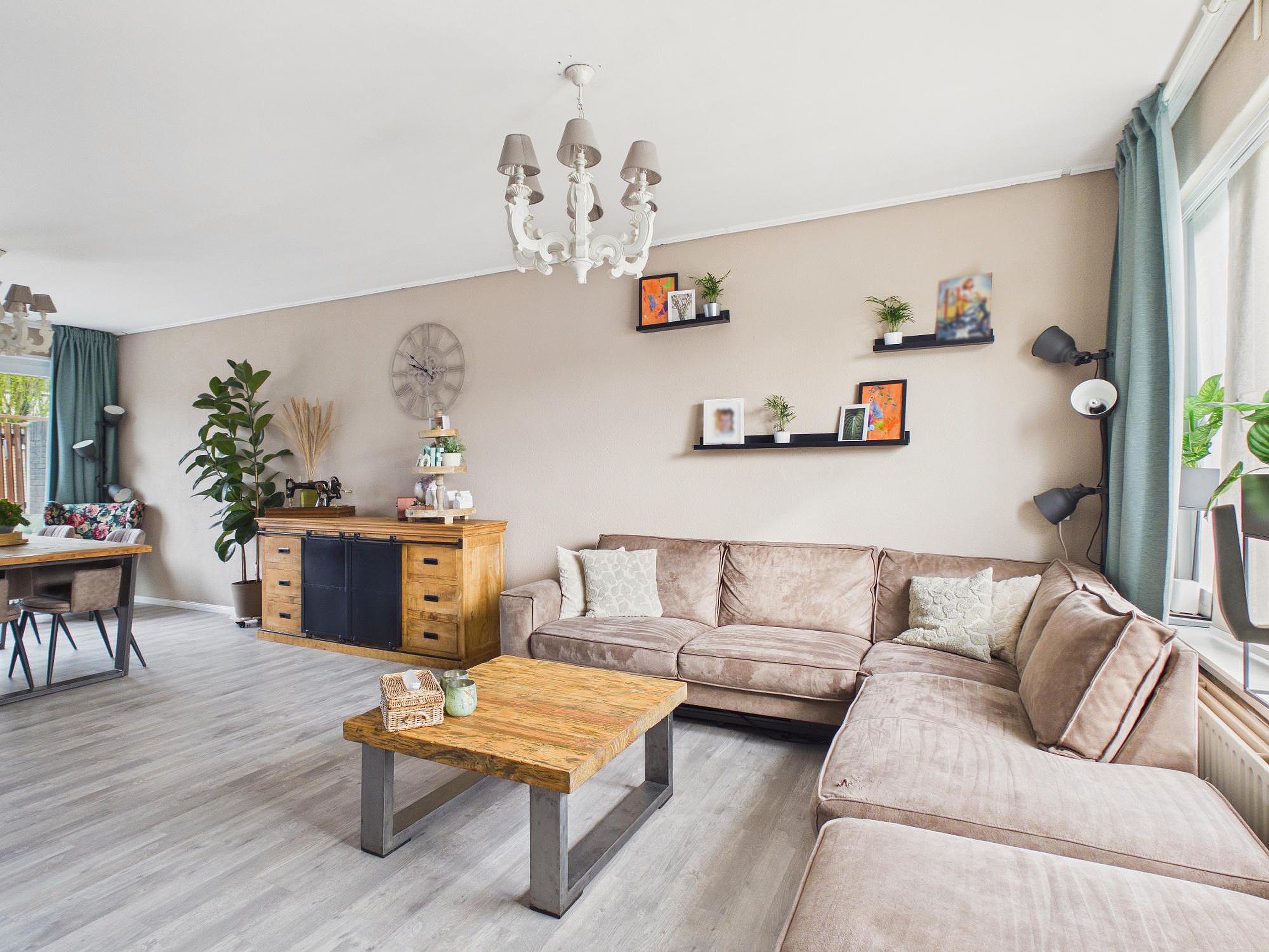 Via de voordeur stap je binnen in een nette hal, voorzien van toilet en meterkast. Vanuit hier kom je in de ruime en lichte woonkamer met open keuken — een fijne, open leefruimte waar je je direct thuis voelt. Via de schuifpui stap je zo de tuin in, perfect voor binnen-buiten genieten. De trap in de woonkamer leidt naar de eerste verdieping.