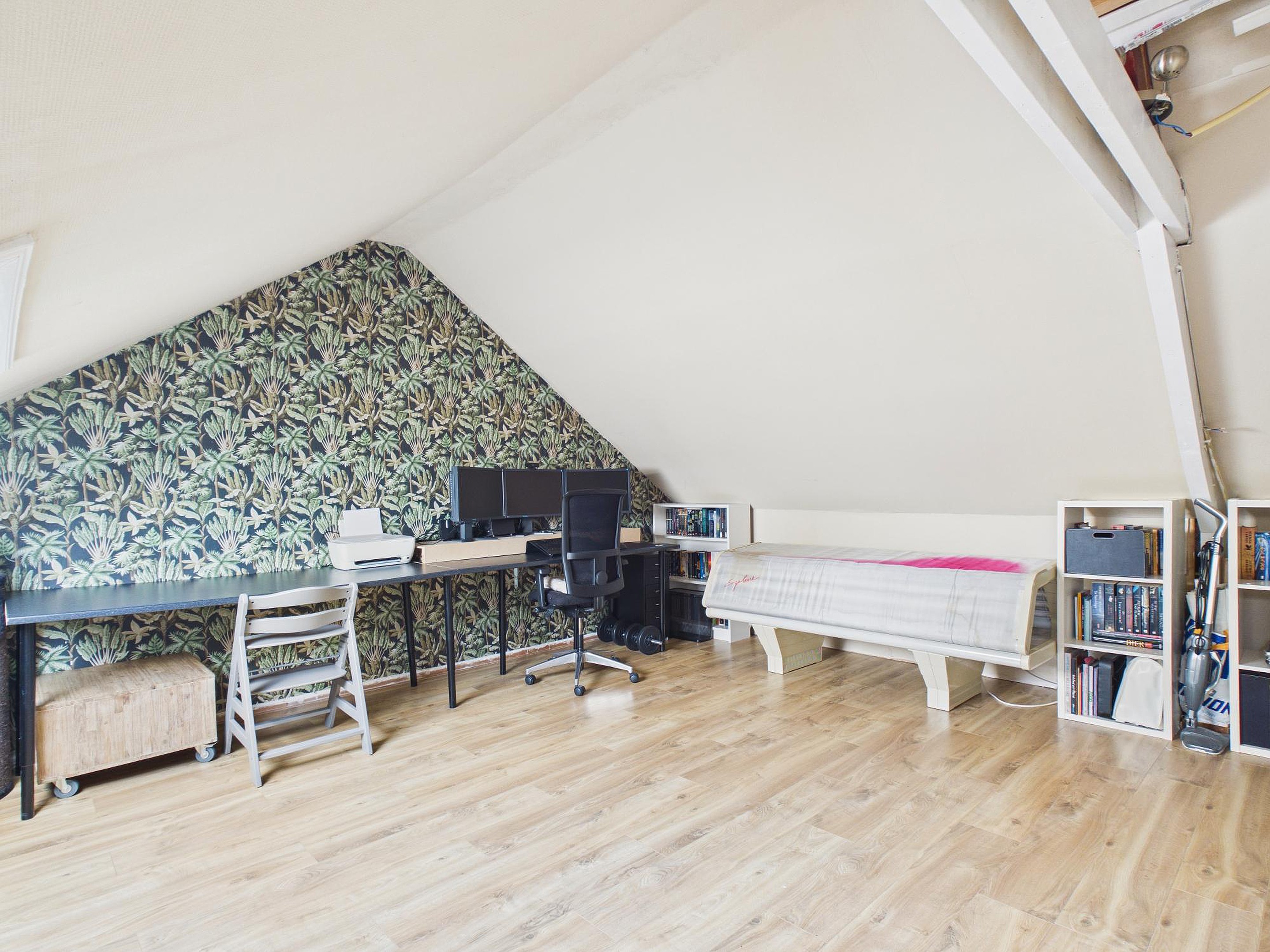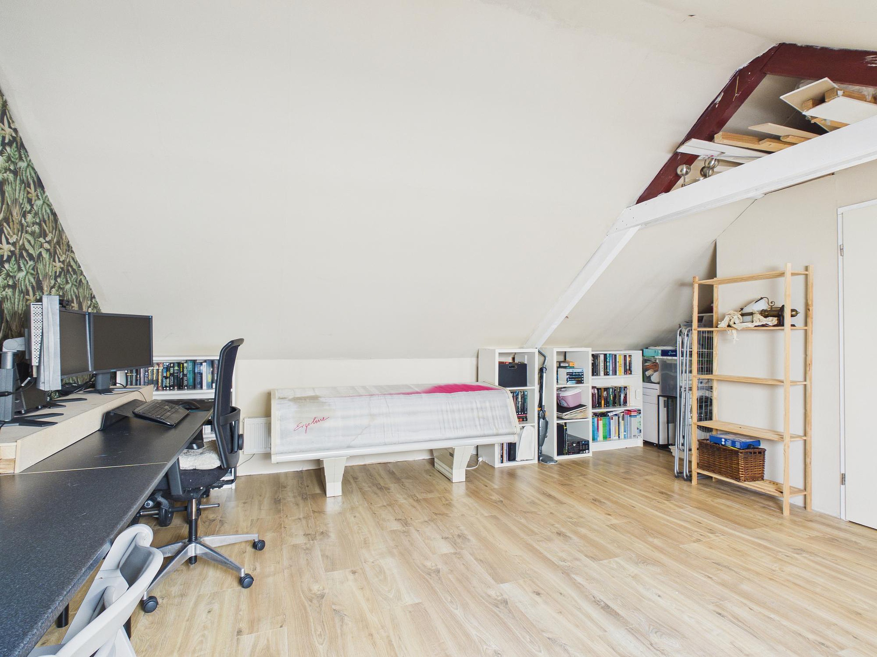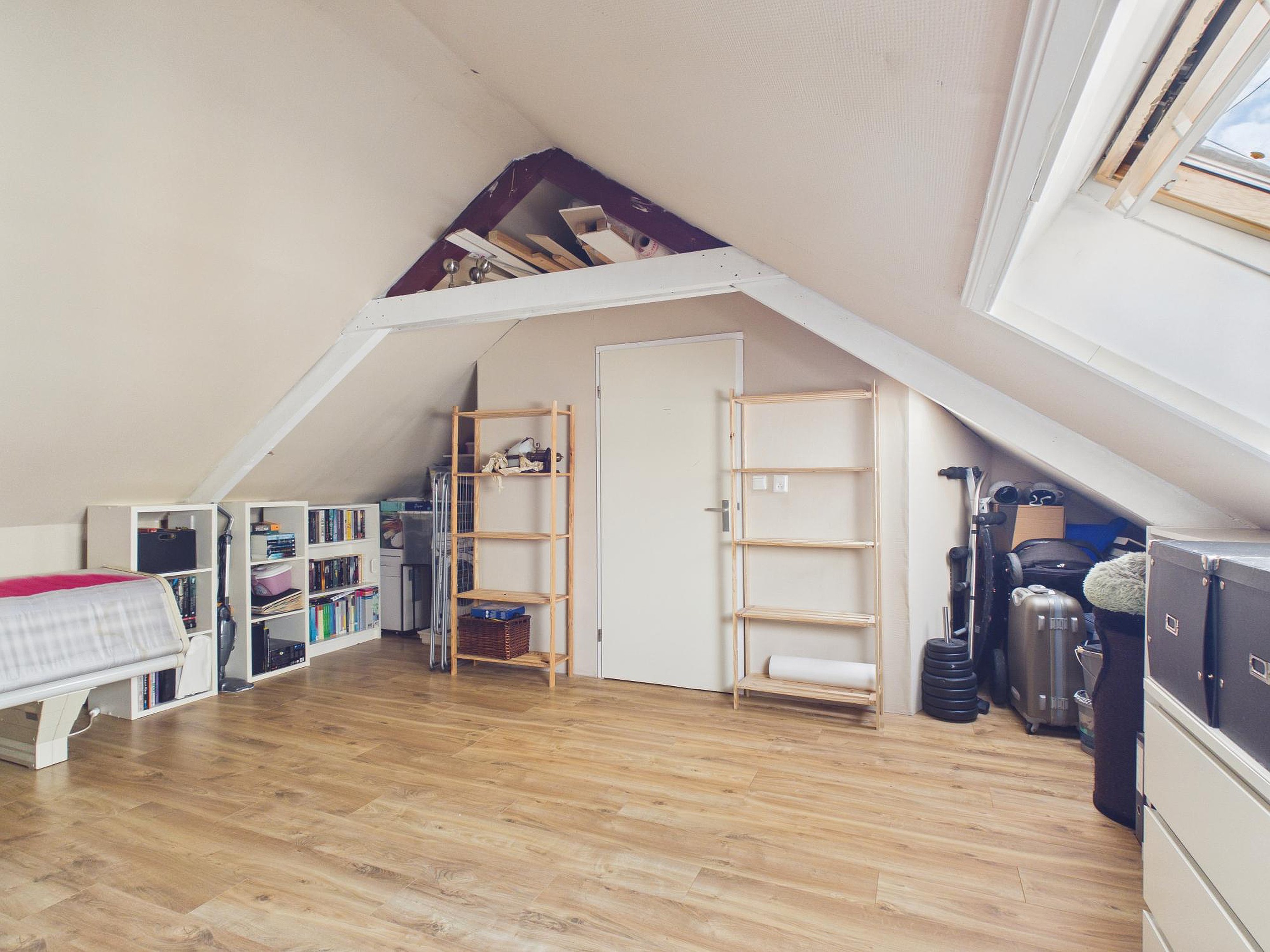 Op de tweede verdieping bevinden zich de cv-ketel en elektrische boiler. Aansluitend kom je in een ruime slaapkamer met twee dakramen, die zorgen voor een prettige lichtinval. Deze veelzijdige ruimte leent zich niet alleen uitstekend als slaapkamer, maar biedt ook volop mogelijkheden als thuiswerkplek, hobbyruimte of zelfs een eigen fitnessruimte.
