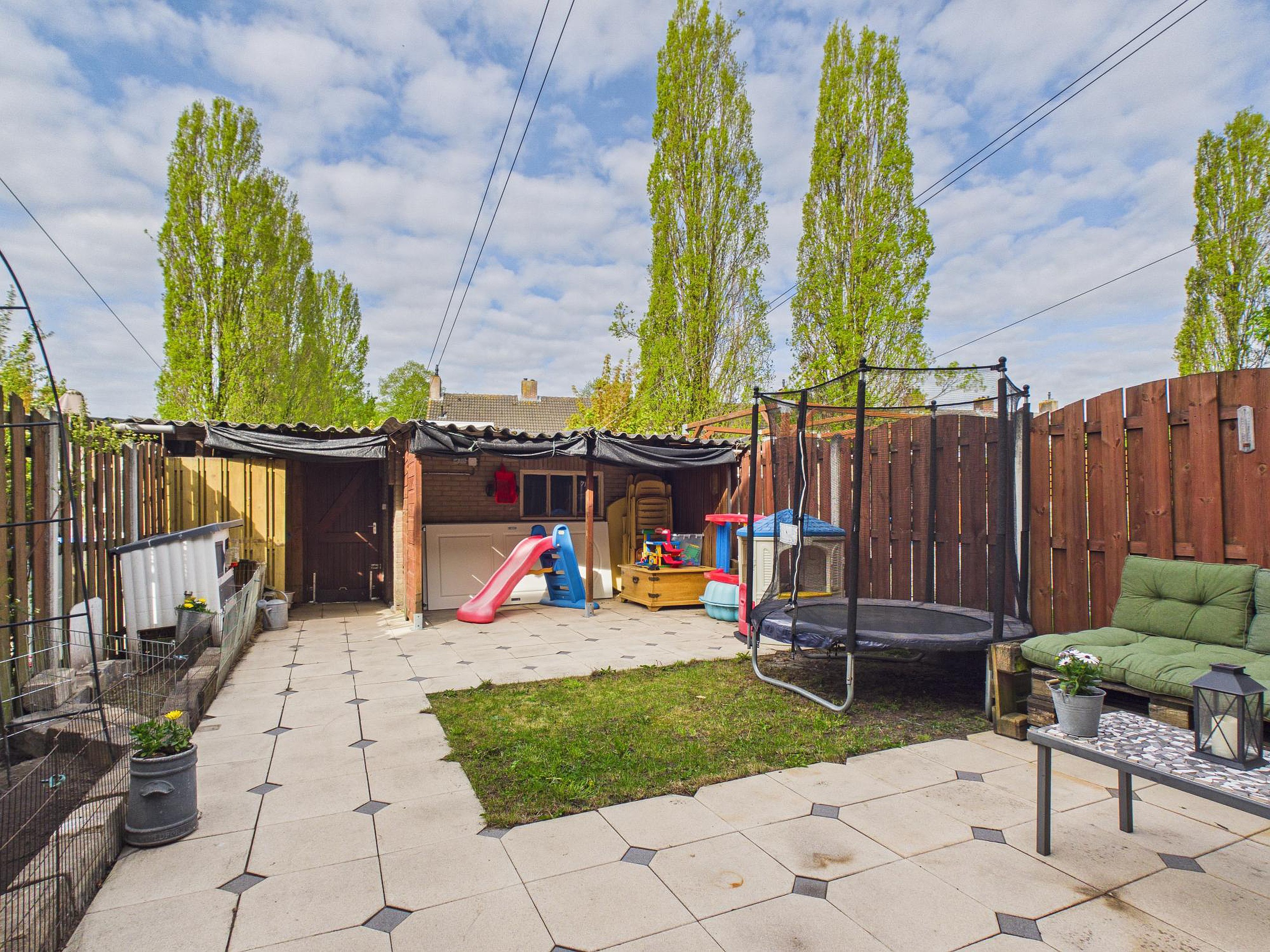 De achtertuin, gelegen op het zonnige (zuid)westen, biedt volop mogelijkheden om naar eigen wens verder in te richten. Dankzij de gunstige ligging geniet je hier van veel zonuren. Achterin de tuin bevindt zich een praktische berging en een handige achterom.