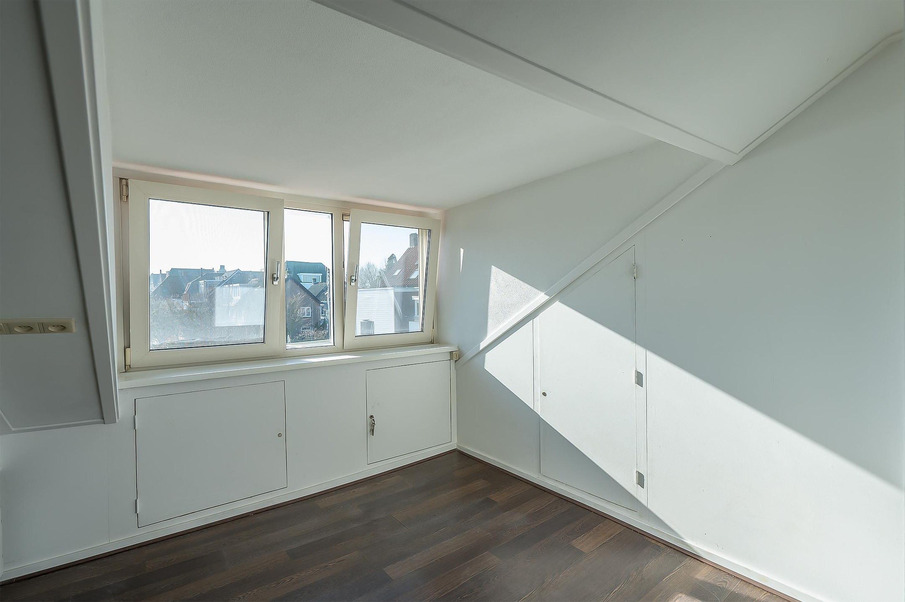 De zolder is bereikbaar via een smalle vaste trap. Op de zolder is de Cv-ketel gesitueerd. De ruimte heeft twee dakkapellen: één aan de voorzijde en één aan de achterzijde. Dit maakt de zolder licht en praktisch in gebruik. De dakkapel aan de voorzijde is voorzien van kunststof kozijnen.